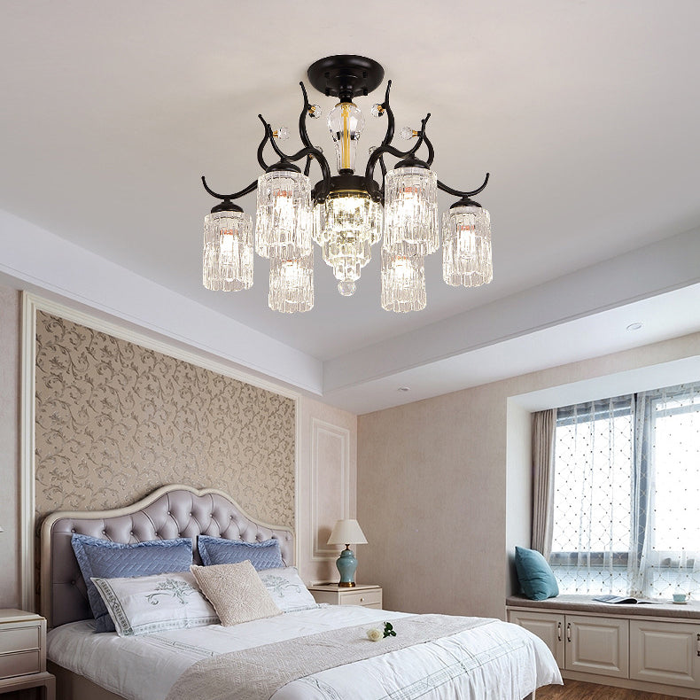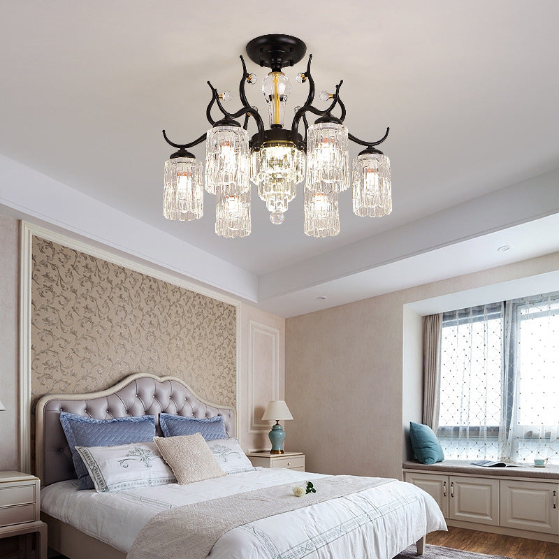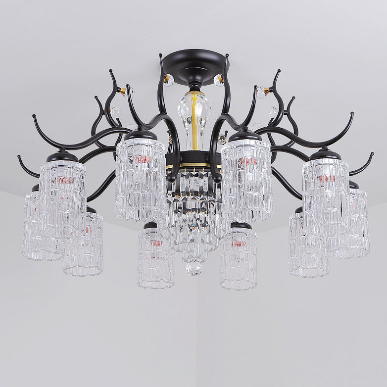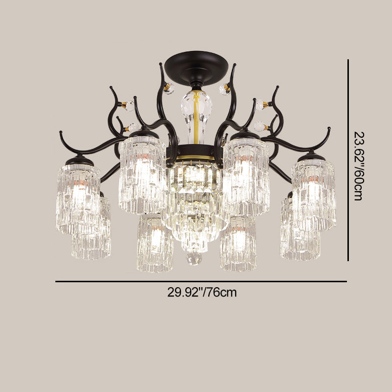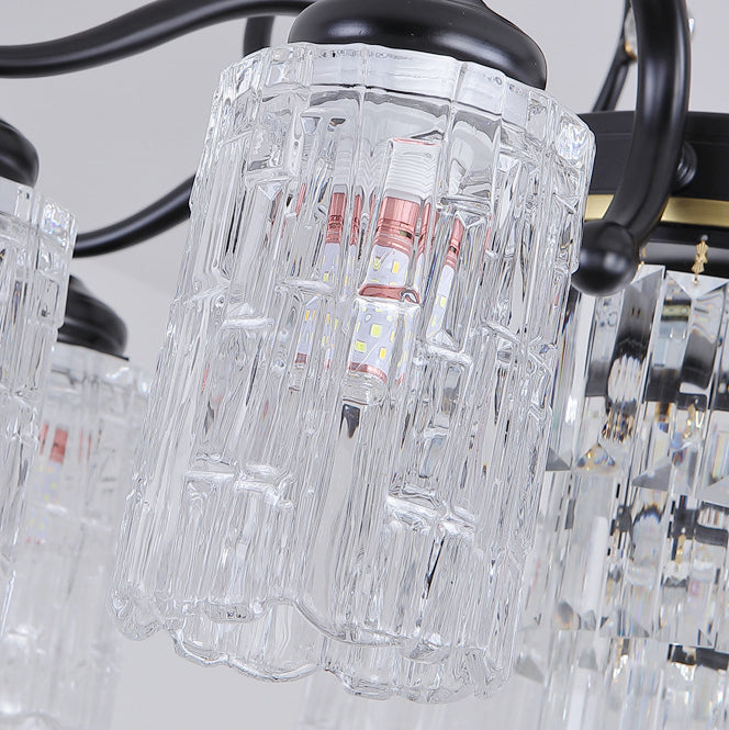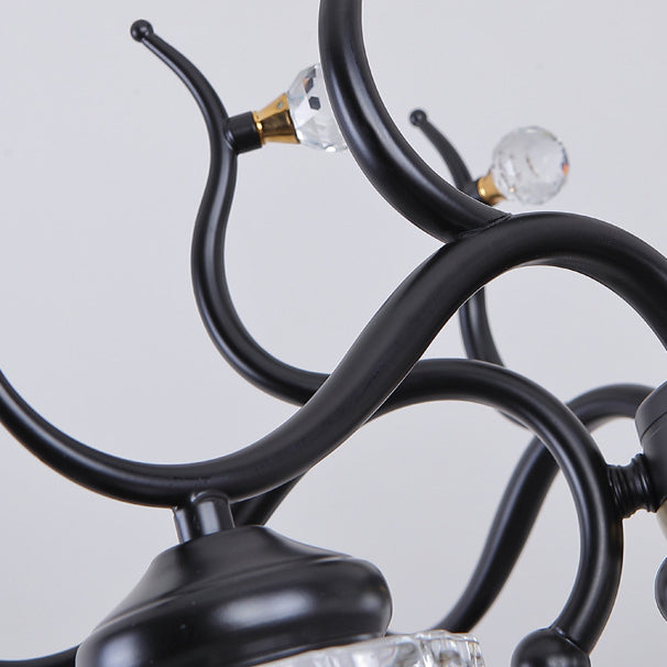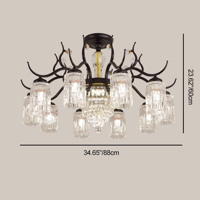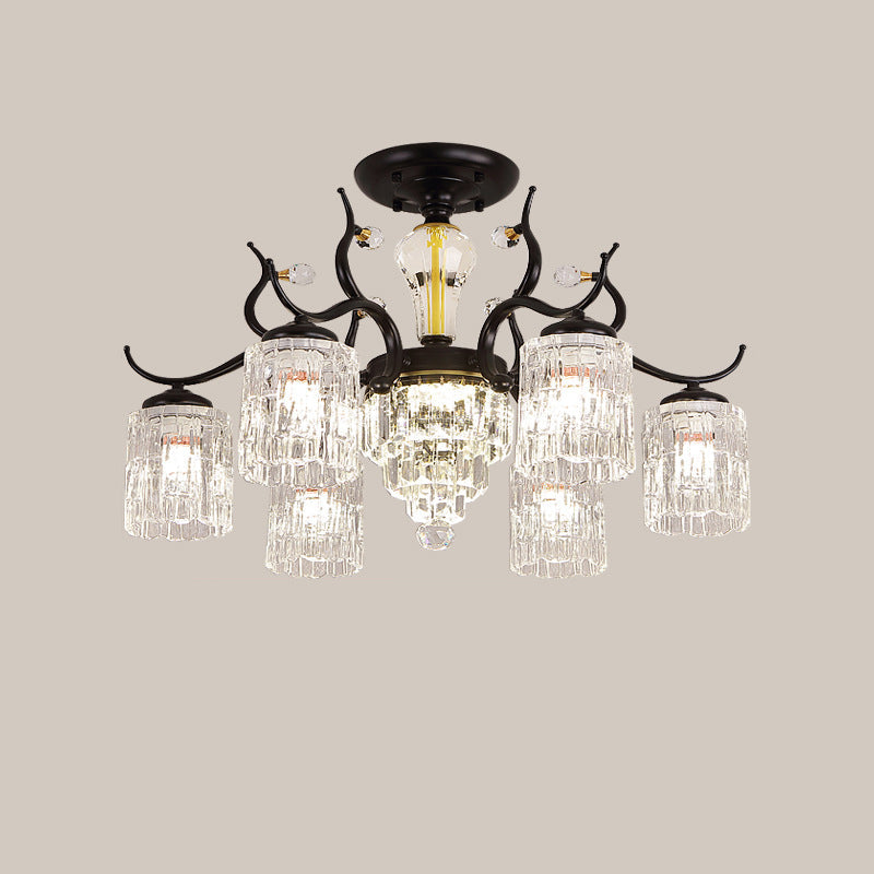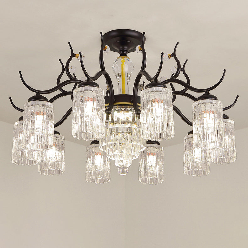 現代的な北欧ドームブランチカーブロッドシリンダーガラスランプシェードアイアンクリスタル3/6/8/10 - リビングルーム用ライトシャンデリア