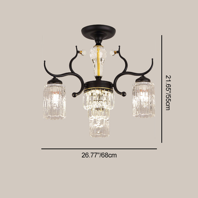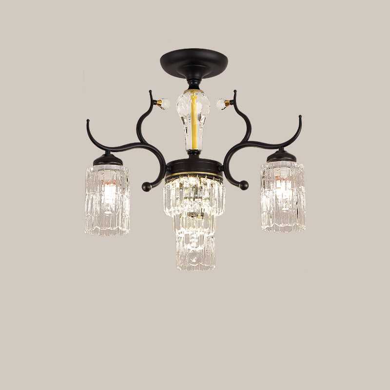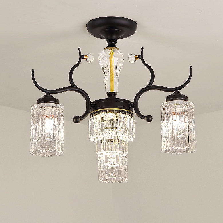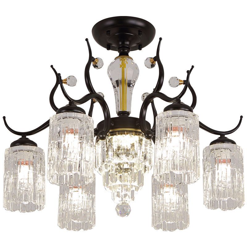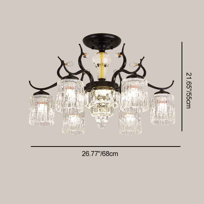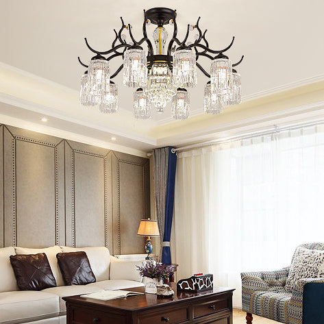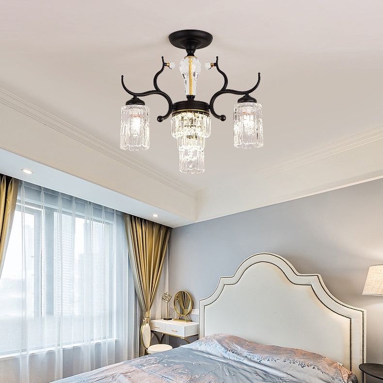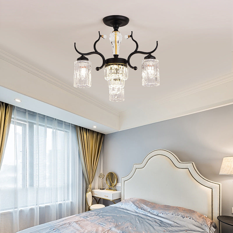 現代的な北欧ドームブランチカーブロッドシリンダーガラスランプシェードアイアンクリスタル3/6/8/10 - リビングルーム用ライトシャンデリア