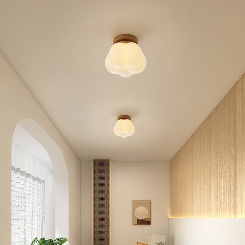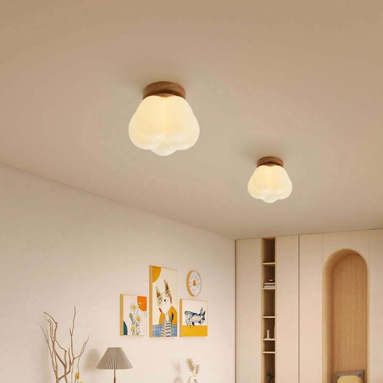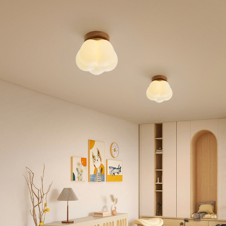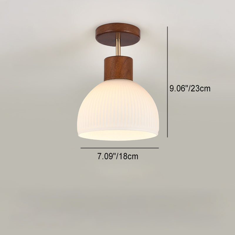 現代的な北欧ドーム型パンプキンシェイプラウンドベース木製PE 1ライトセミフラッシュマウント天井照明(廊下用)