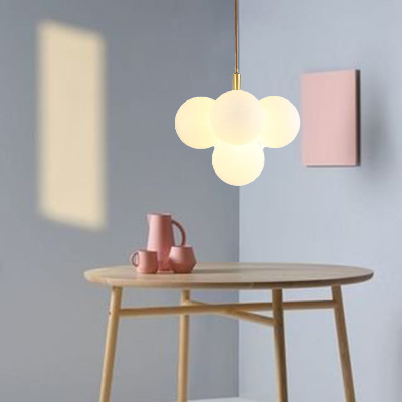 現代的な北欧風の地球儀型銅ガラス5灯ペンダントライト(リビングルーム用)