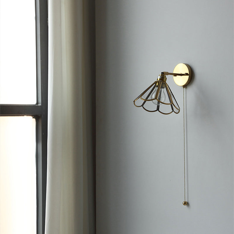 現代的な北欧風六角形銅ガラス1灯壁取り付け用燭台ランプ(リビングルーム用)