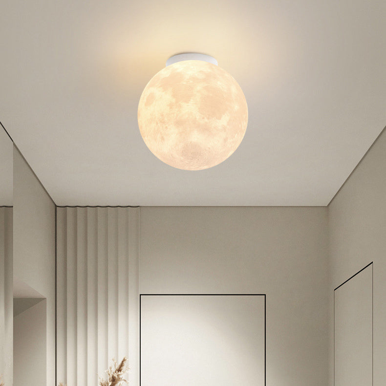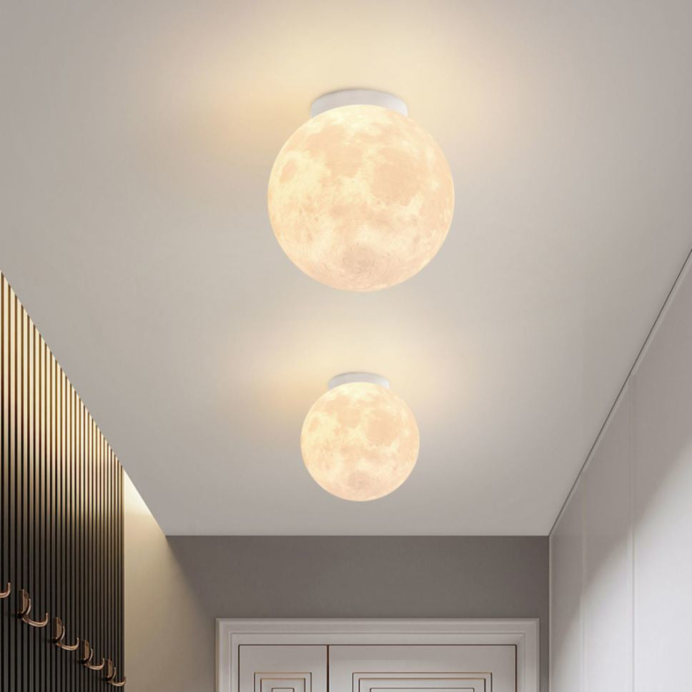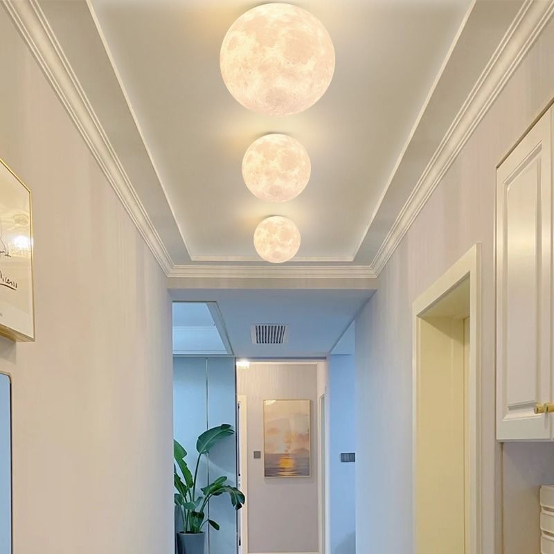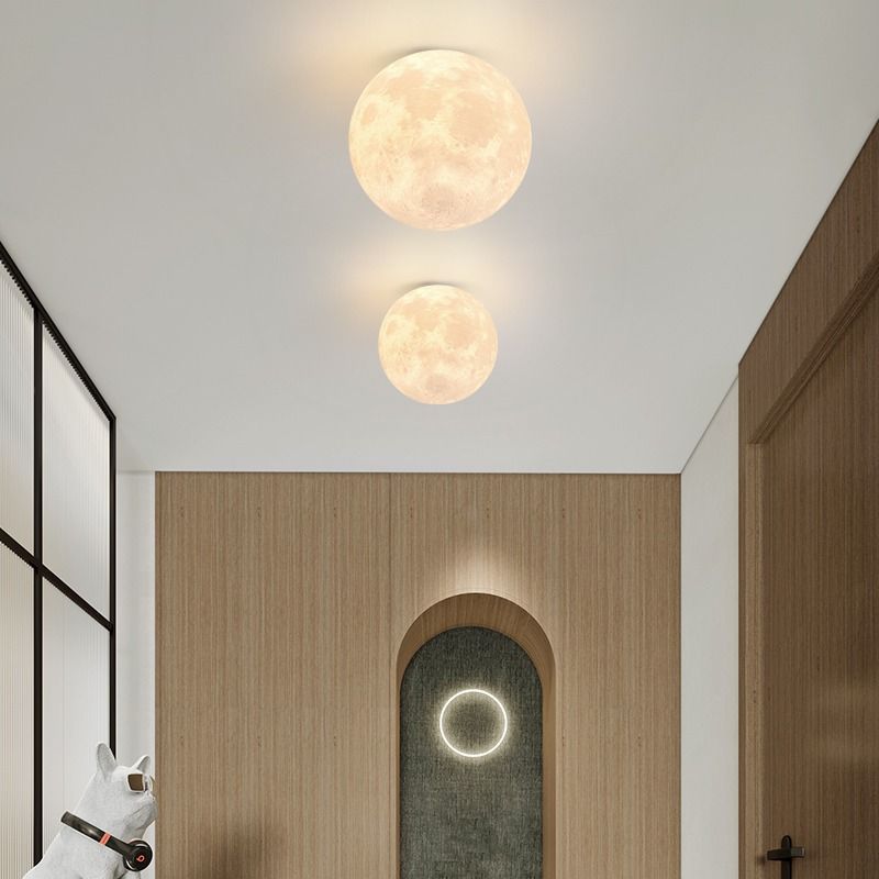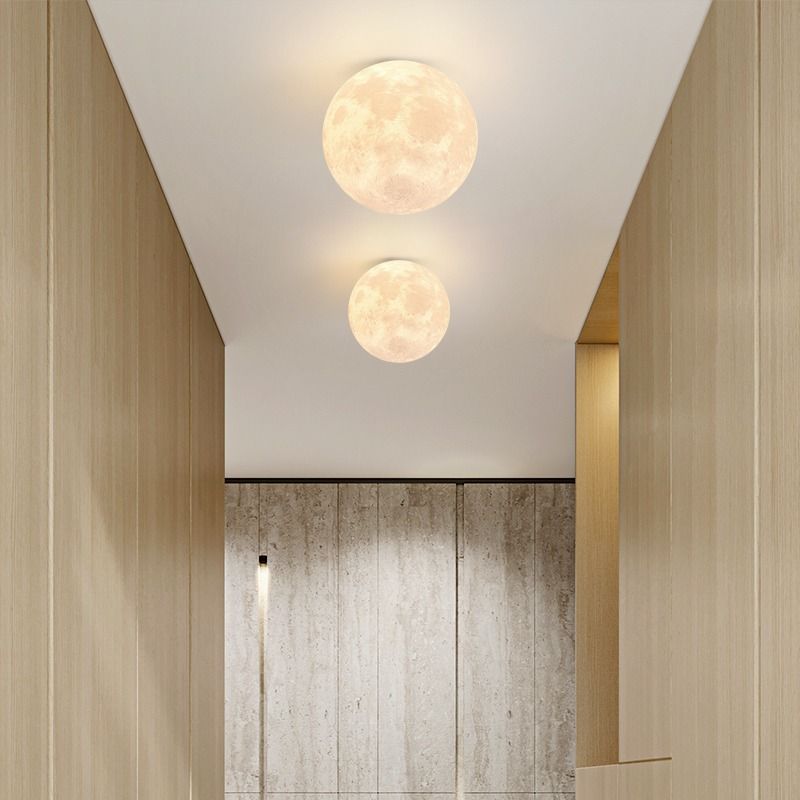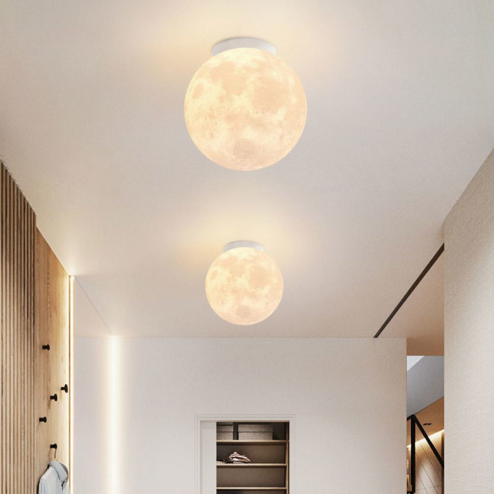 現代的な北欧風アイアン樹脂製ムーンボール1灯セミフラッシュマウント天井照明(廊下用)