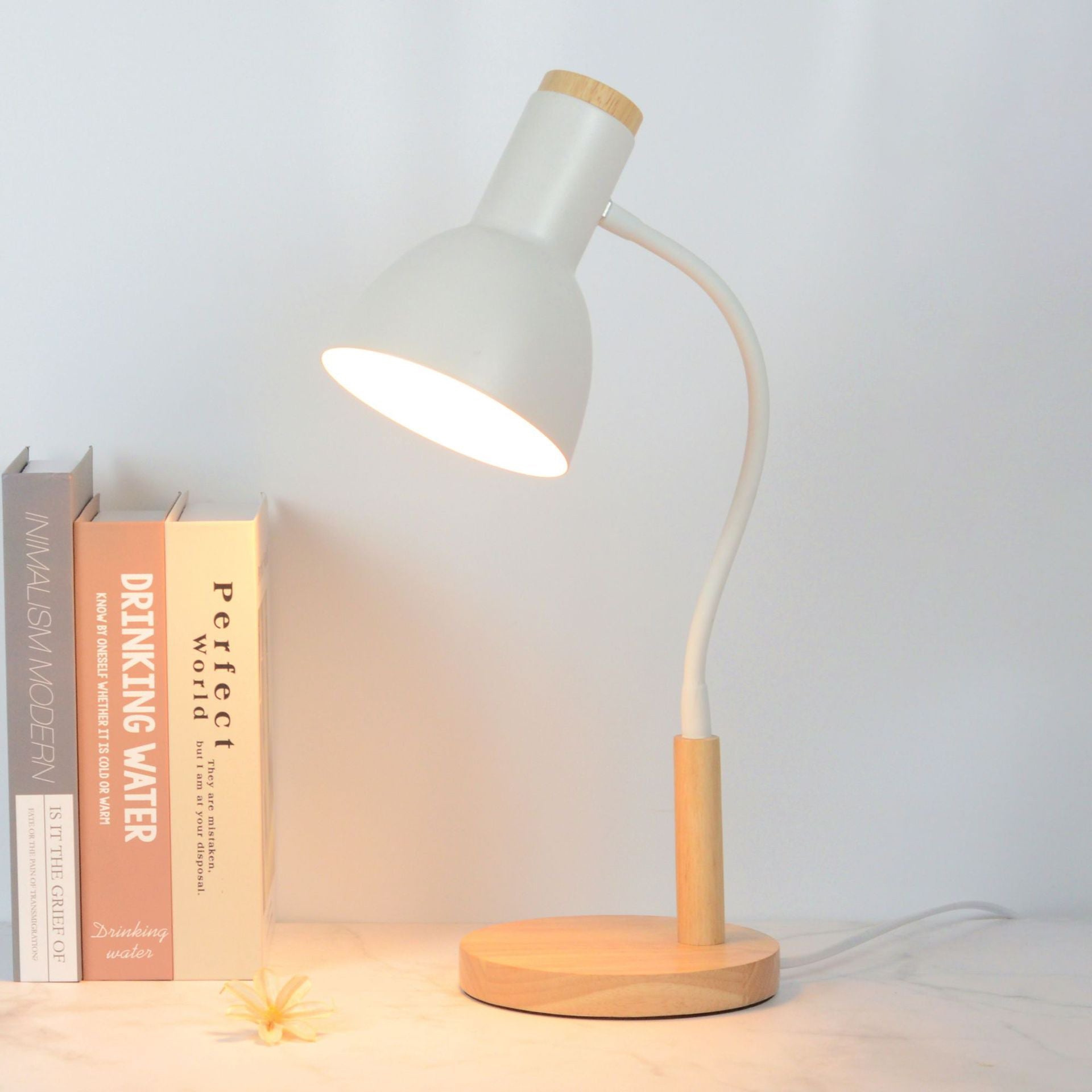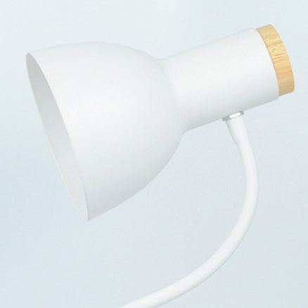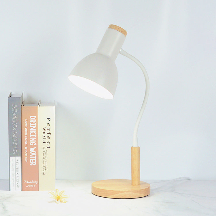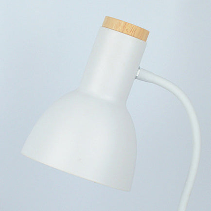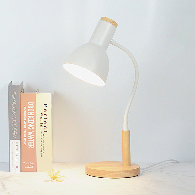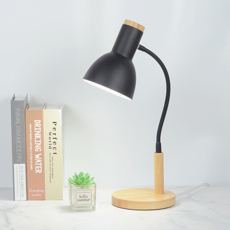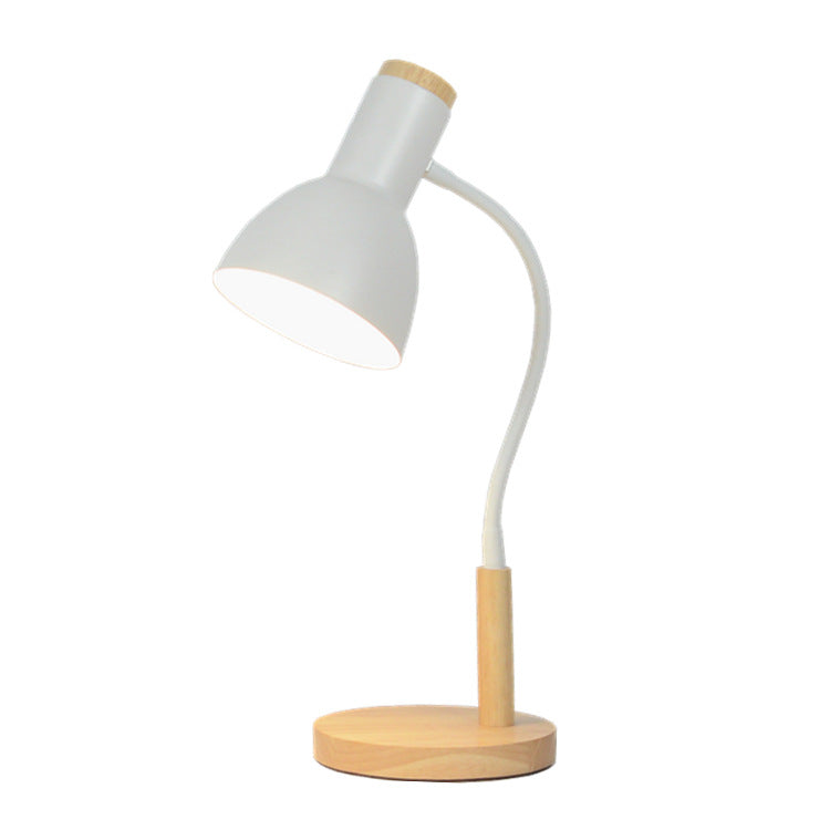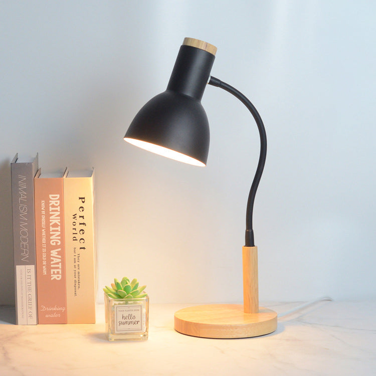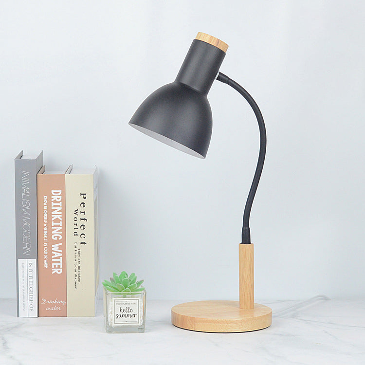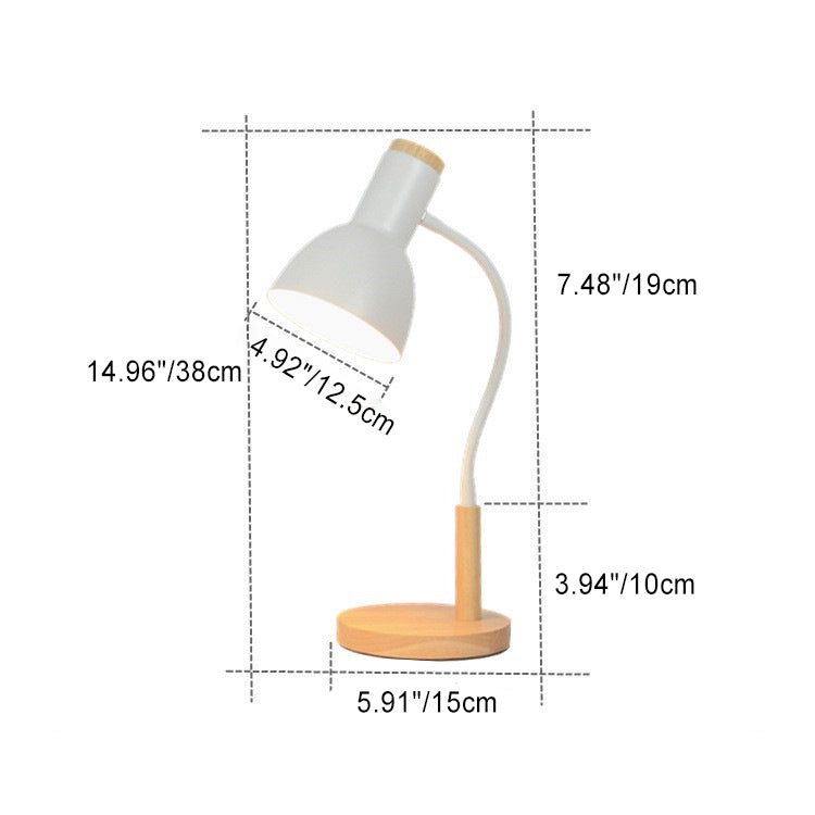Contemporary Nordic Iron Round Shade Wood Base 1-Light Table Lamp For Home Office