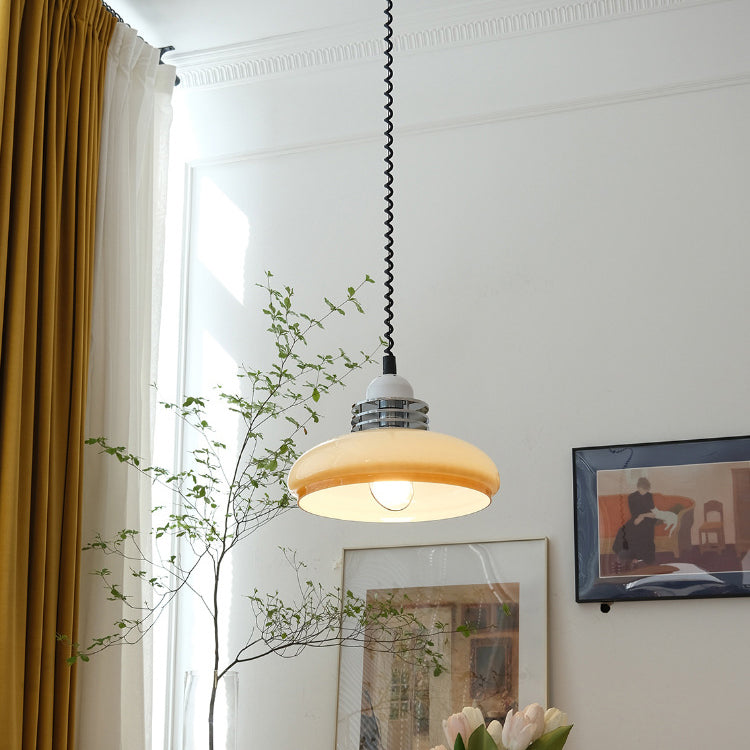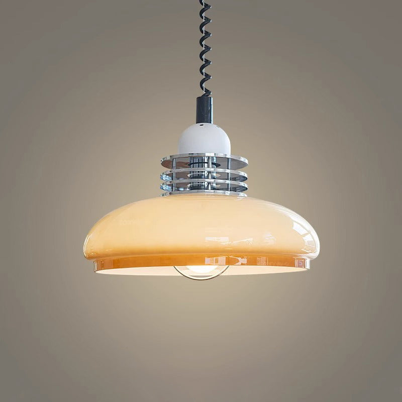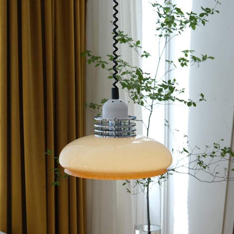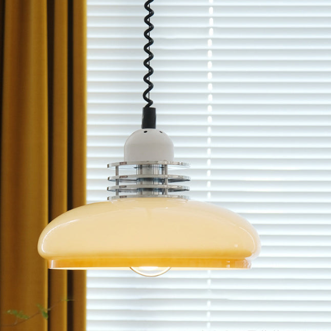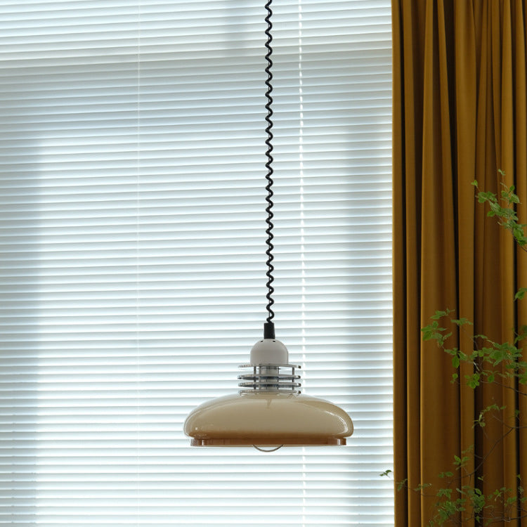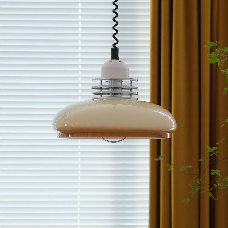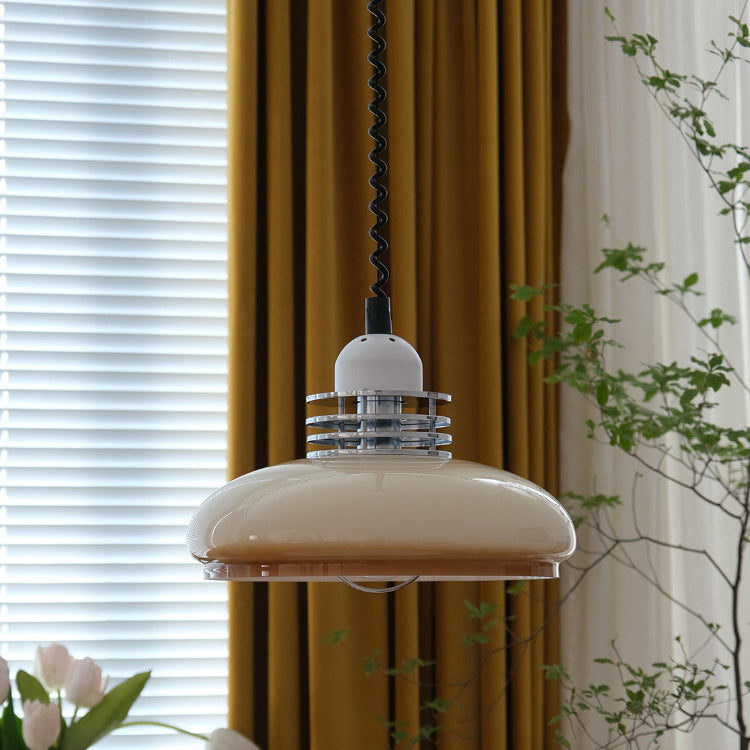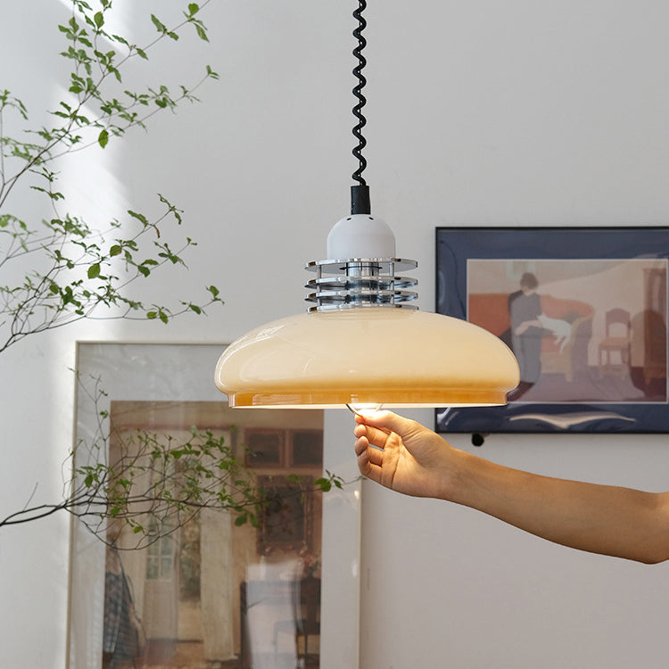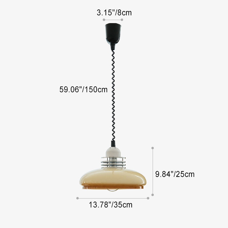 現代的な北欧風の引き込み式ラウンドアイアンガラスシェード1灯ペンダントライト(リビングルーム用)