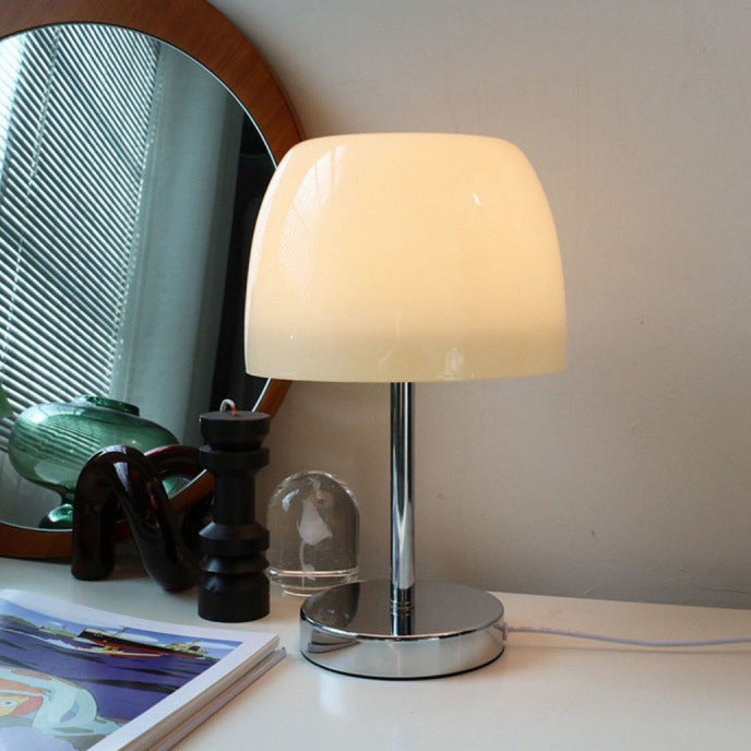 Contemporary Nordic Round Base Mushroom Lamp Shape Stainless Steel Glass 1-Light Table Lamp For Living Room