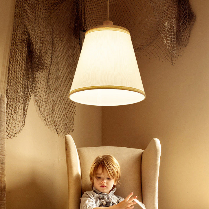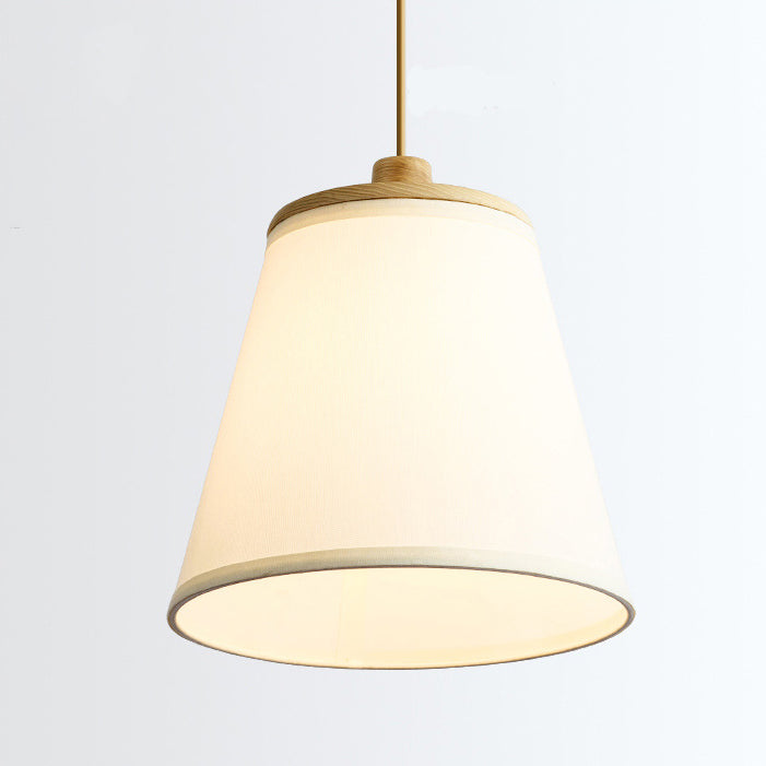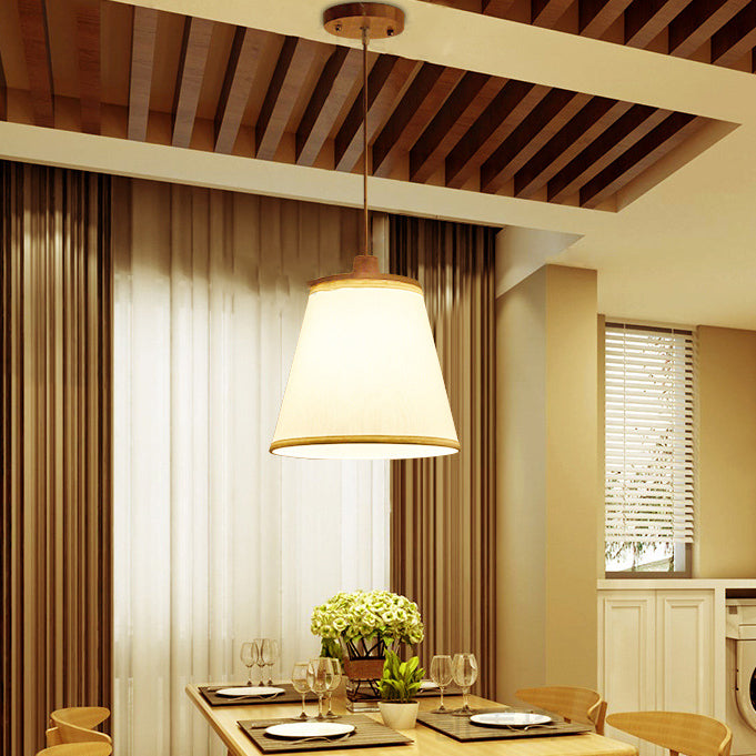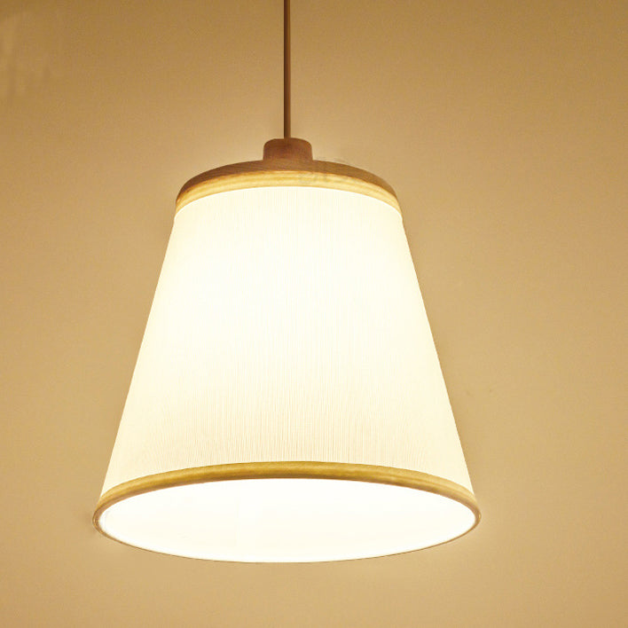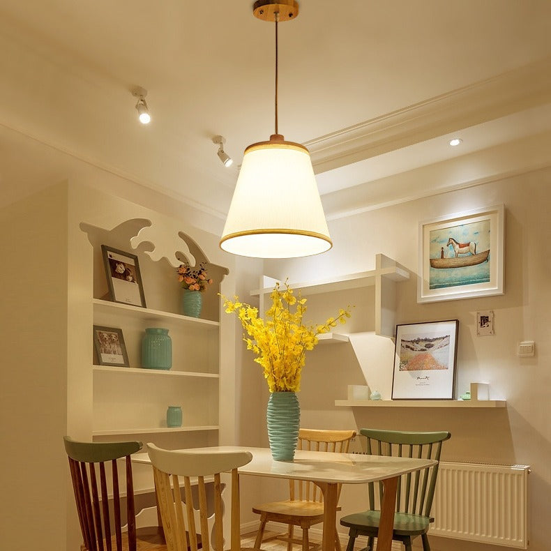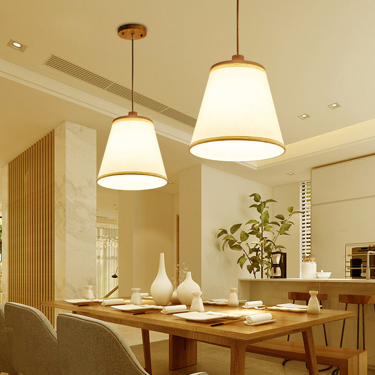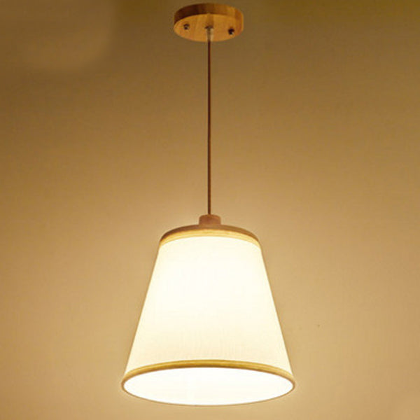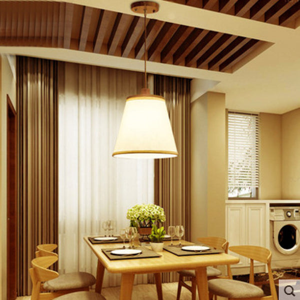 現代的な北欧風丸型シリンダー木製ファブリックシェード1灯ペンダントライト(リビングルーム用)