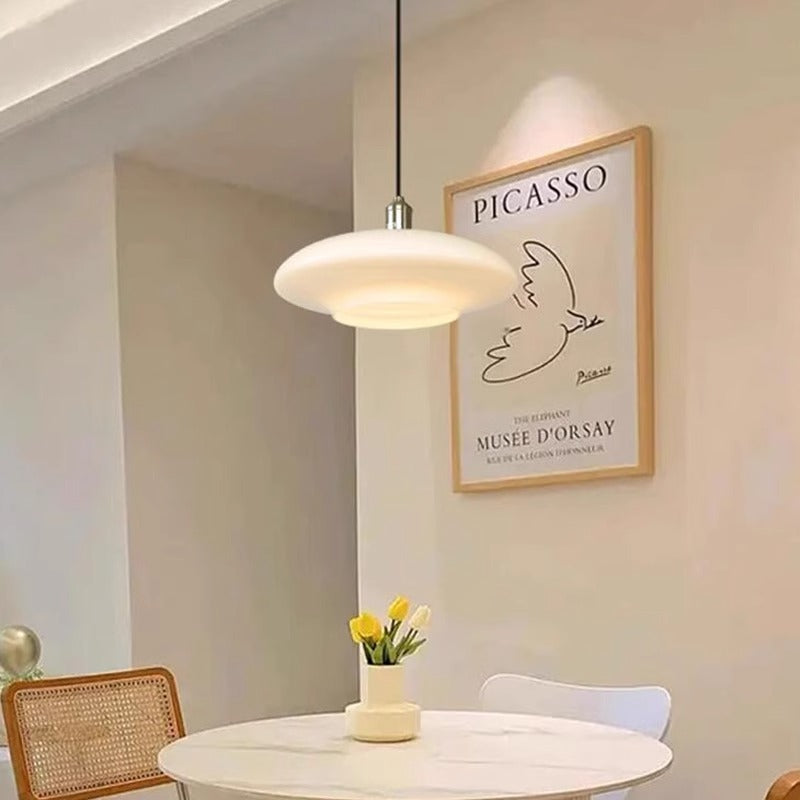 現代的な北欧風ラウンドディスクハードウェアガラス1灯ペンダントライトリビングルーム用
