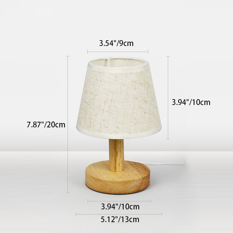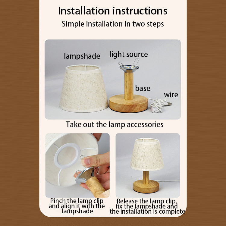 寝室に最適な、北欧風の丸型木製ファブリックLEDテーブルランプ