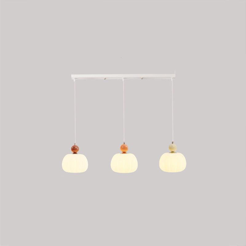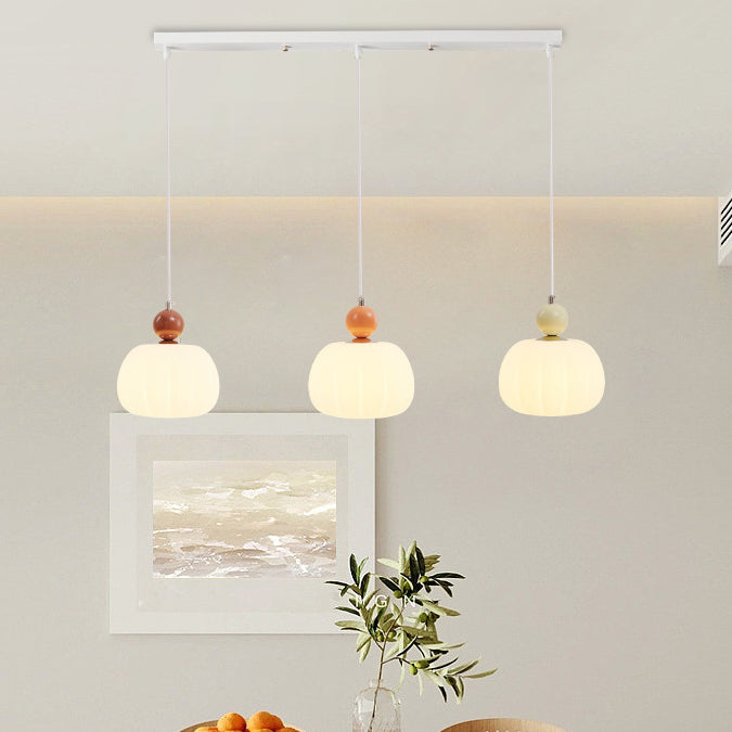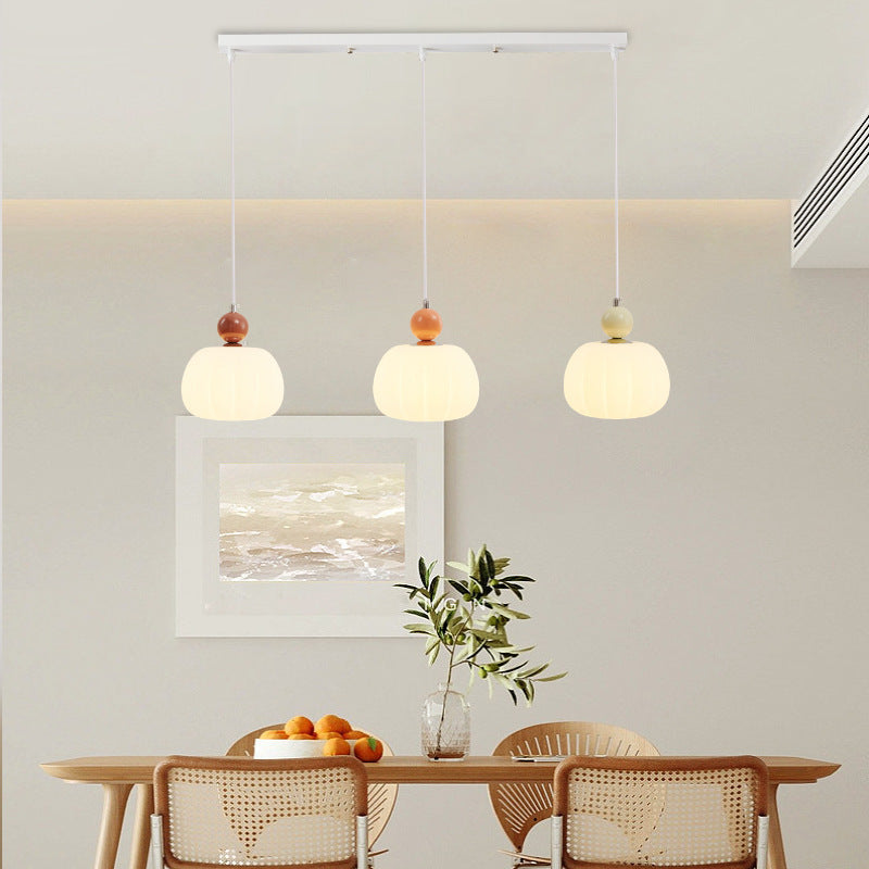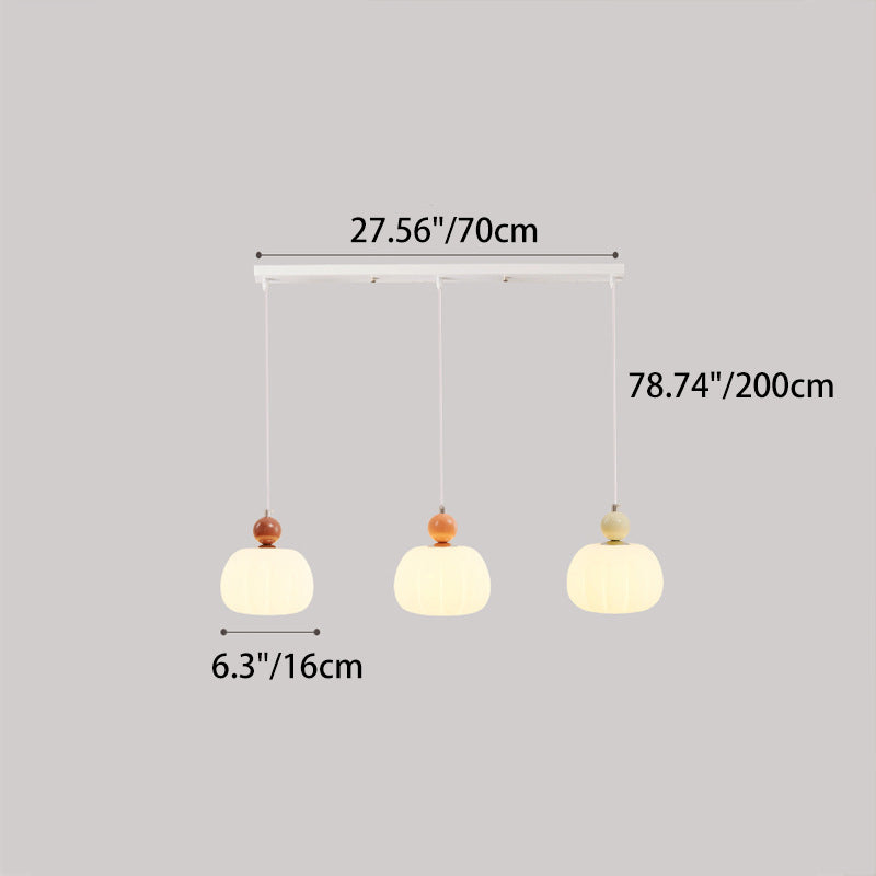 現代的な北欧風の小さな球形の丸いパンプキン型金具付きPE製3灯シャンデリア(ダイニングルーム用)