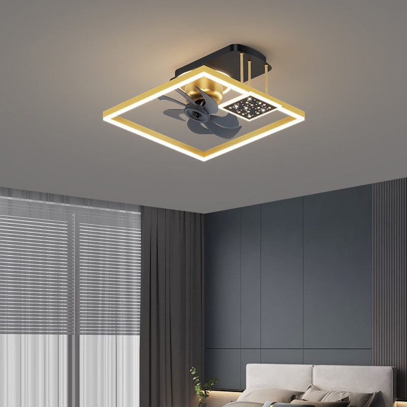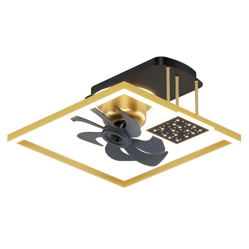 寝室用 北欧風 スクエア型 アイアン アルミ アクリル LED セミフラッシュマウント シーリングファンライト