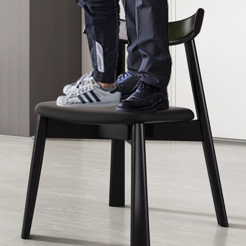 Contemporary Nordic Square Upholstered Curved Microfiber Leather Wood Dining Chair Backrest For Dining Room