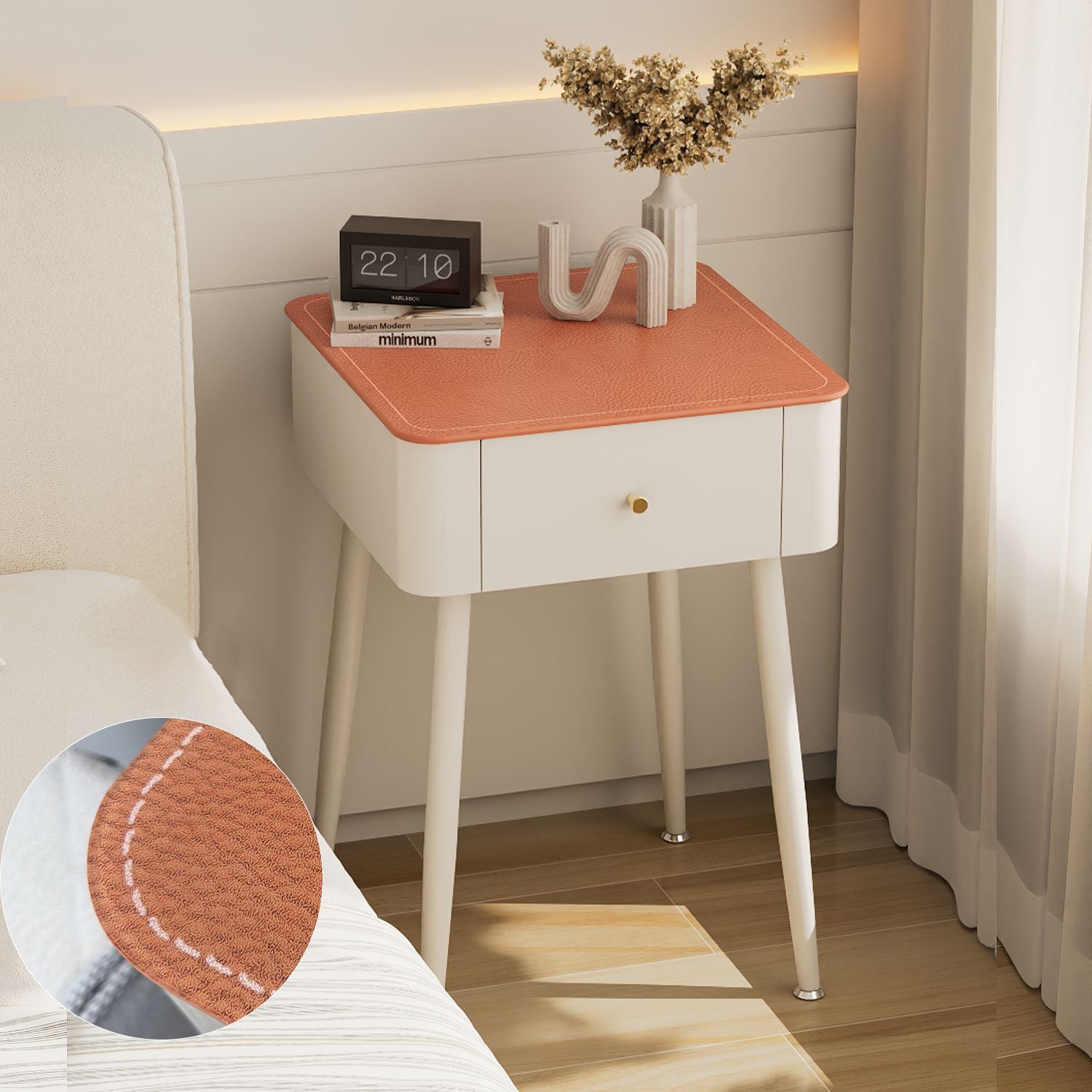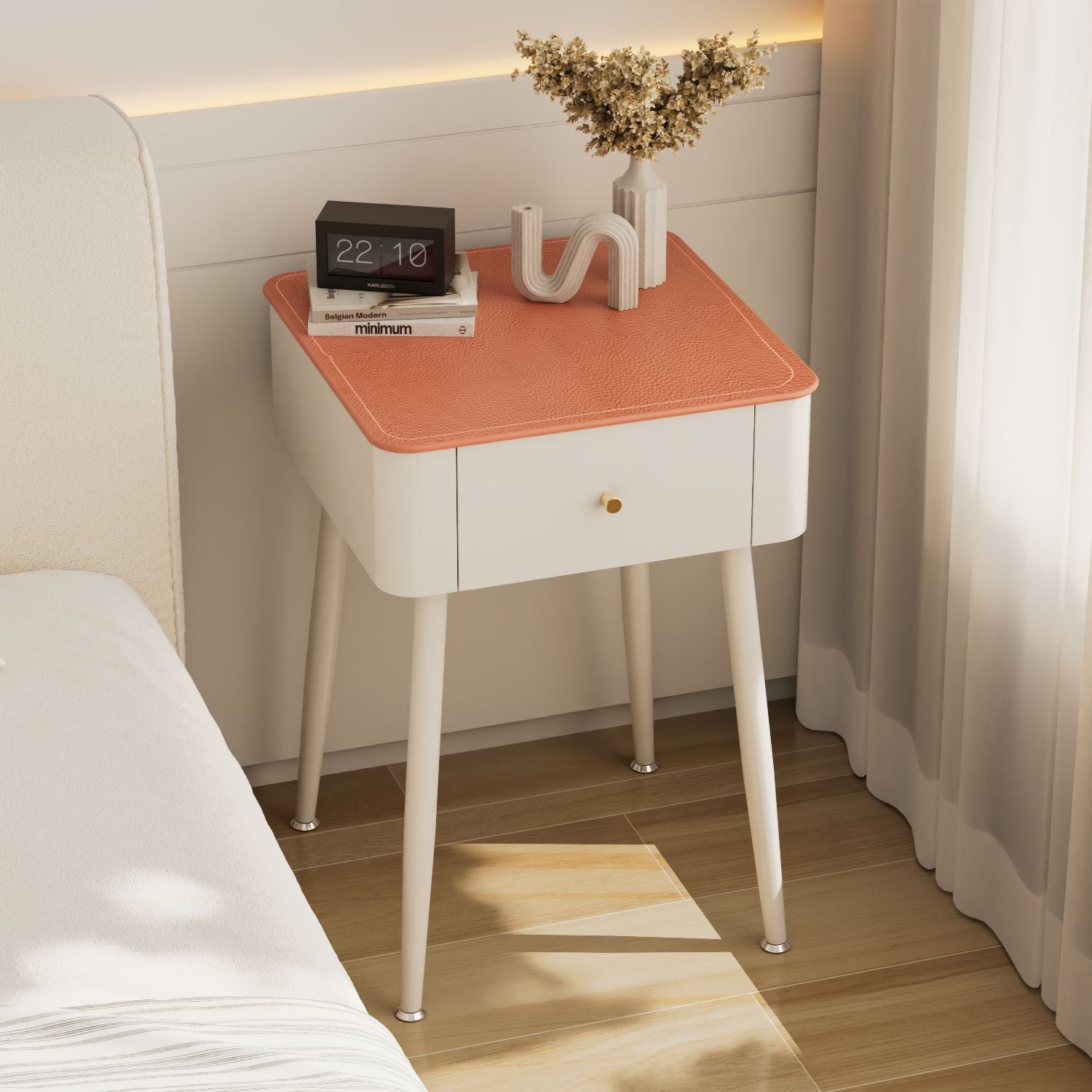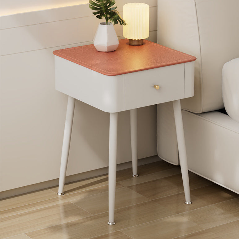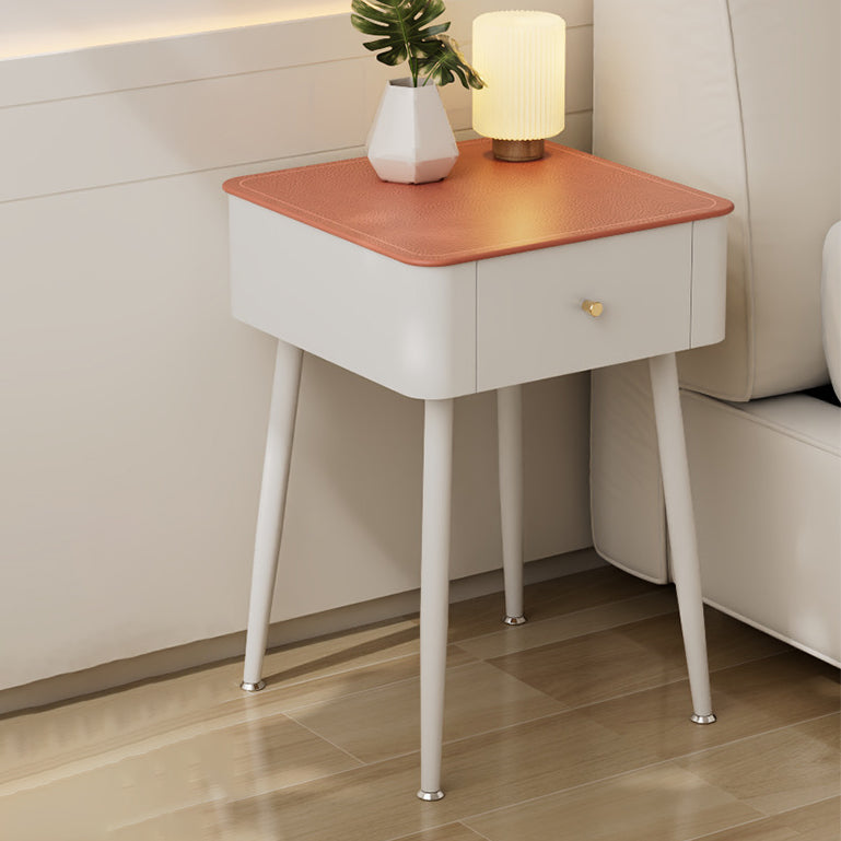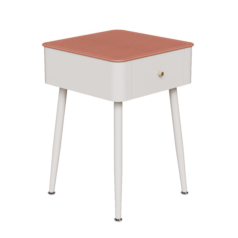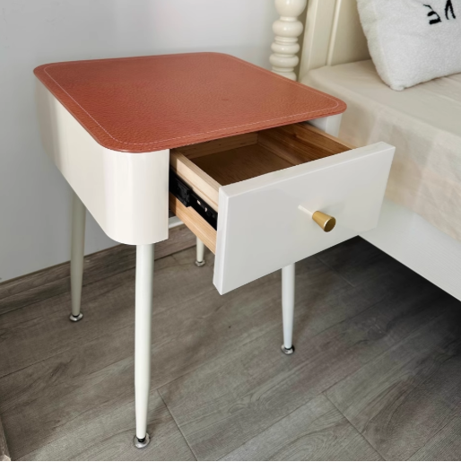 現代的な北欧風強化ガラスPPアイアンスクエアレザーテクスチャナイトスタンド、寝室用引き出し1つ付き