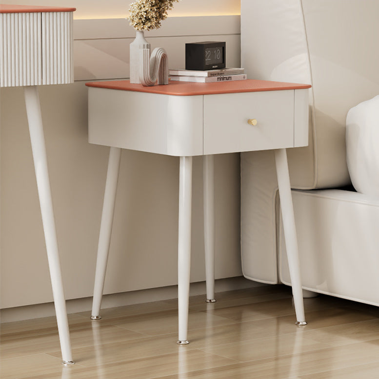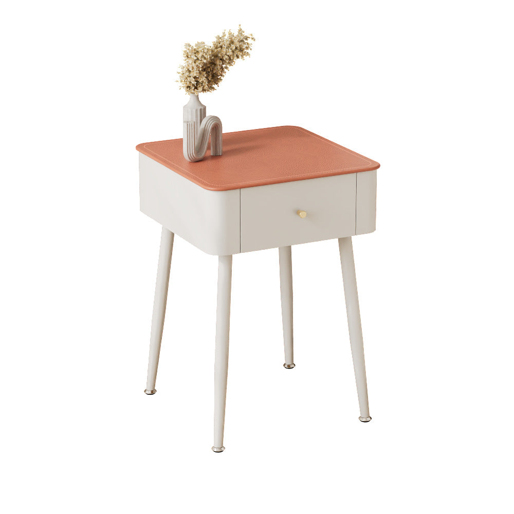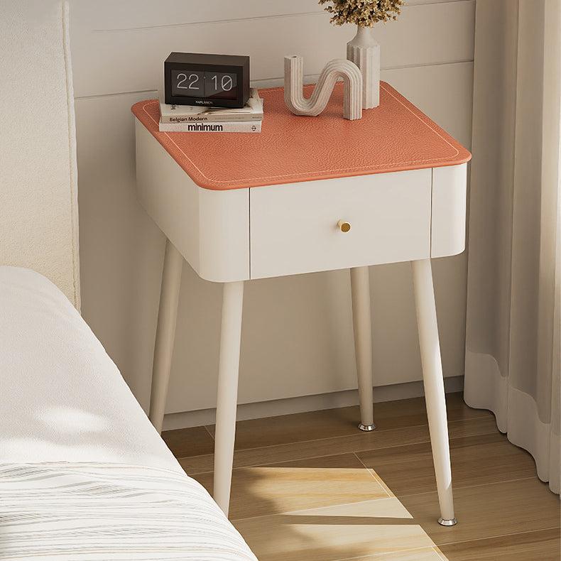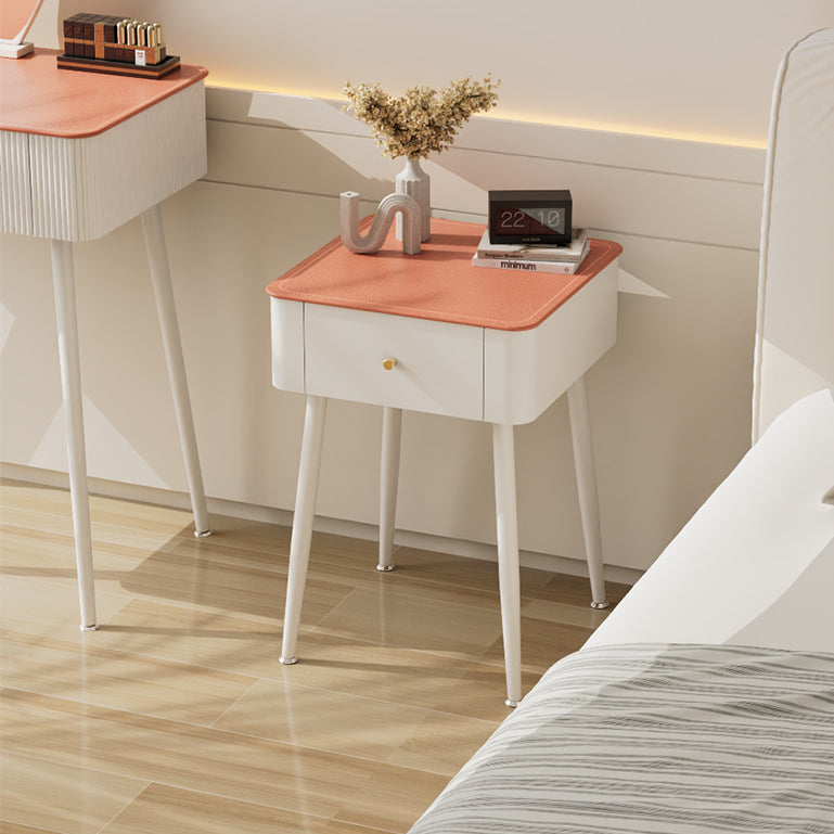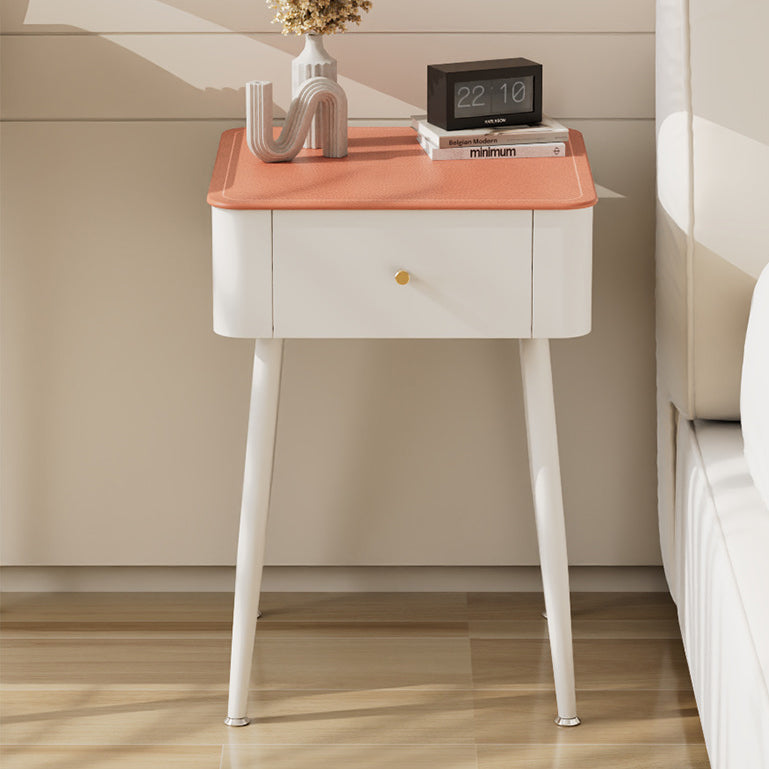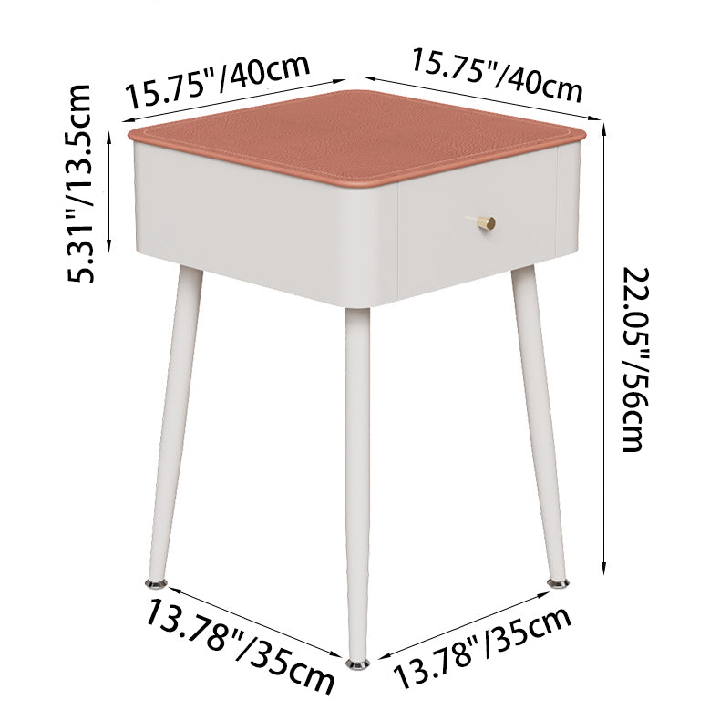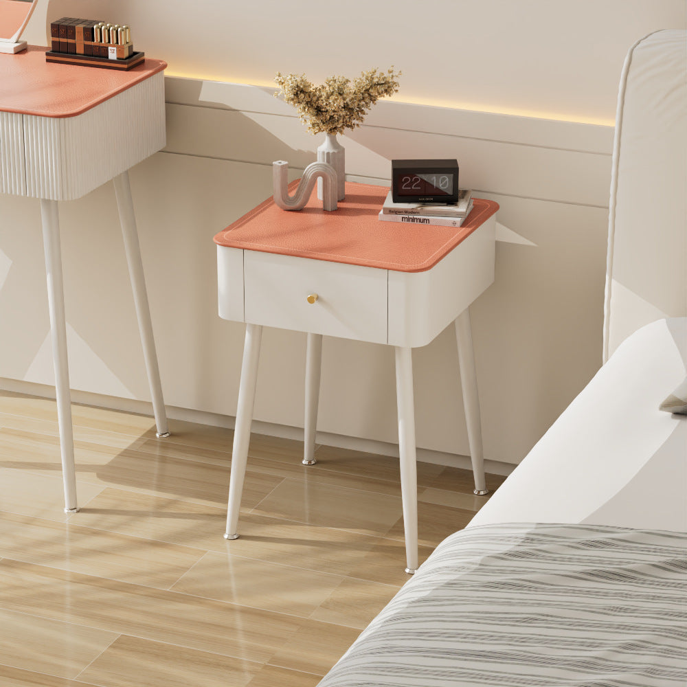 現代的な北欧風強化ガラスPPアイアンスクエアレザーテクスチャナイトスタンド、寝室用引き出し1つ付き