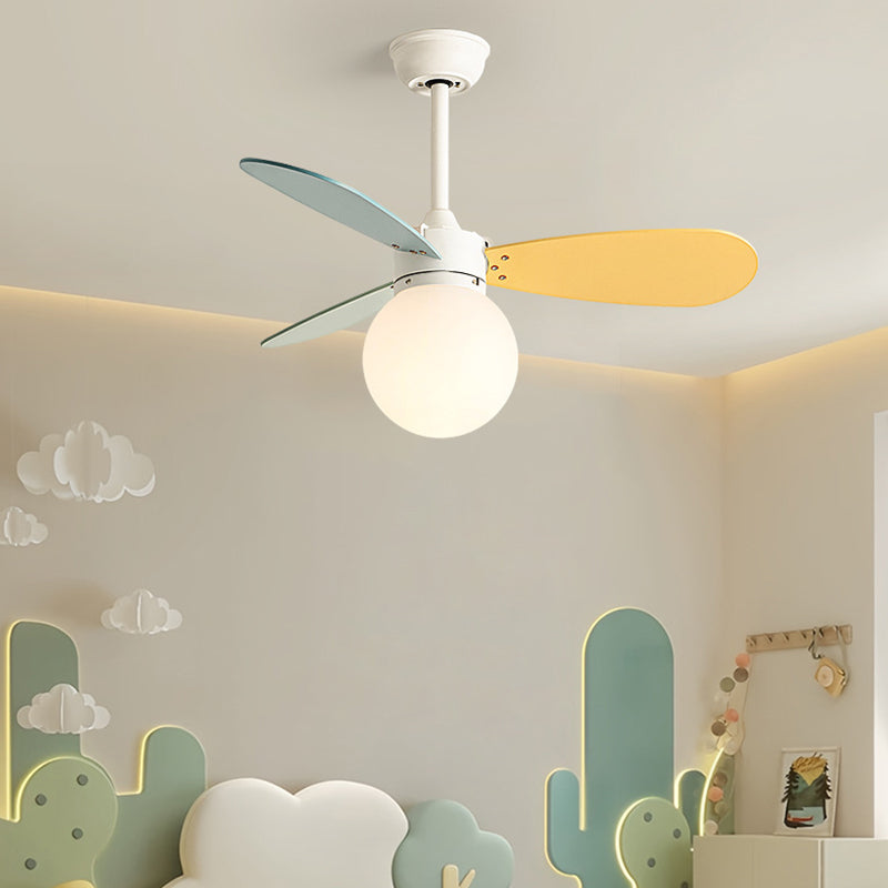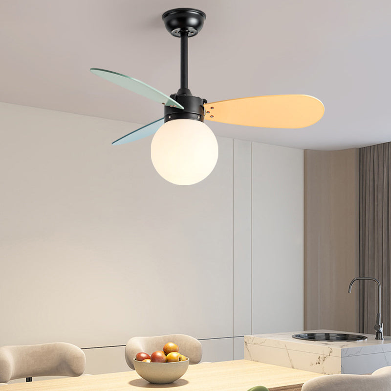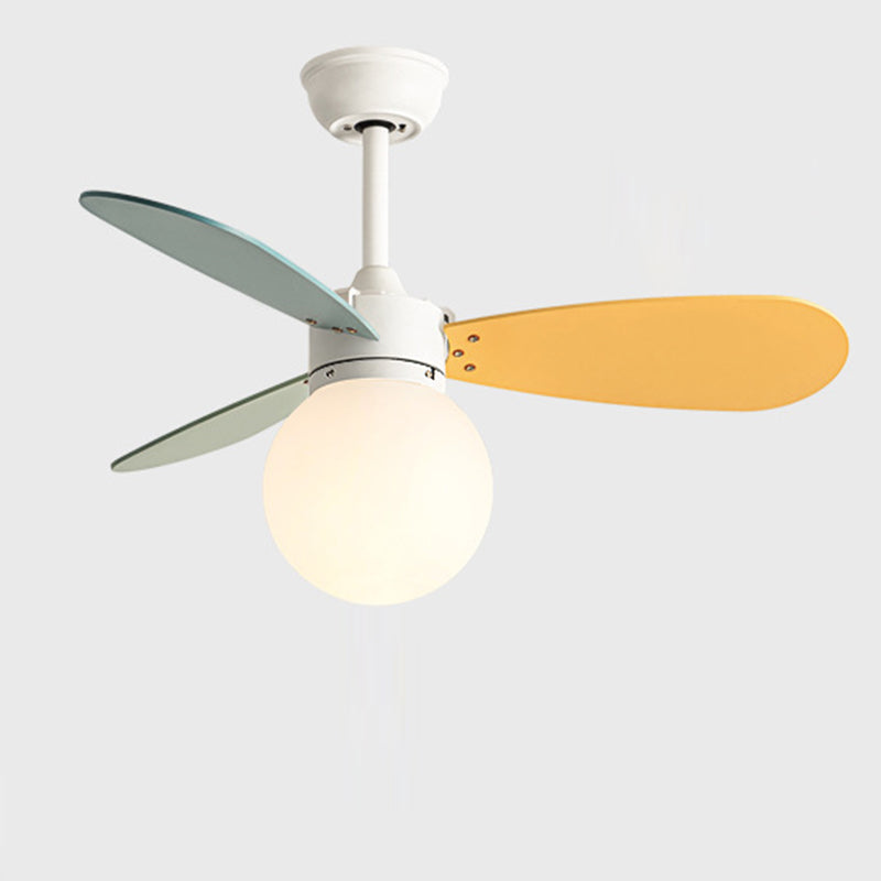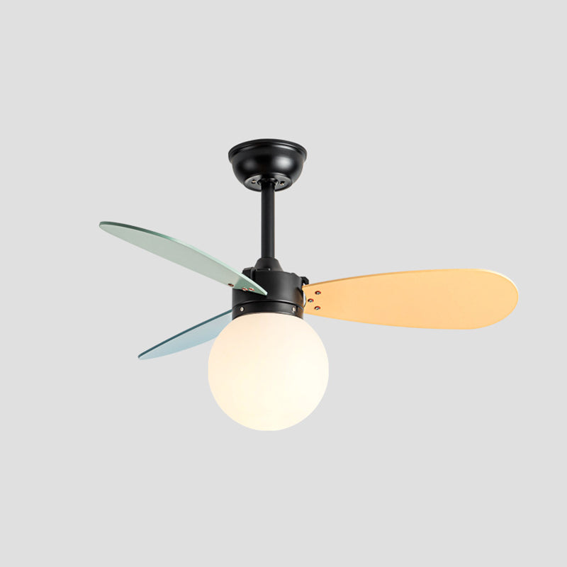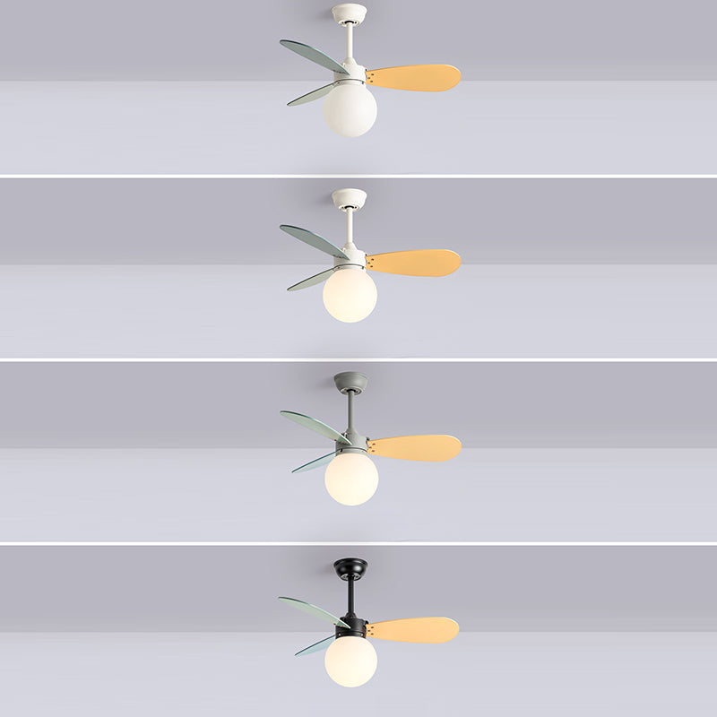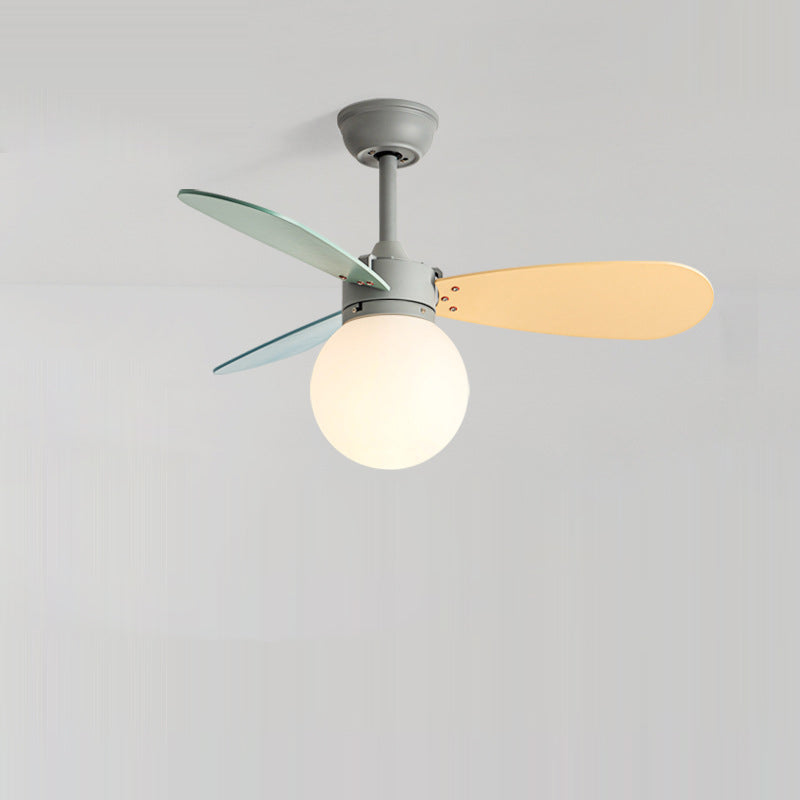 現代的な北欧風木製アイアンアクリルボール1灯ダウンロッドシーリングファンライト寝室用