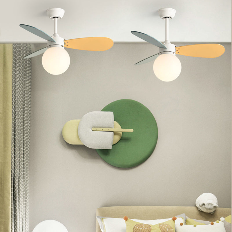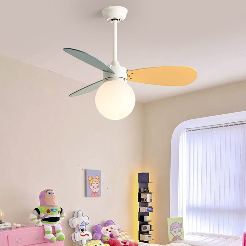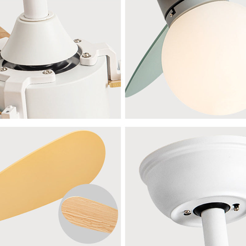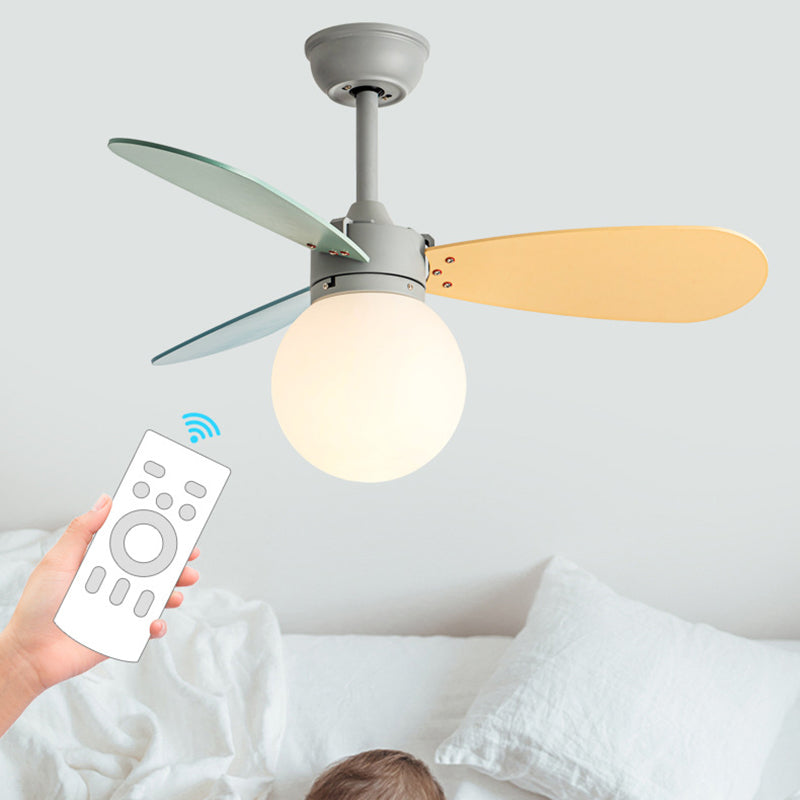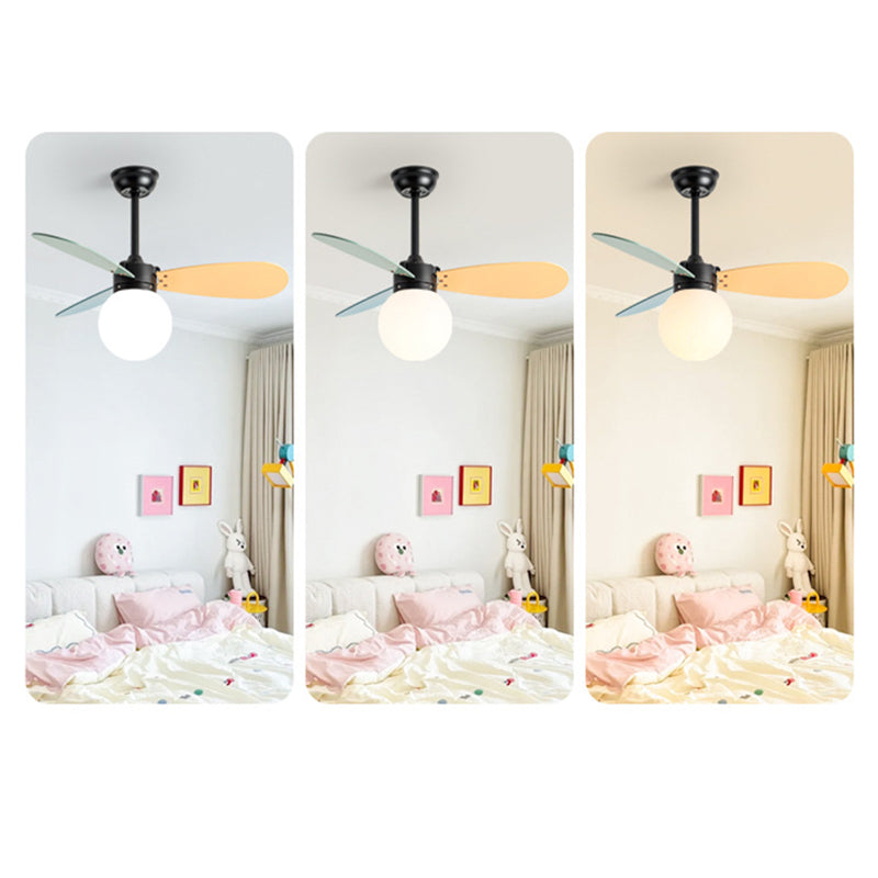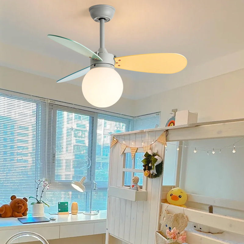 現代的な北欧風木製アイアンアクリルボール1灯ダウンロッドシーリングファンライト寝室用