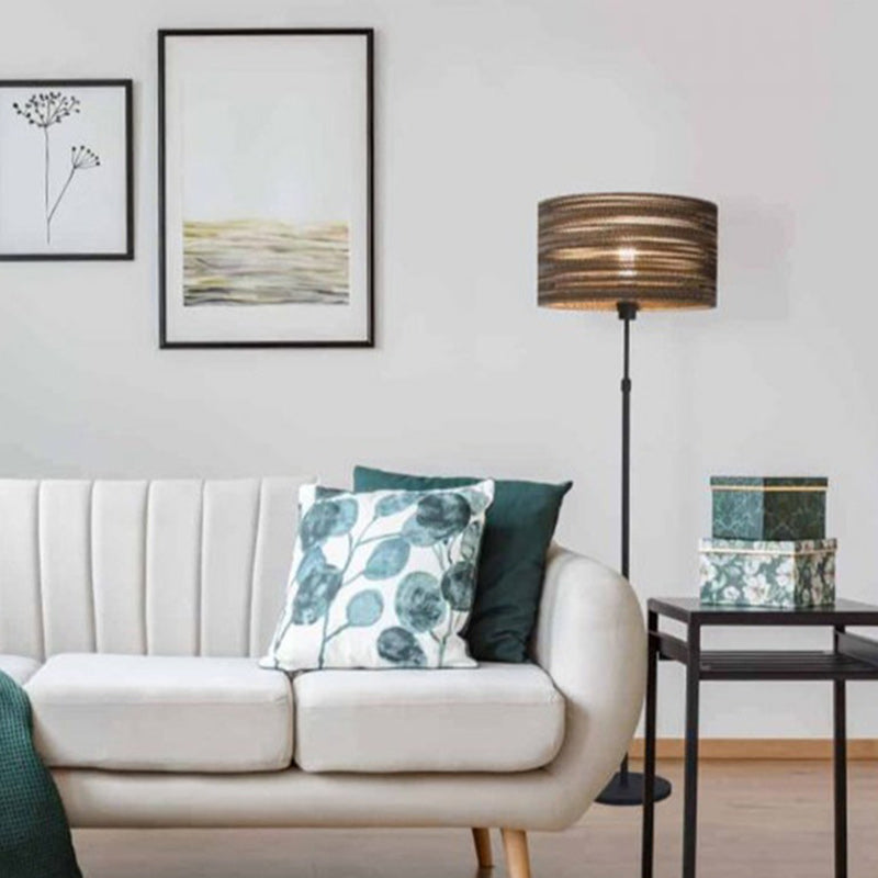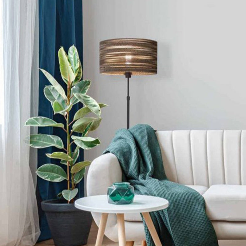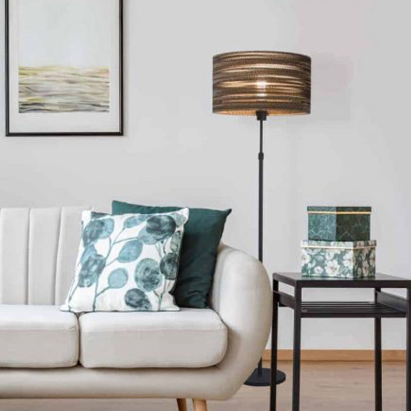 Contemporary Retro Corrugated Cardboard Cylinder 1-Light Standing Floor Lamp For Living Room