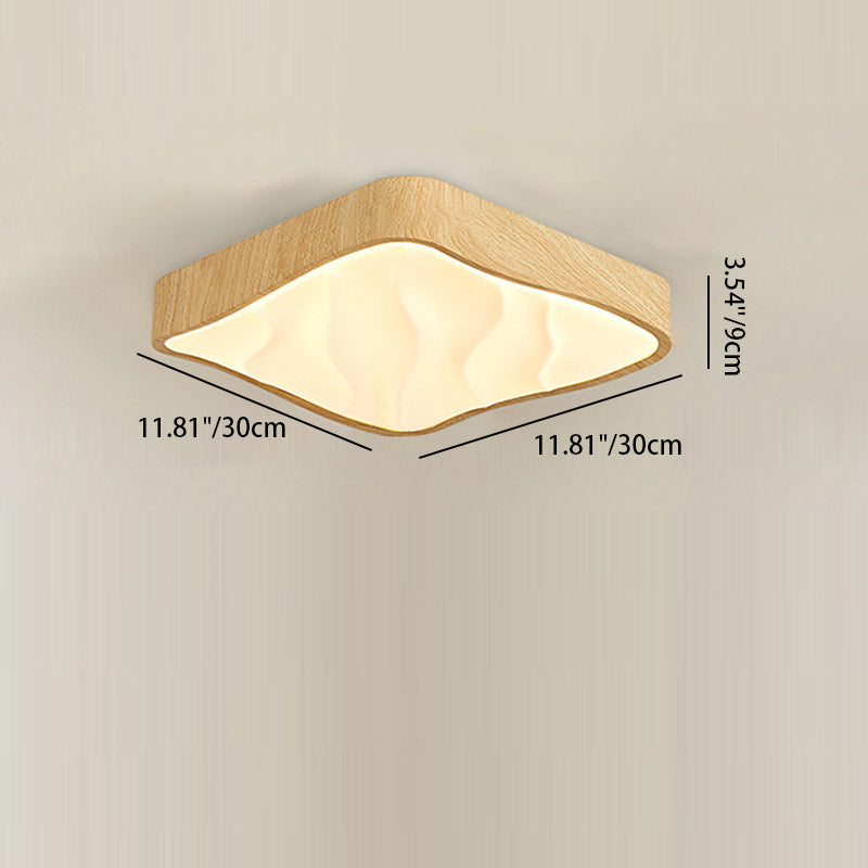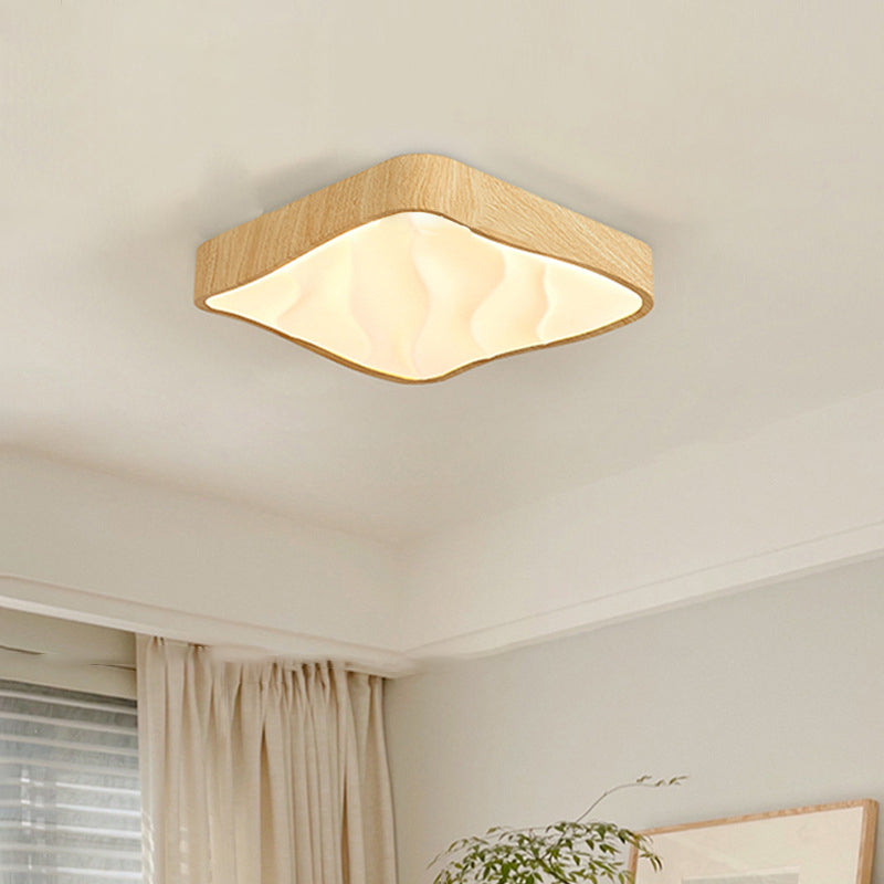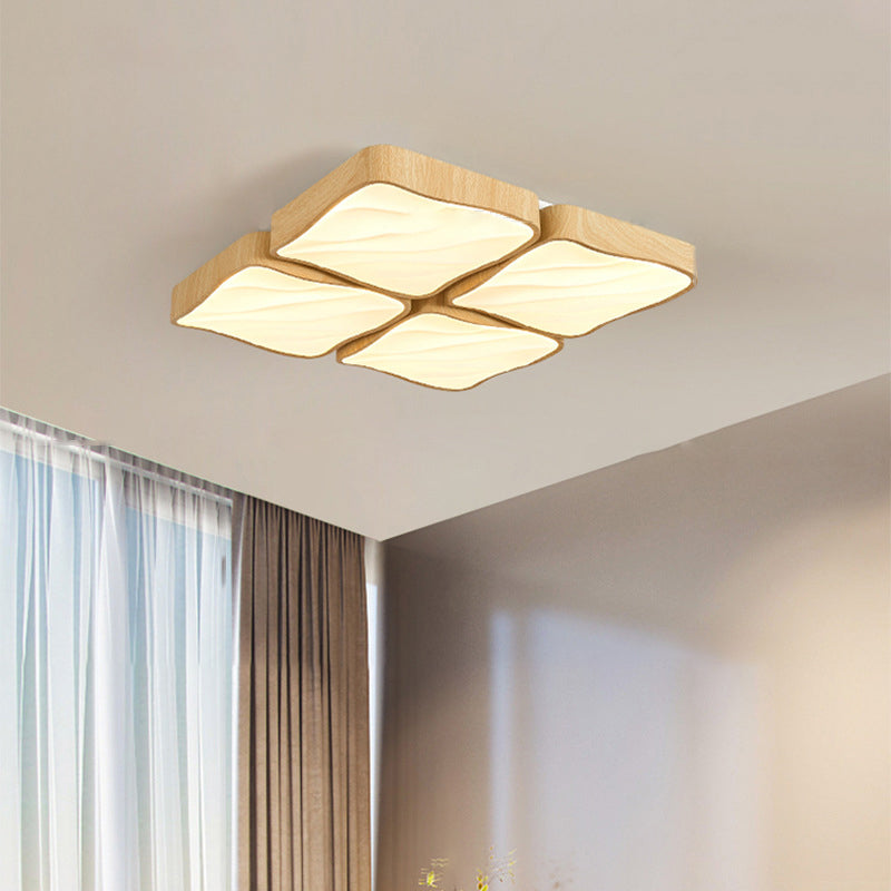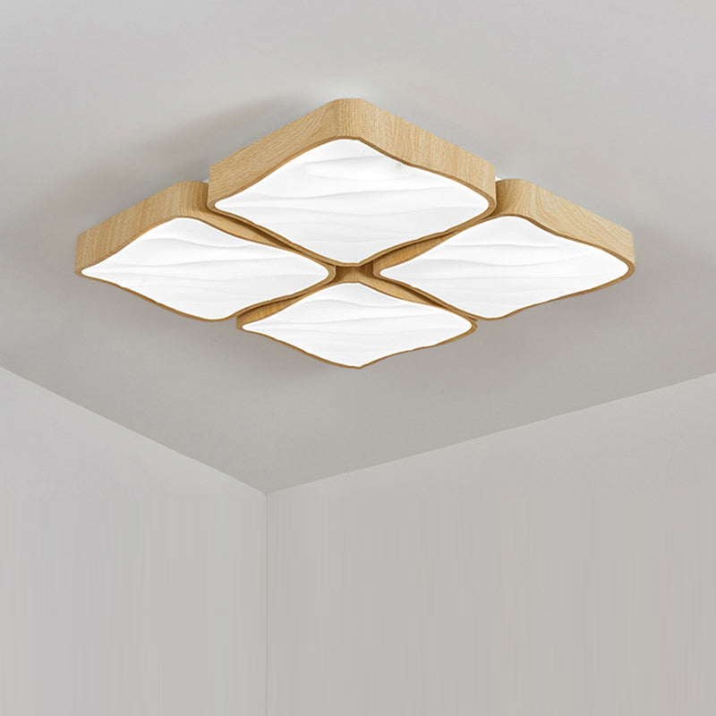 寝室用モダンレトロアイアンイミテーションアッシュウッドグレインアクリルLEDフラッシュマウントシーリングライト