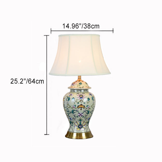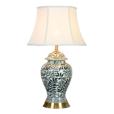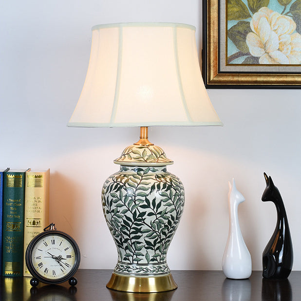 Contemporary Retro Lotus Leaves Pattern Ceramic Linen 1-Light Table Lamp For Bedroom