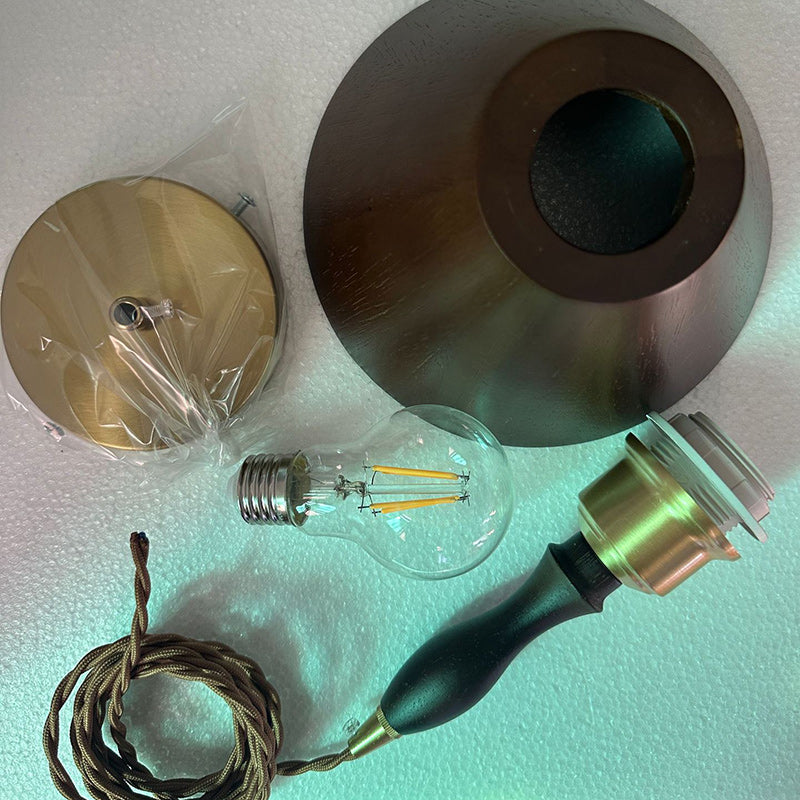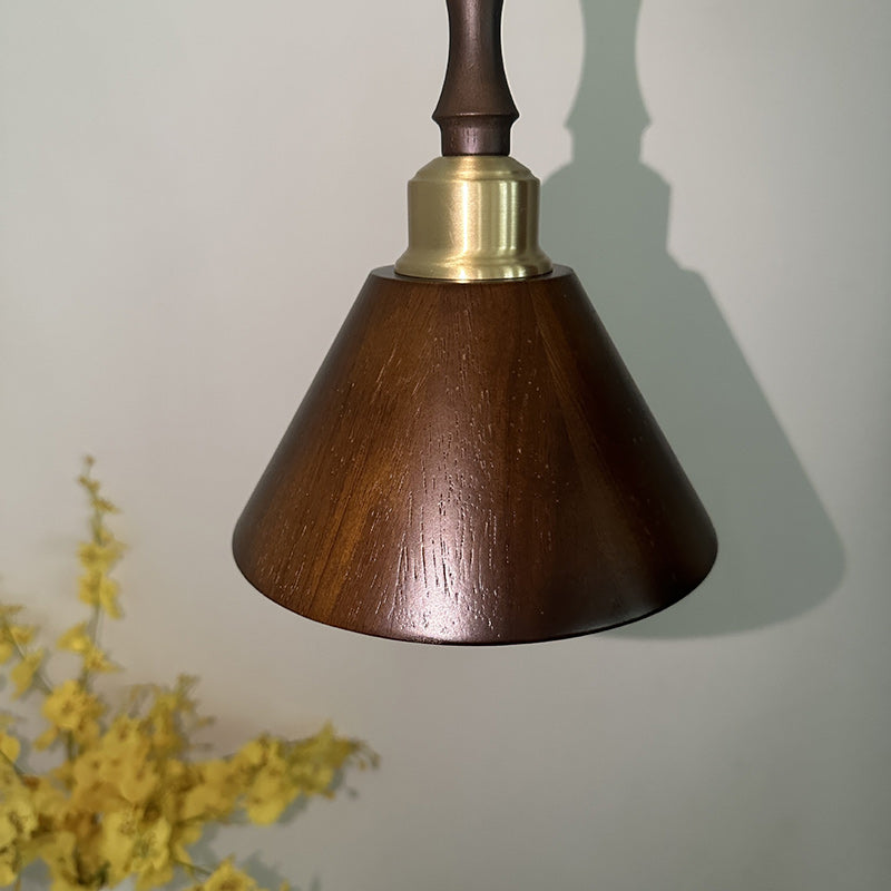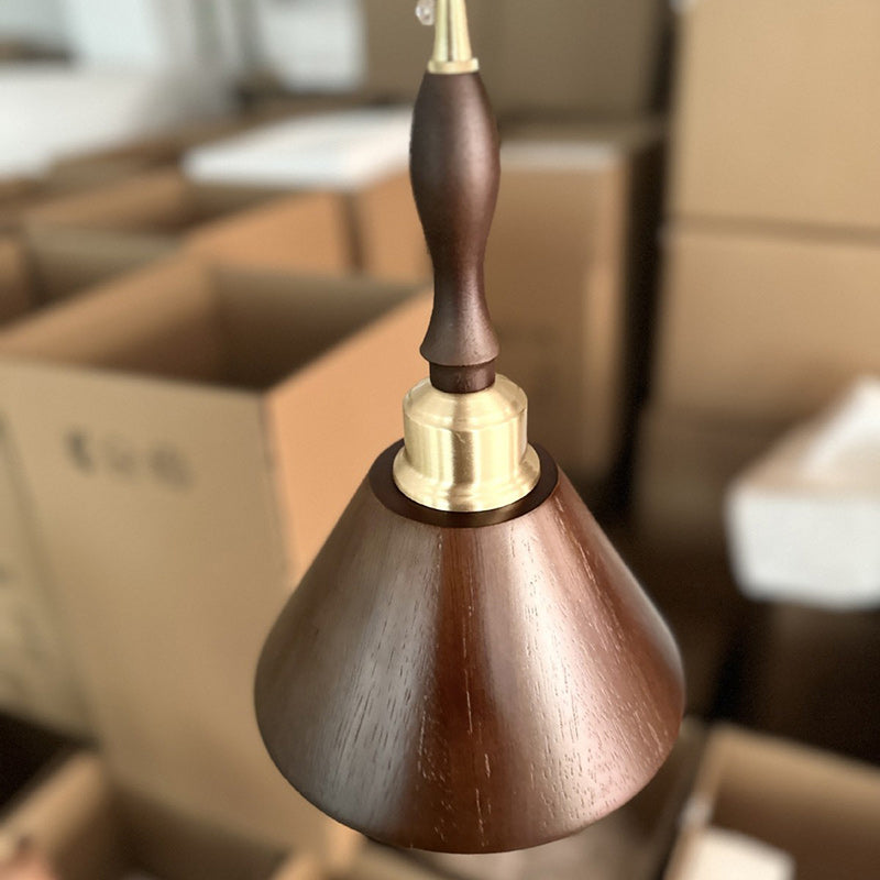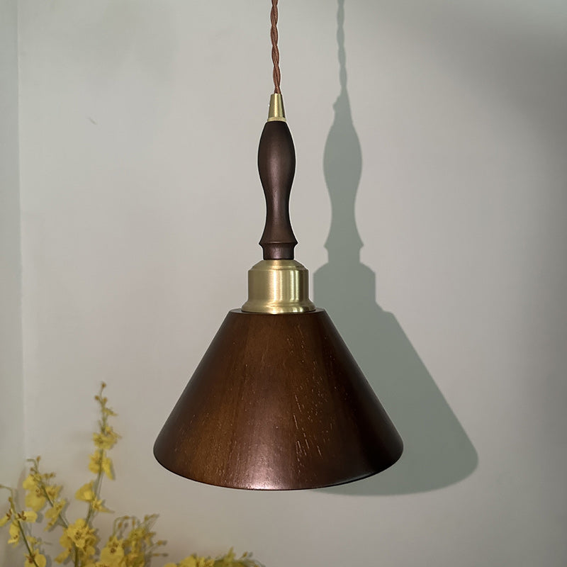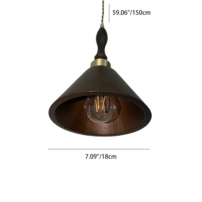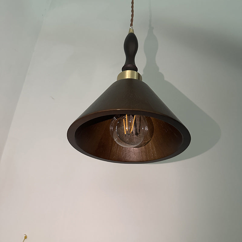 リビングルームに最適な、コンテンポラリーなレトロな丸型コーン型木製ペンダントライト(1灯)