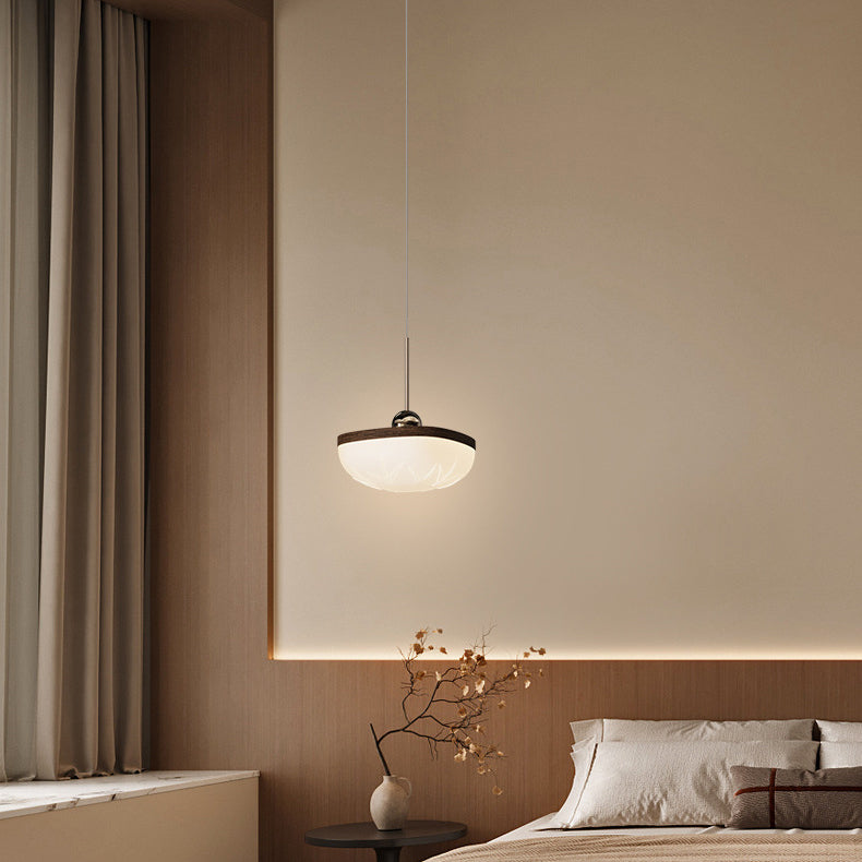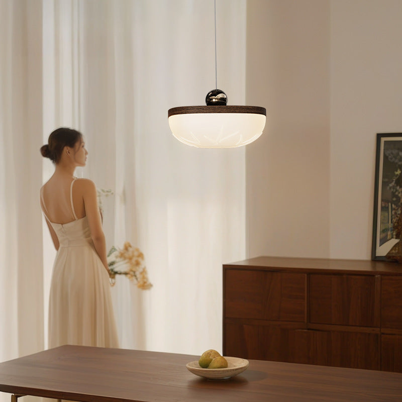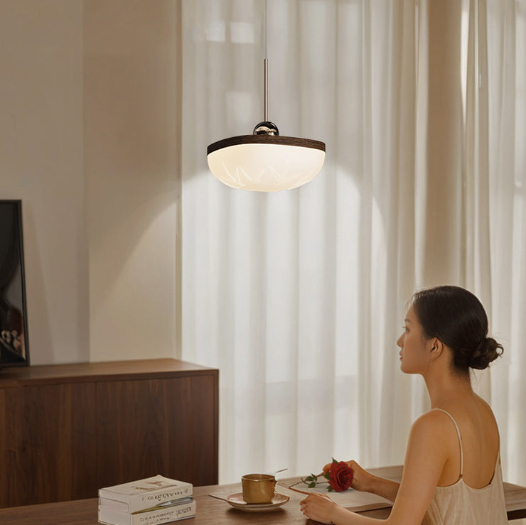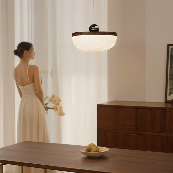 ダイニングルームに最適な、現代的なレトロな半円型アクリルランプシェードとアイアンLEDペンダントライト