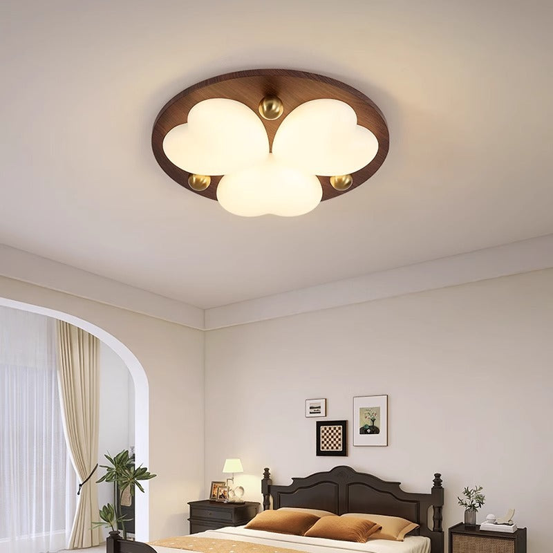 寝室用コンテンポラリーレトロ無垢材PEクラウドシェードLEDフラッシュマウントシーリングライト