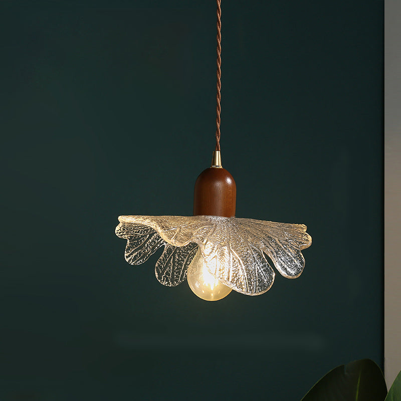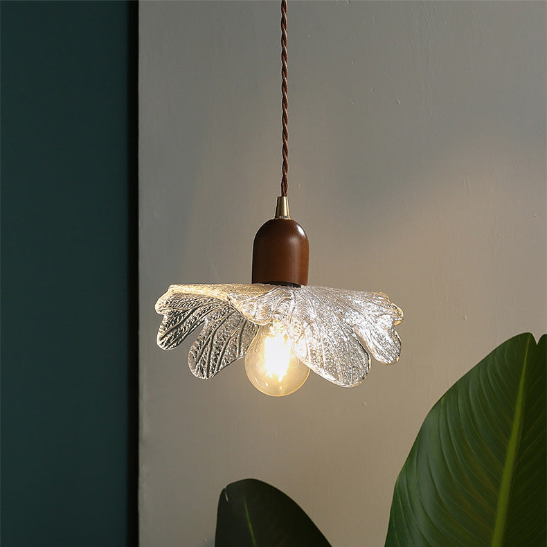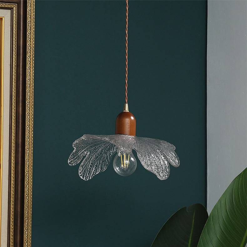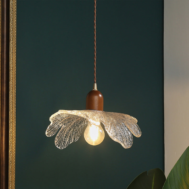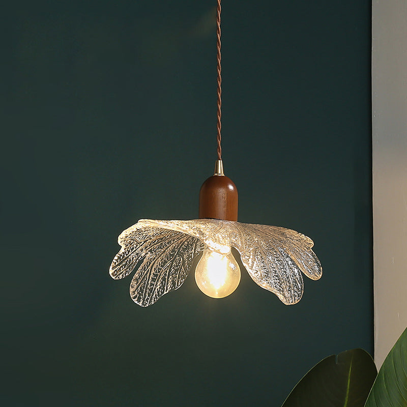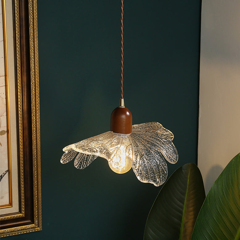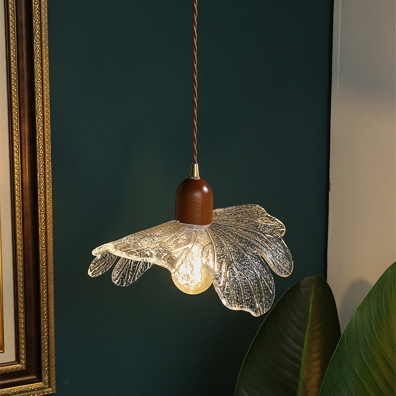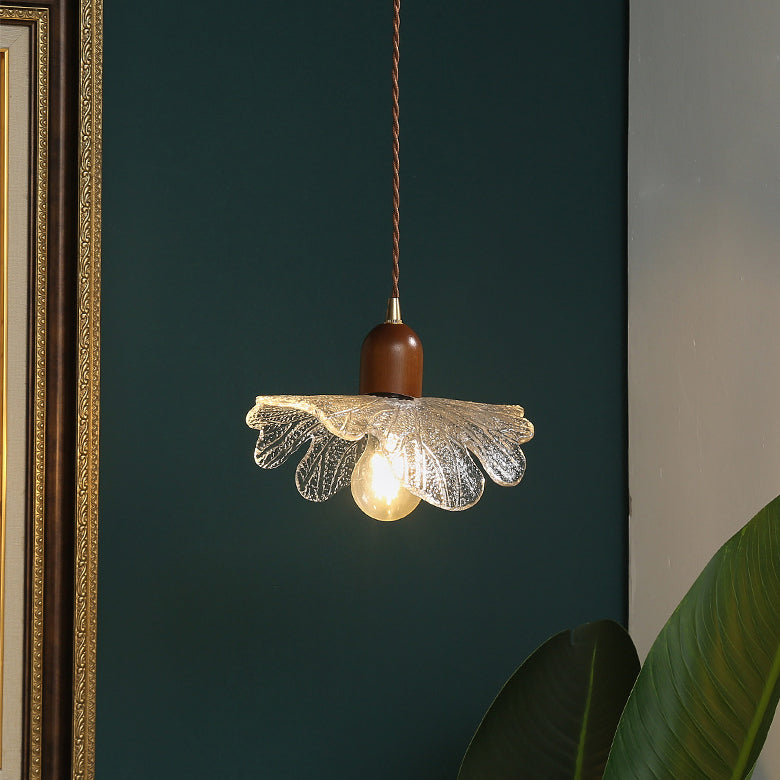 ダイニングルームに最適な、現代的なレトロウォールナット材と真鍮ガラスの花模様の1灯ペンダントライト
