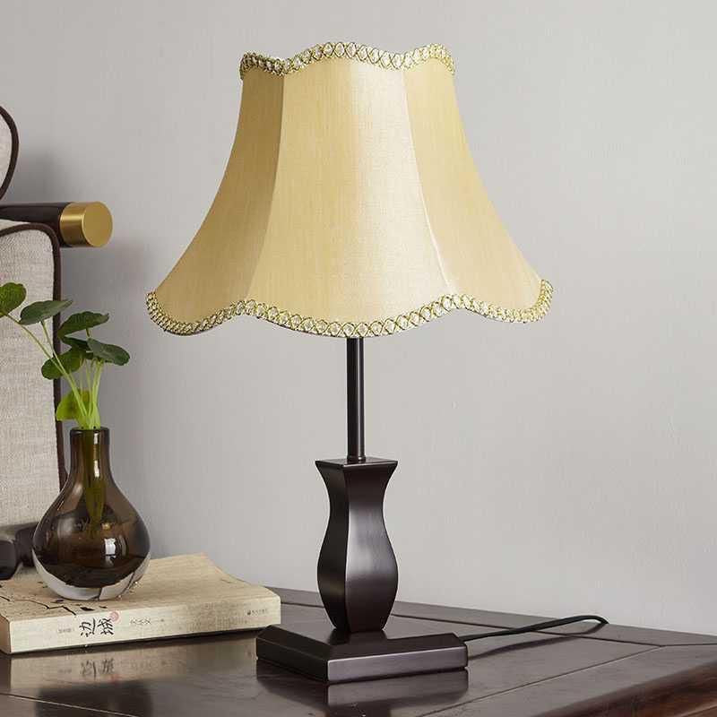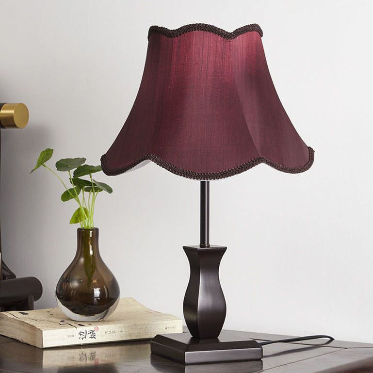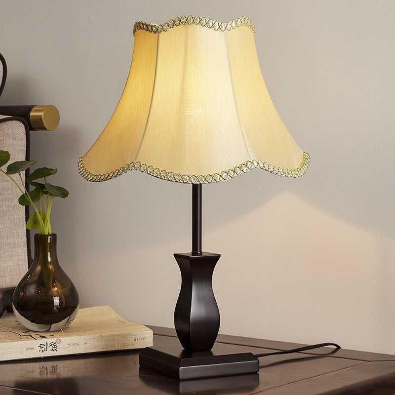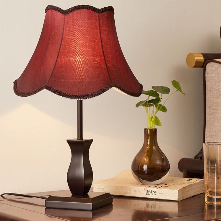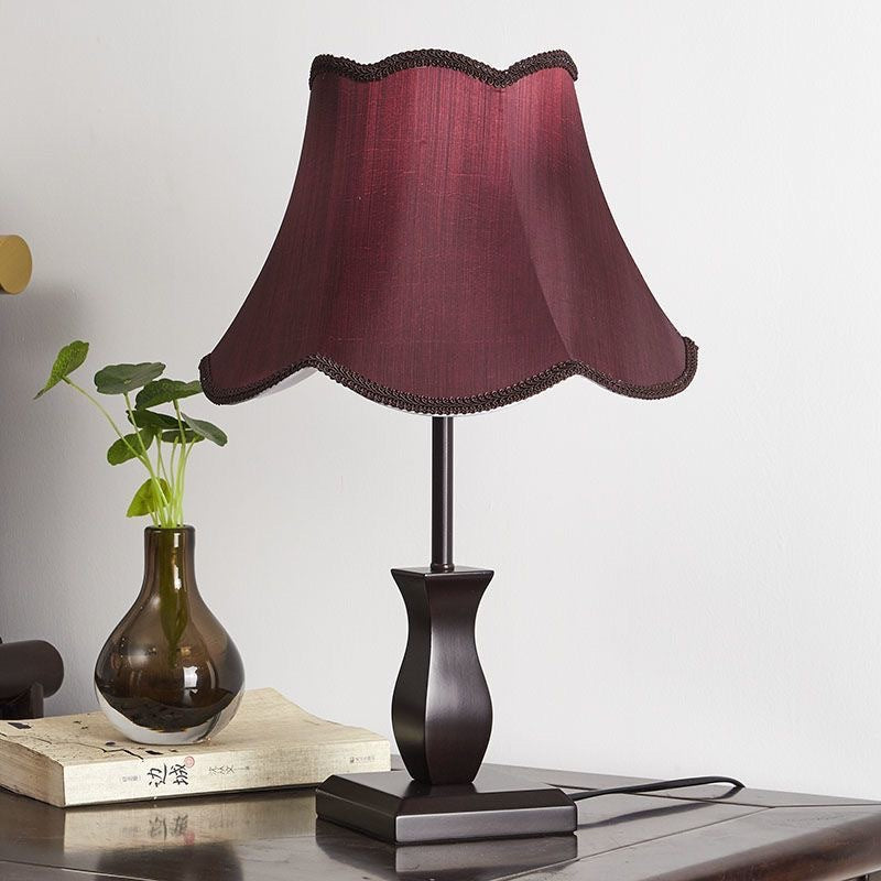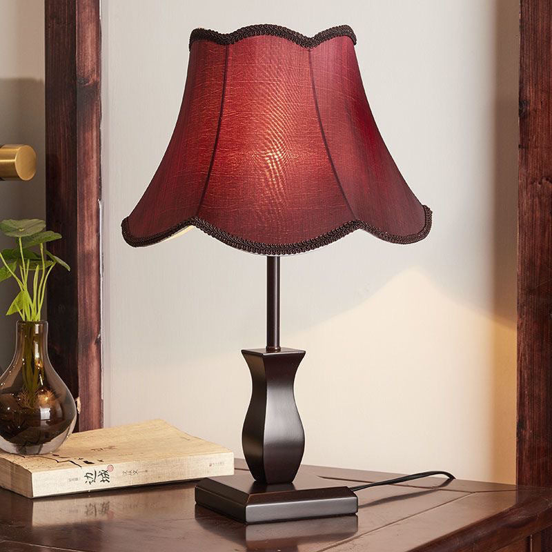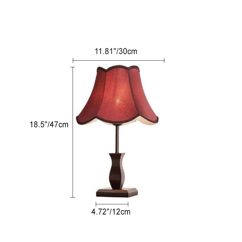 Contemporary Retro Wood Fabric Drum 1-Light Table Lamp For Bedside