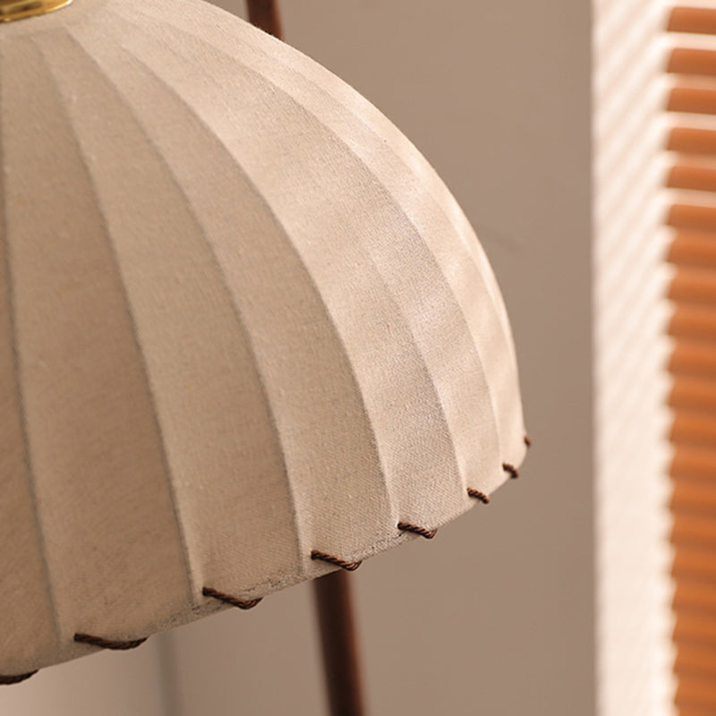 Contemporary Retro Wood Iron Fabric Dome Round Shelf 1-Light Standing Floor Lamp For Living Room