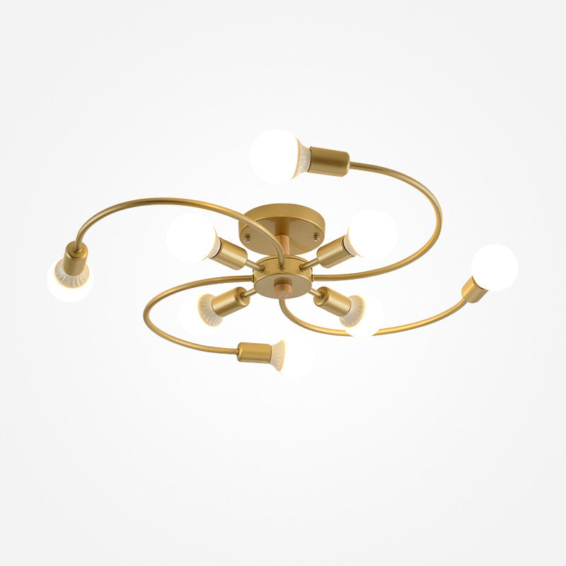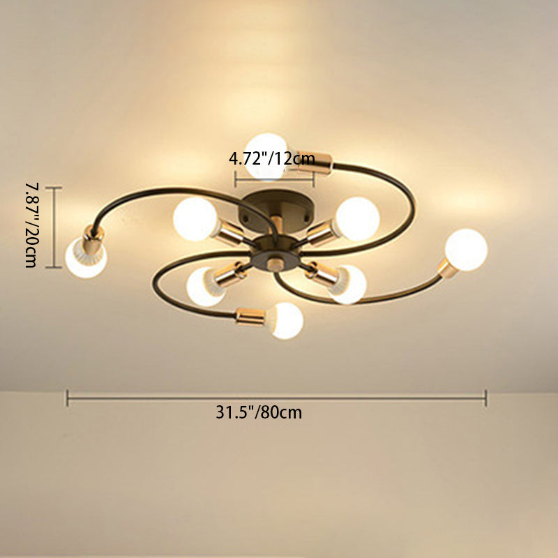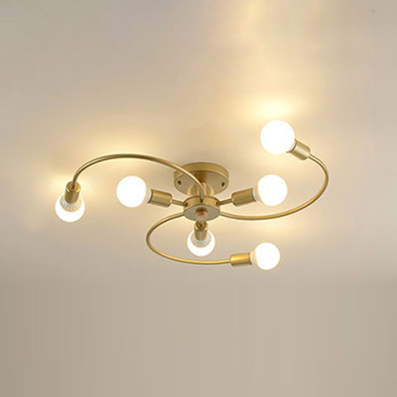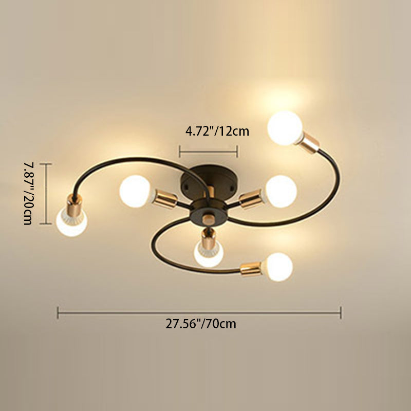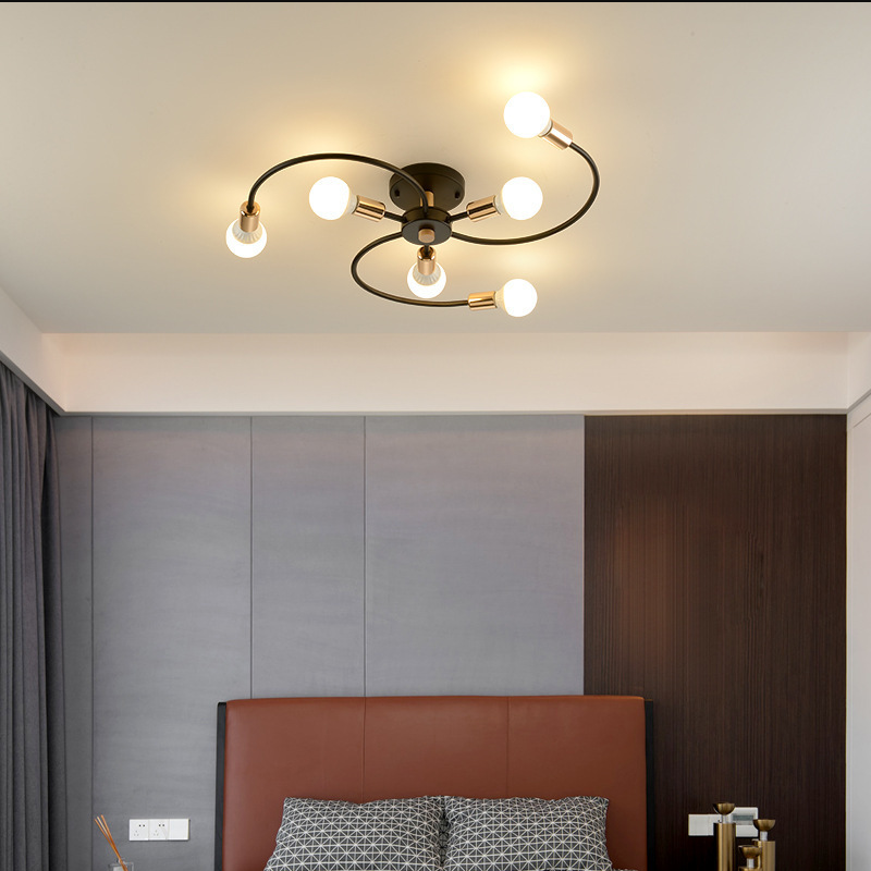 現代的なスカンジナビアのブランチベンドラウンドアイアン6/8ライトセミフラッシュマウントシーリングライト寝室用