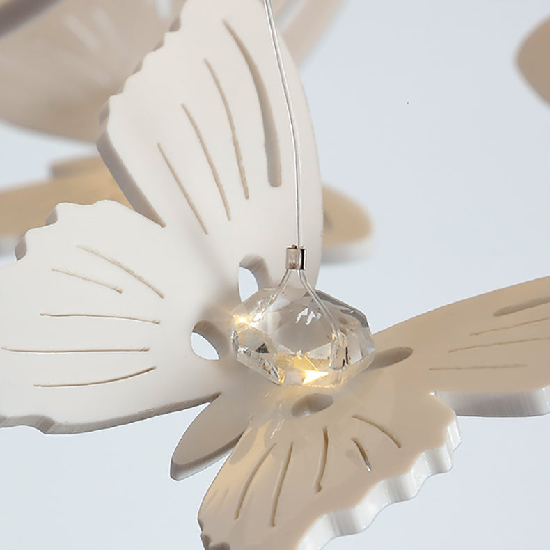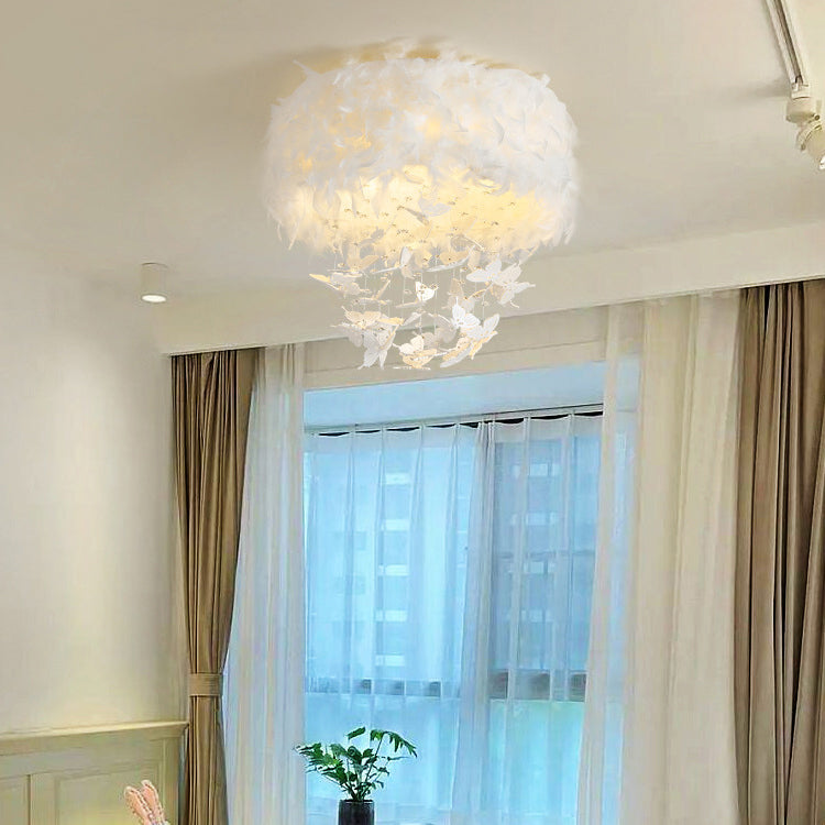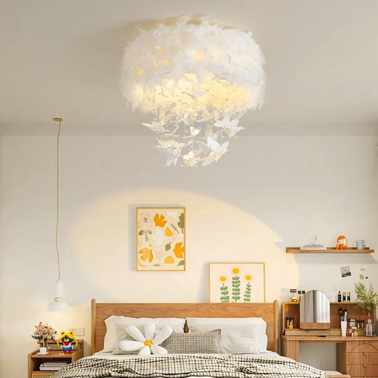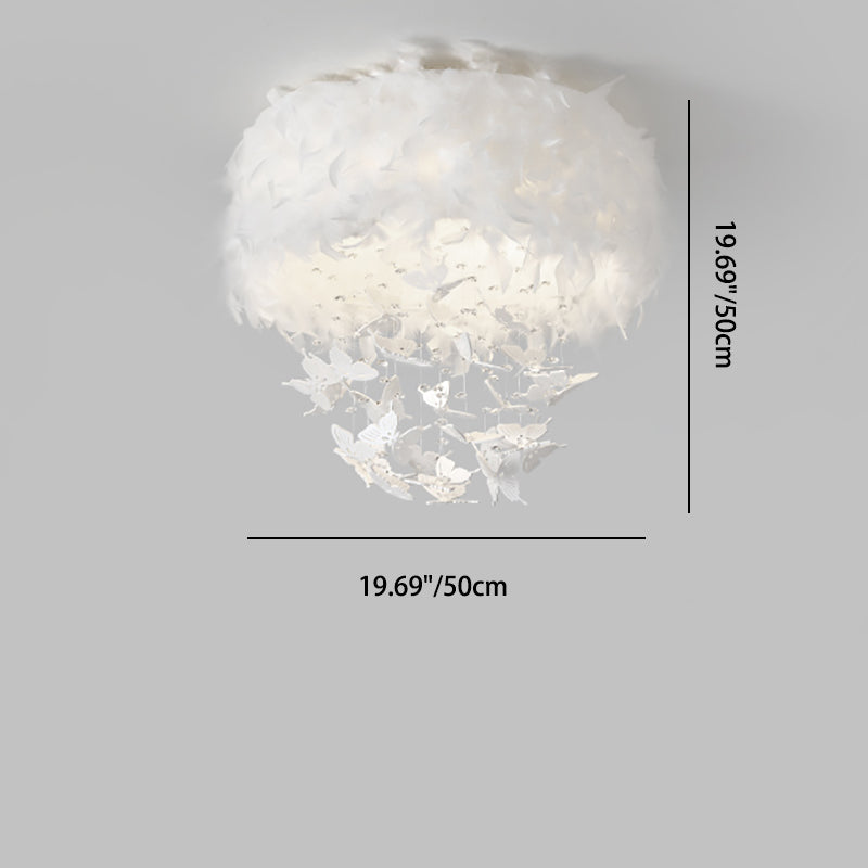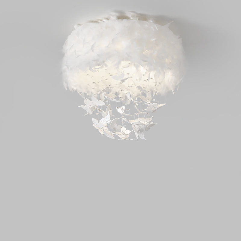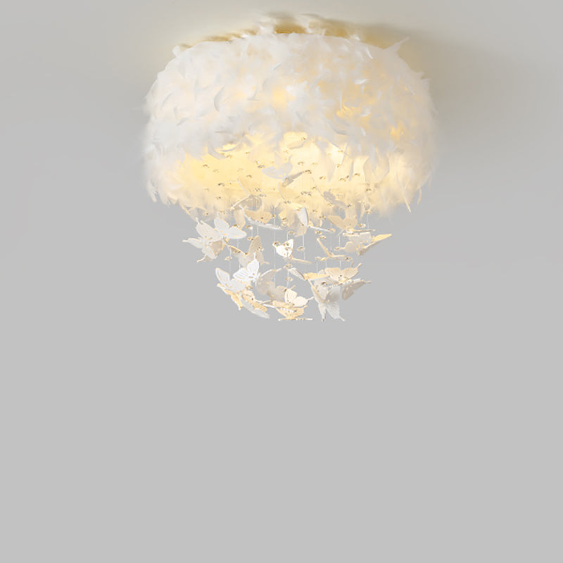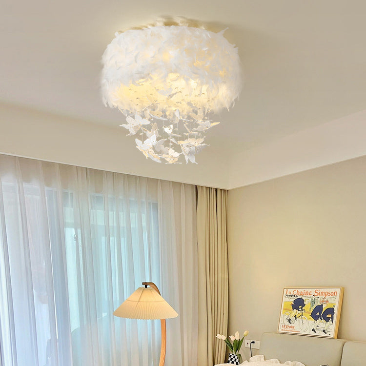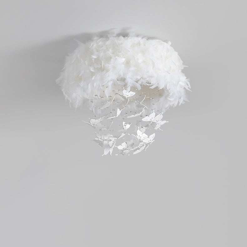 現代的なスカンジナビアの蝶の羽根、丸いクリスタルのトルコの羽根、鉄製のLEDフラッシュマウント天井照明、寝室用