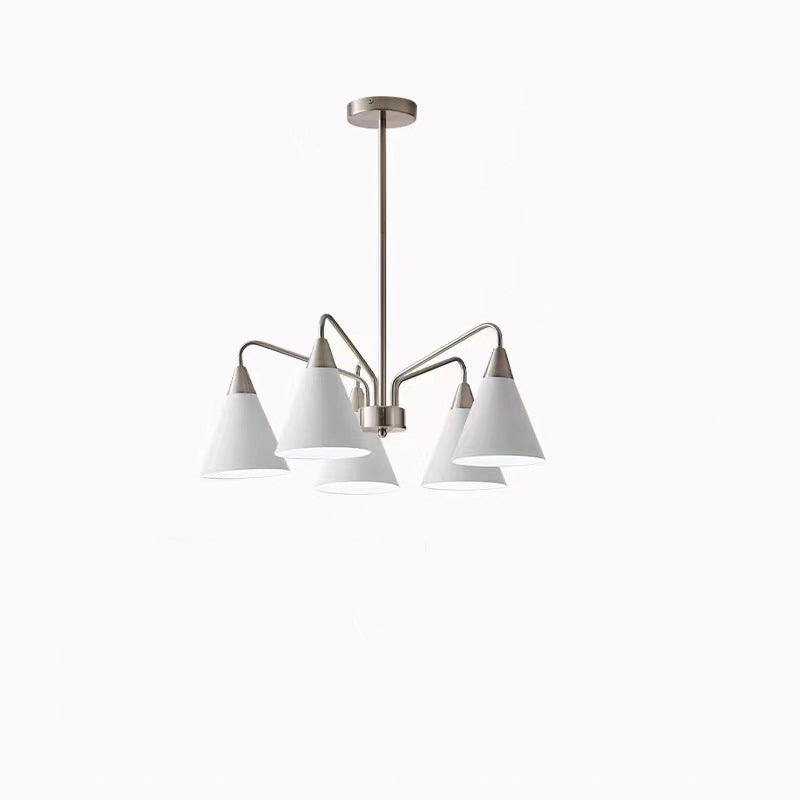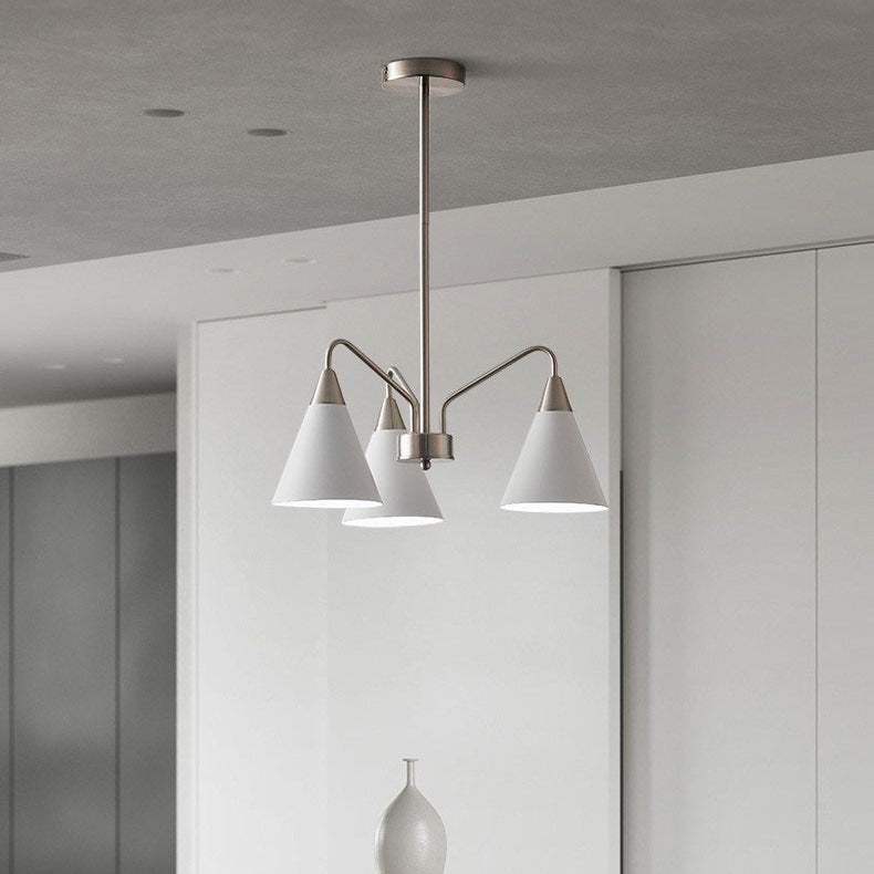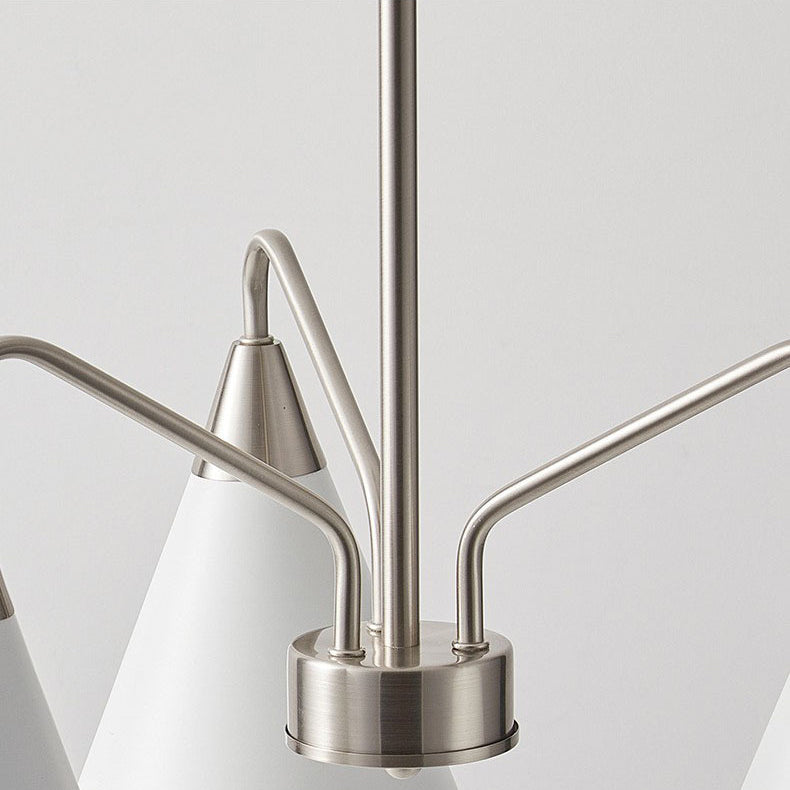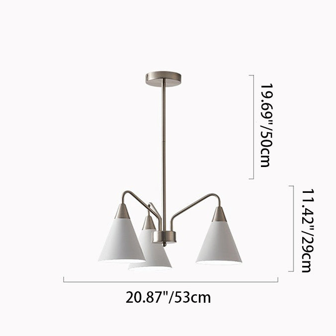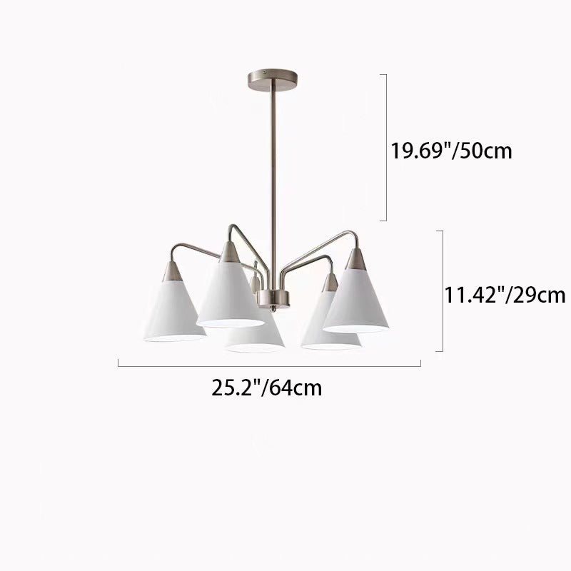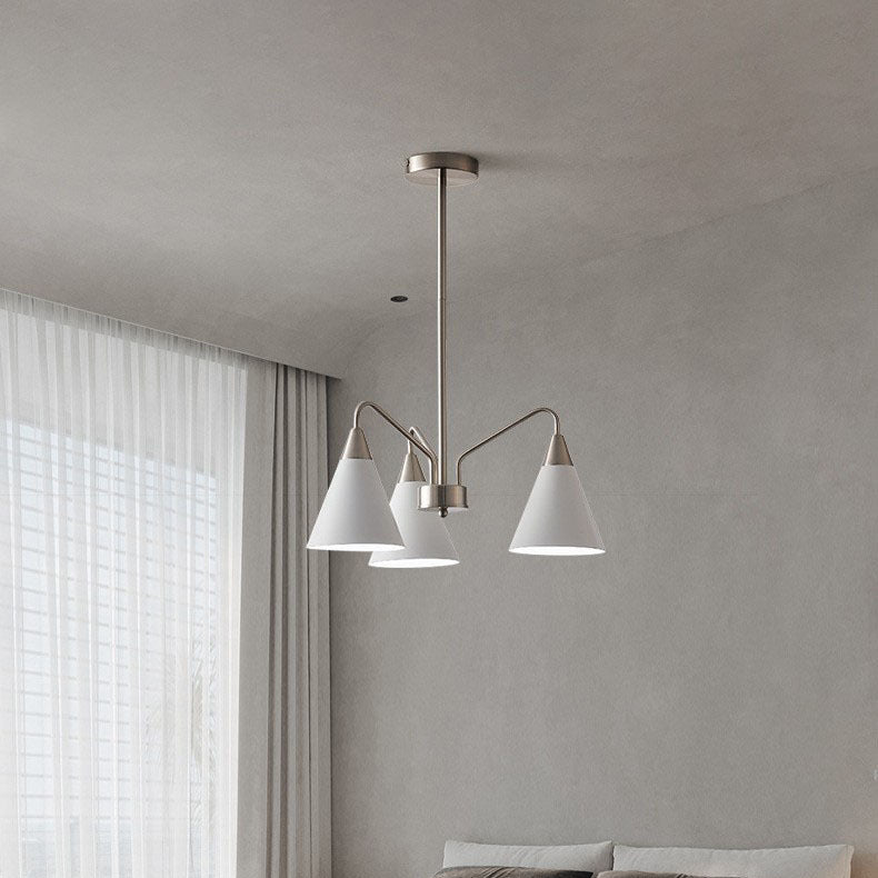 現代的なスカンジナビアの円錐形の丸い枝の湾曲した鉄製の3/5ライトシャンデリア、リビングルーム用