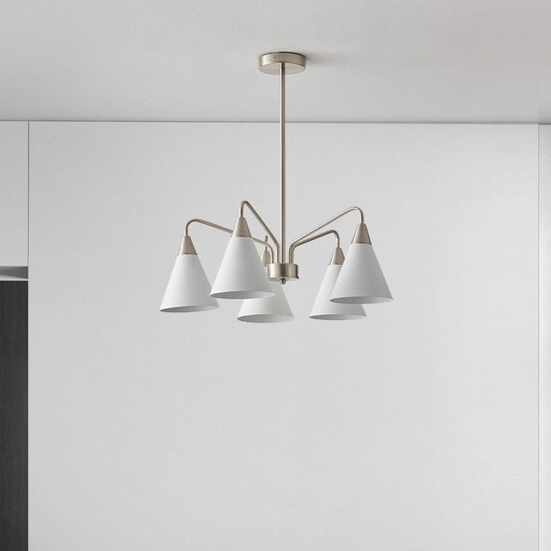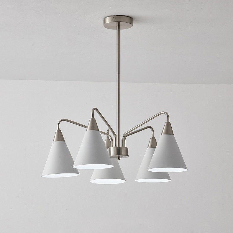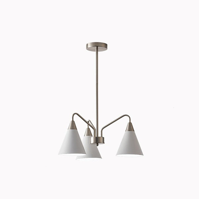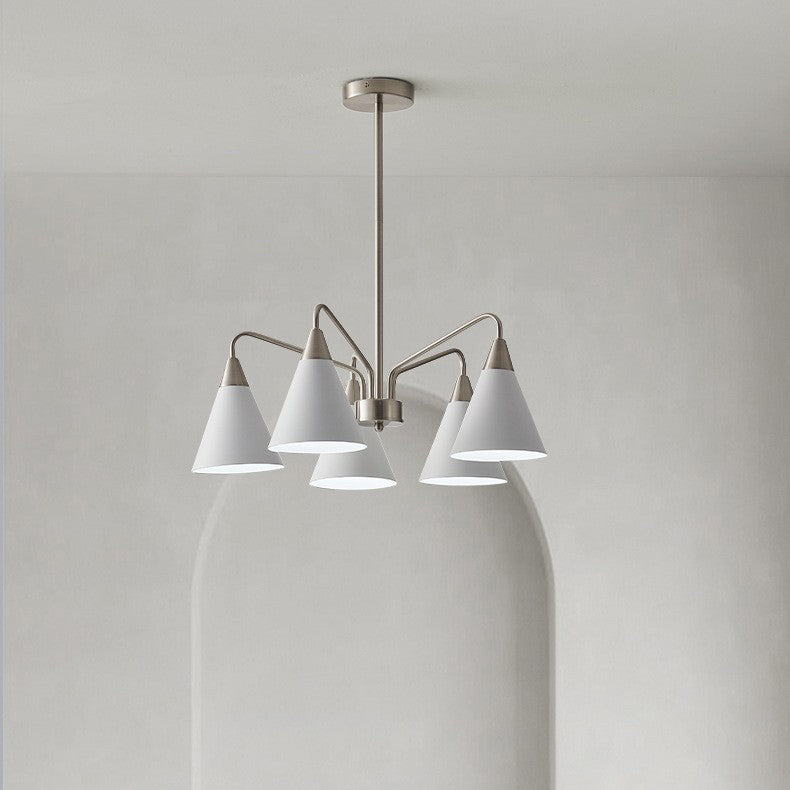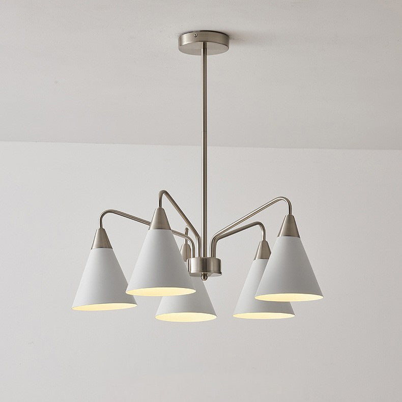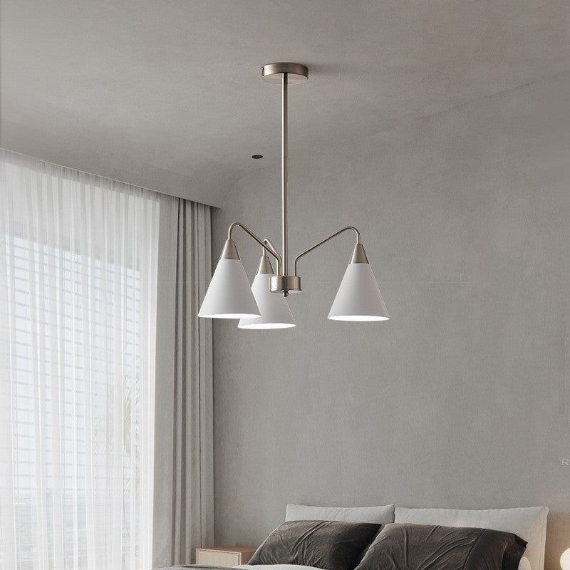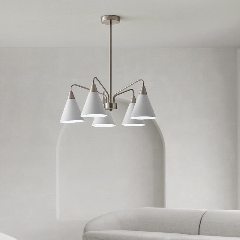 現代的なスカンジナビアの円錐形の丸い枝の湾曲した鉄製の3/5ライトシャンデリア、リビングルーム用