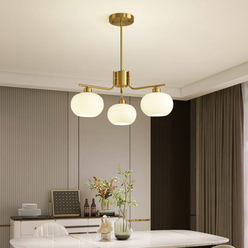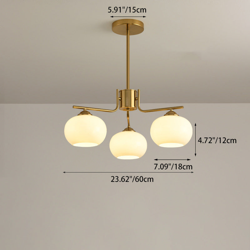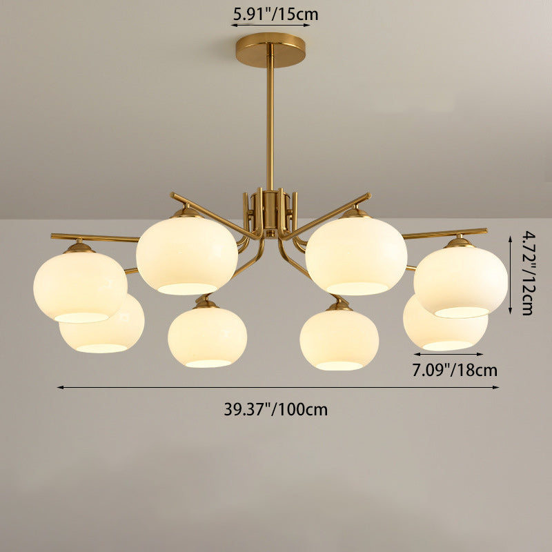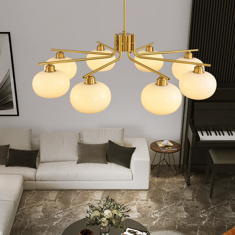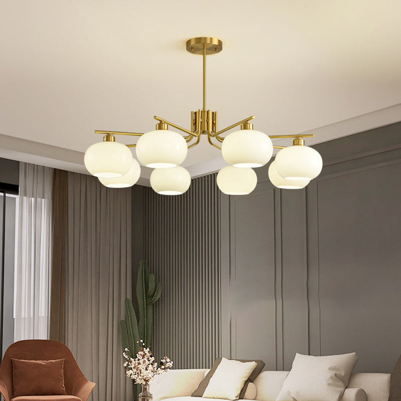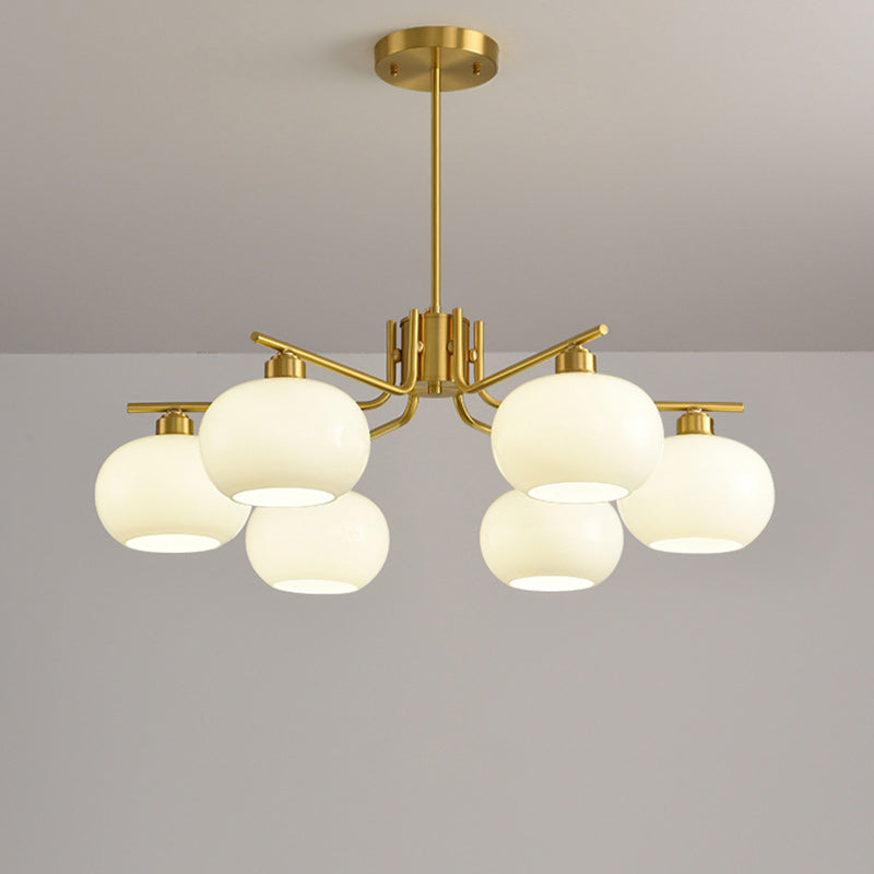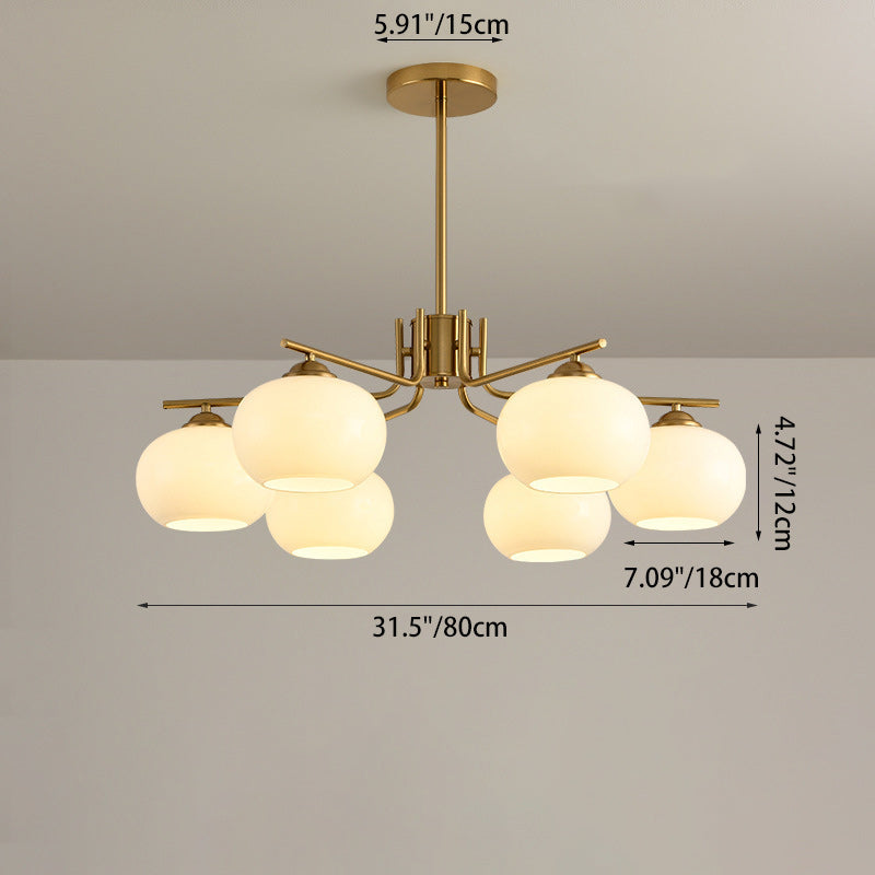 現代的なスカンジナビア風クリーム柿型ラウンド銅ガラス3/6/8ライトシャンデリアリビングルーム用