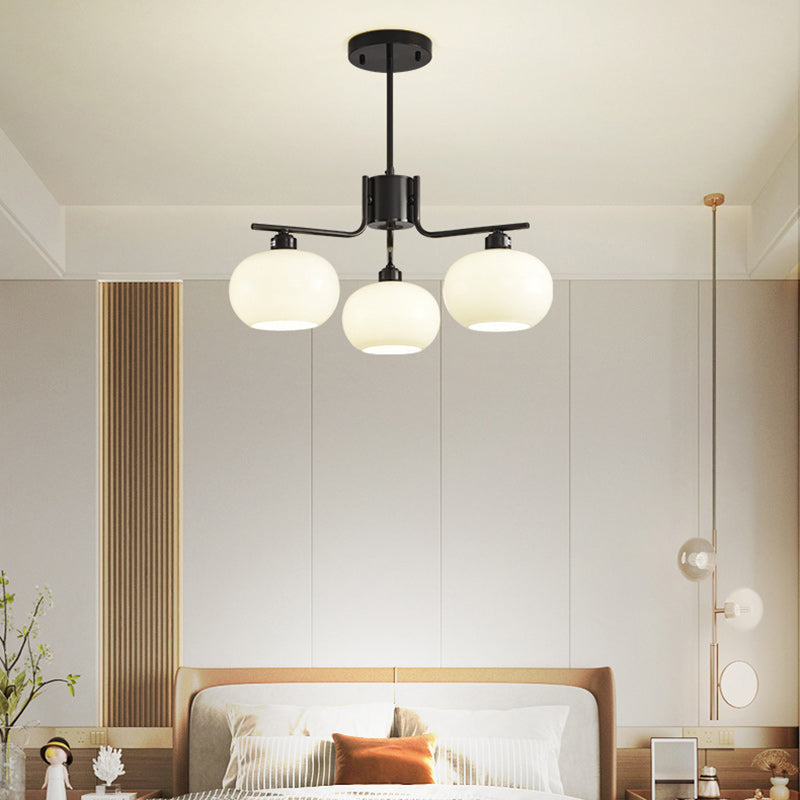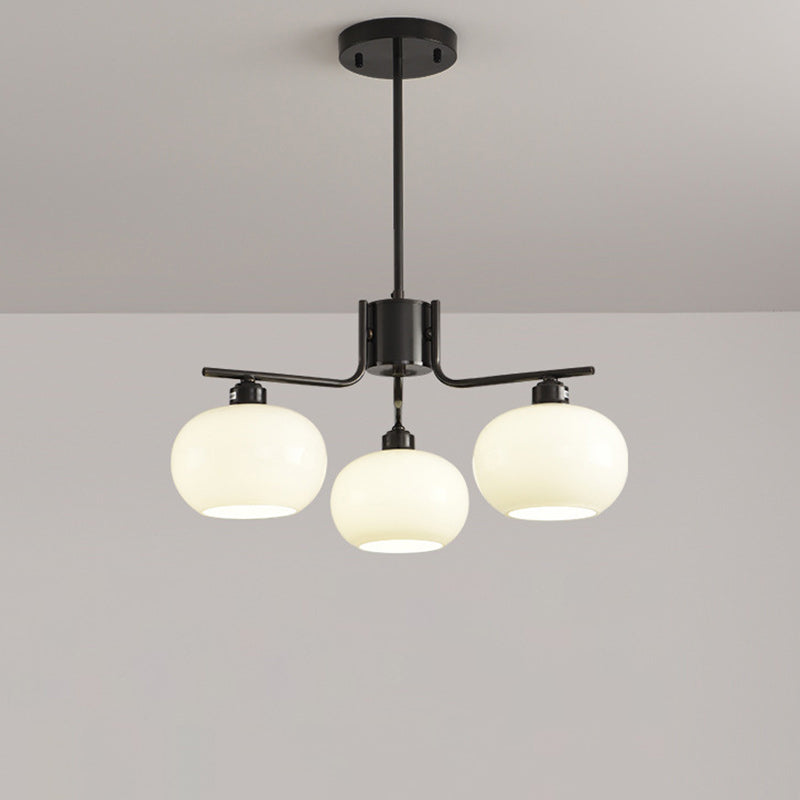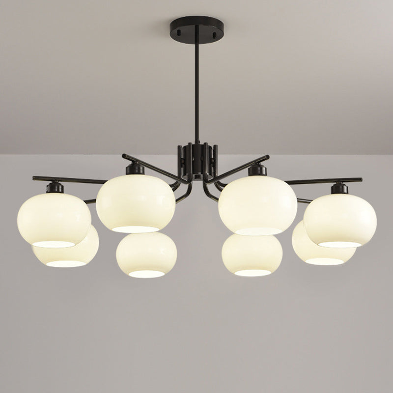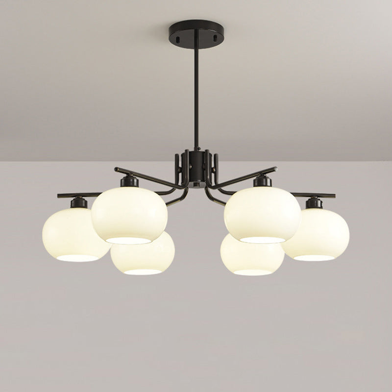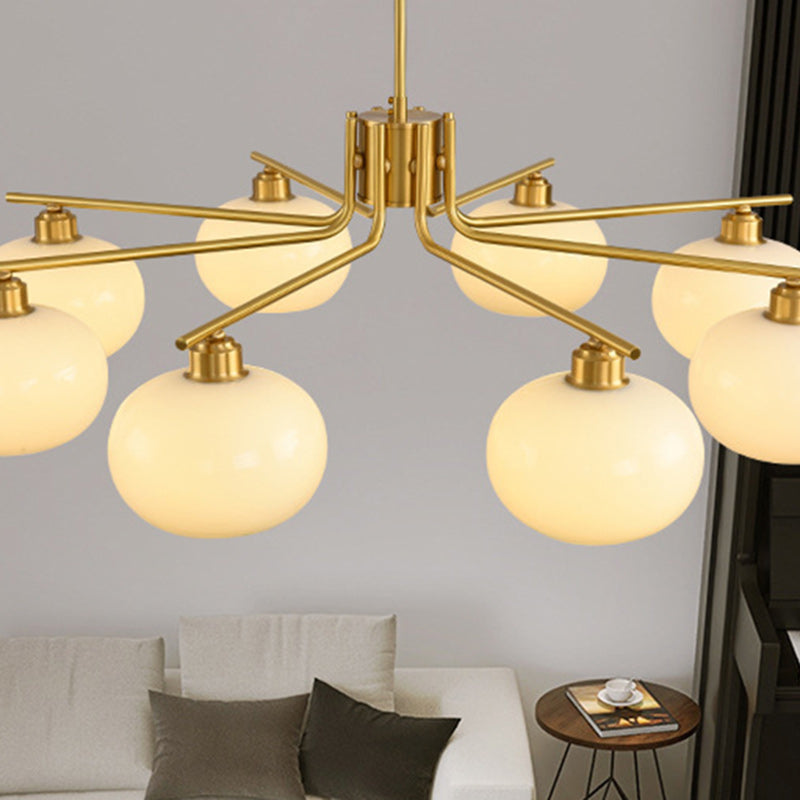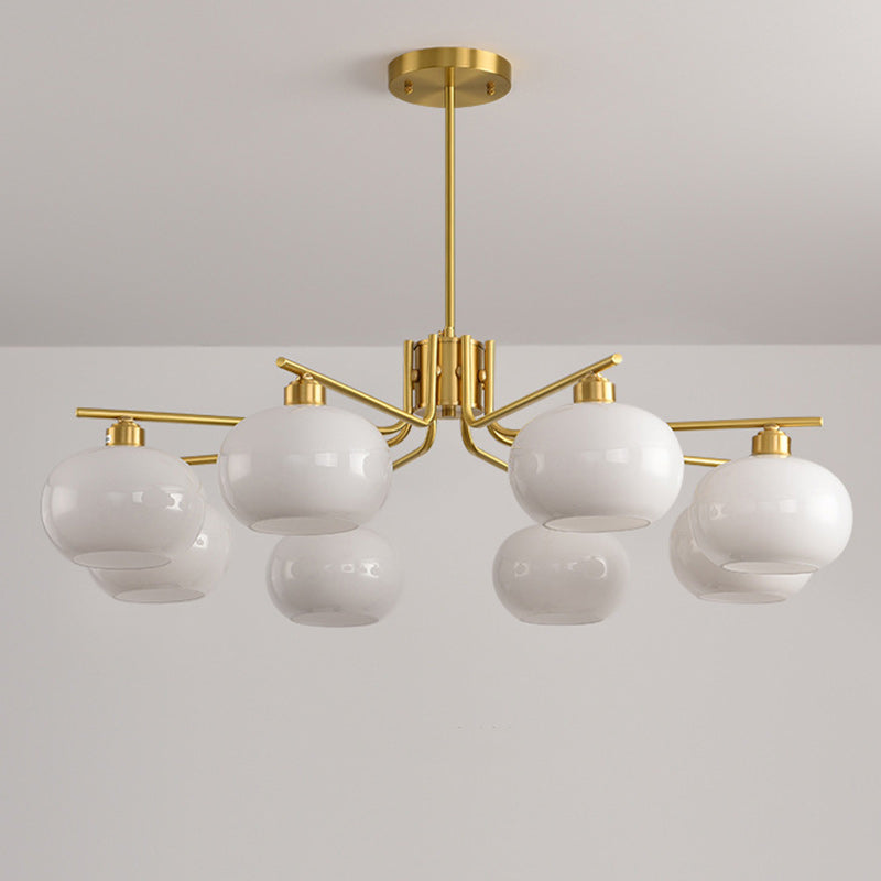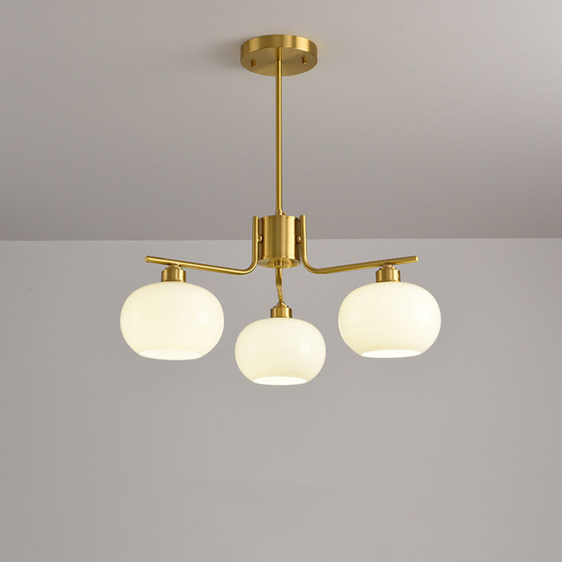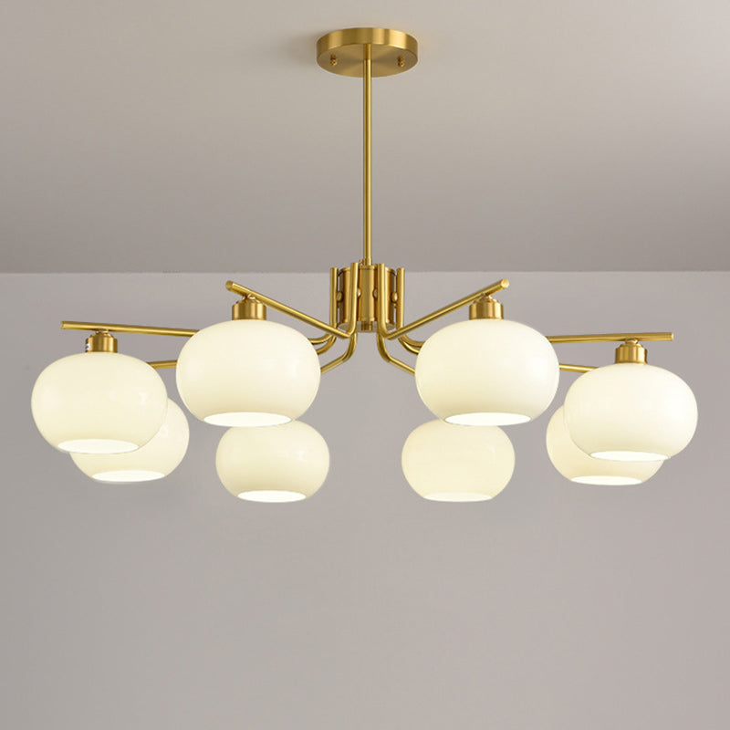 現代的なスカンジナビア風クリーム柿型ラウンド銅ガラス3/6/8ライトシャンデリアリビングルーム用