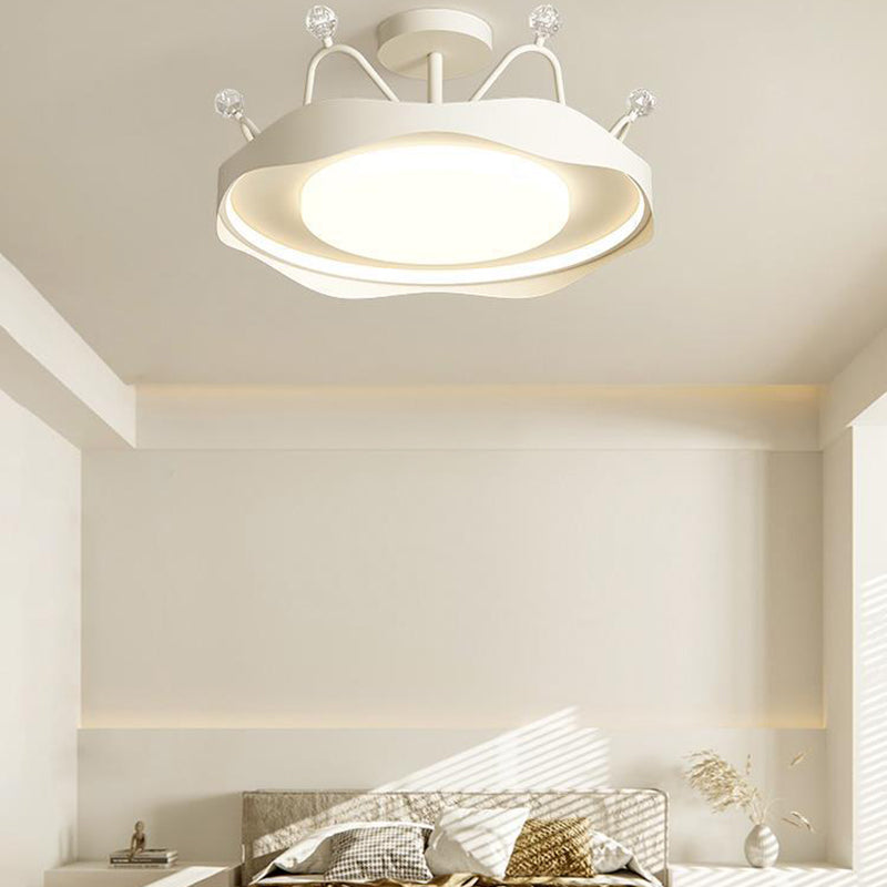 寝室用コンテンポラリースカンジナビアクラウンラウンドハードウェアアクリルセミフラッシュマウントシーリングライト