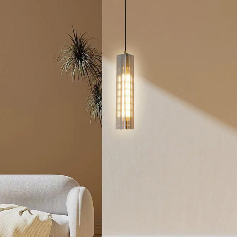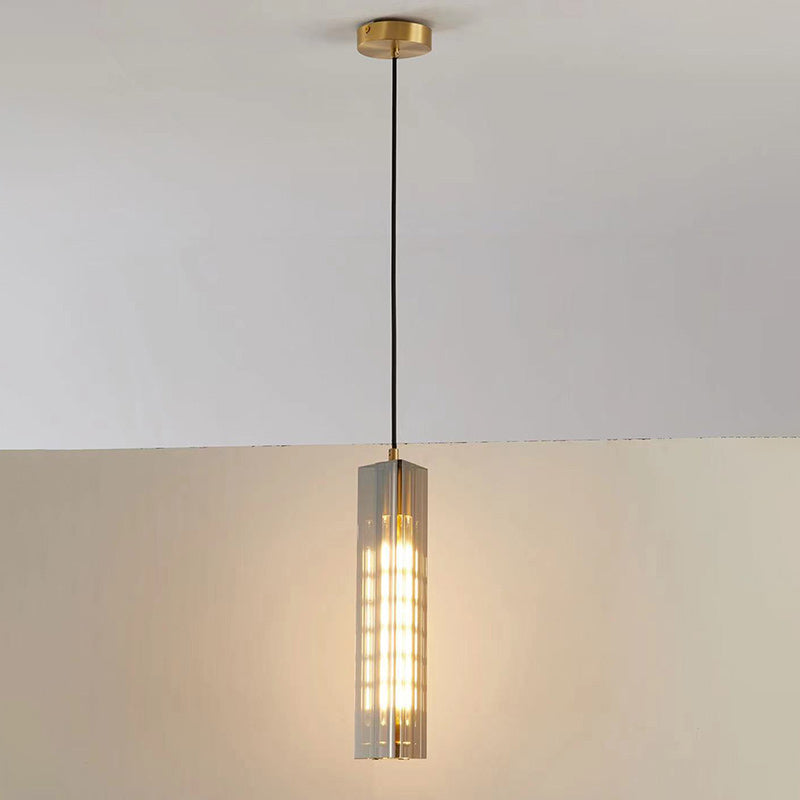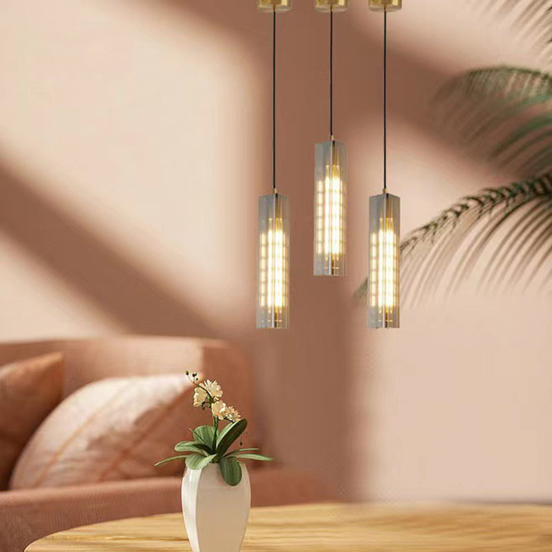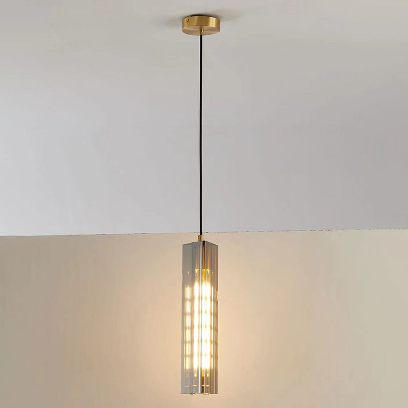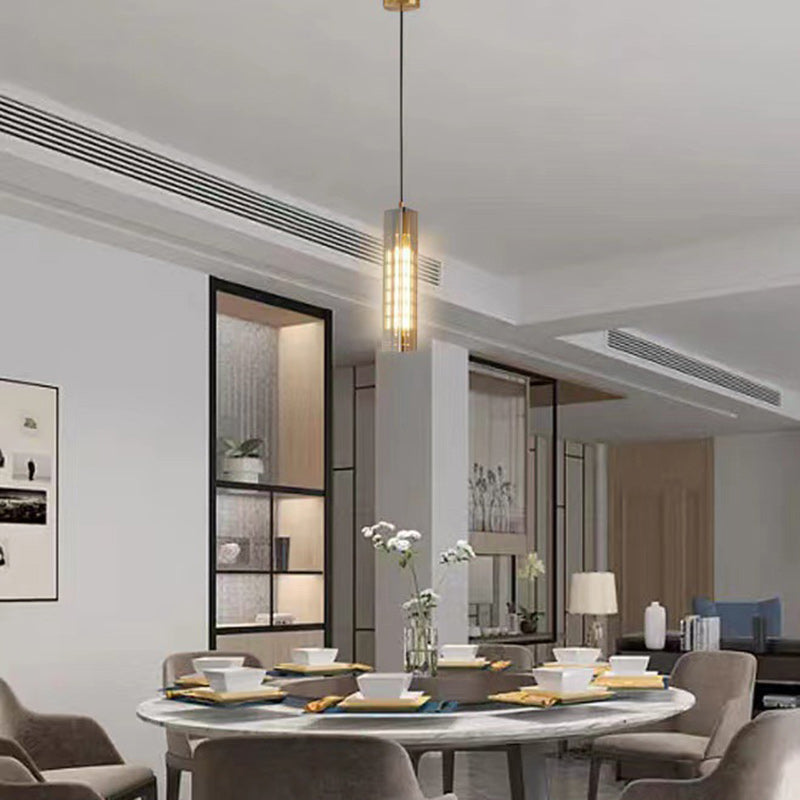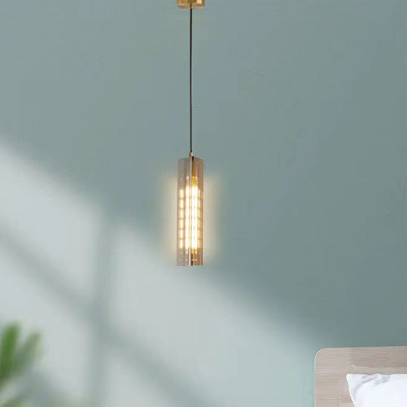 現代的なスカンジナビアの直方体銅クリスタルランプシェード1灯 - ダイニングルーム用ペンダントライト