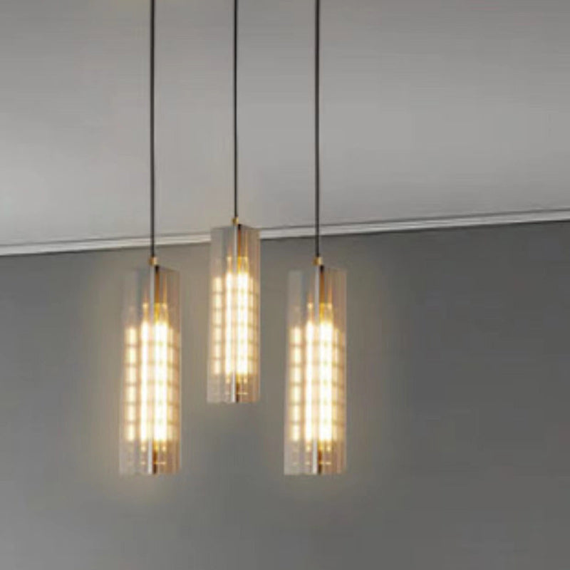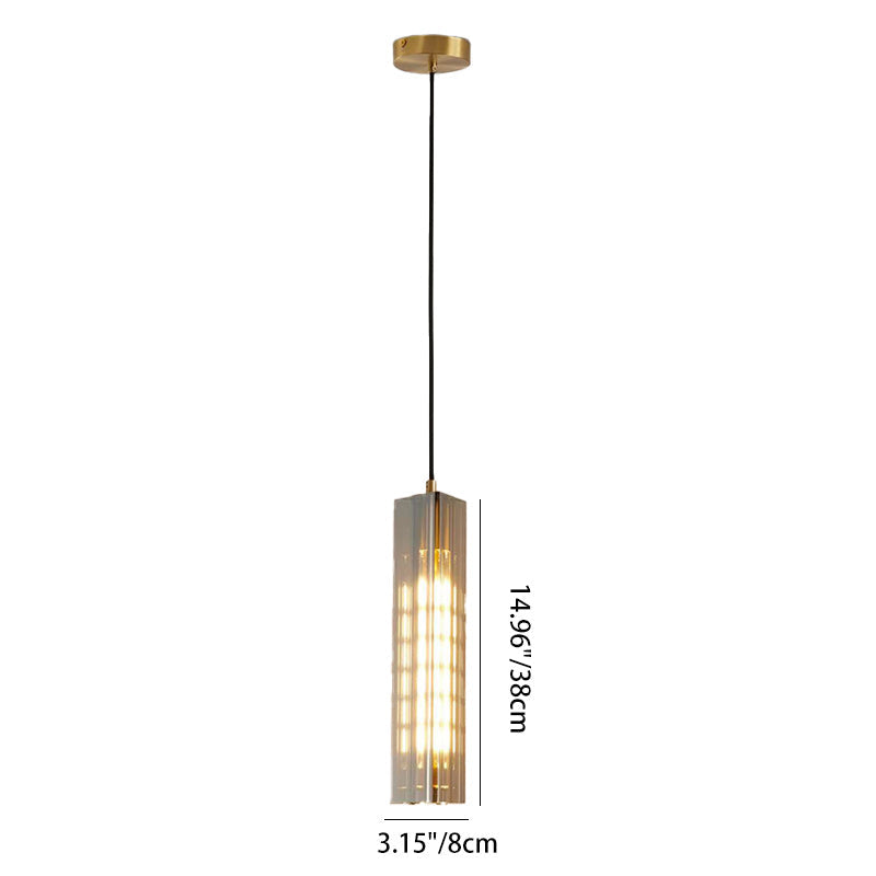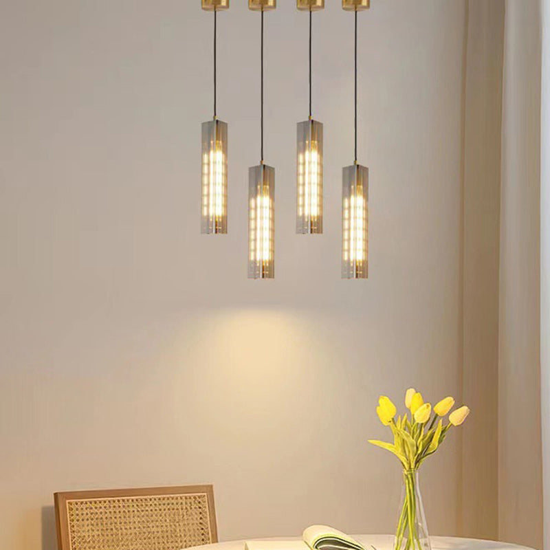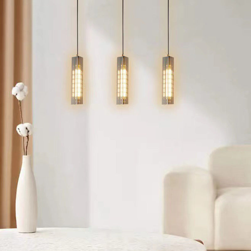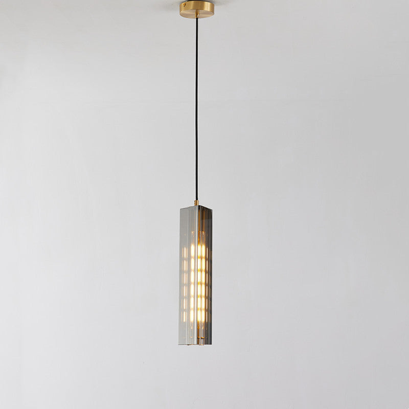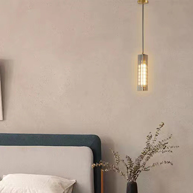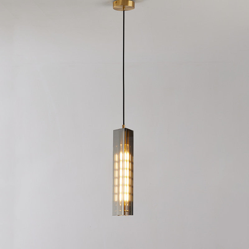 現代的なスカンジナビアの直方体銅クリスタルランプシェード1灯 - ダイニングルーム用ペンダントライト