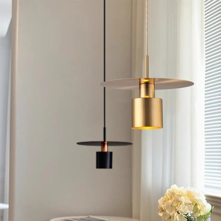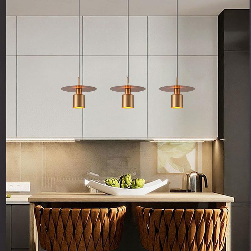 現代的なスカンジナビアシリンダーディスクディッシュアイアン1ライトペンダントライトリビングルーム用