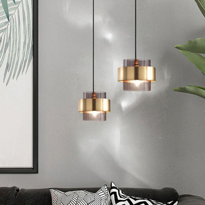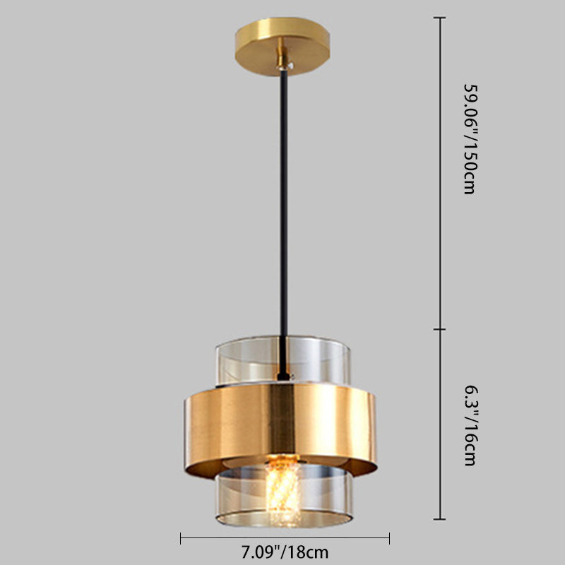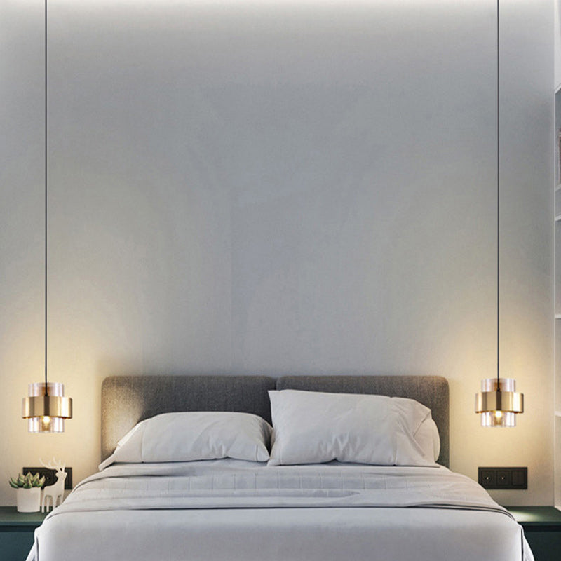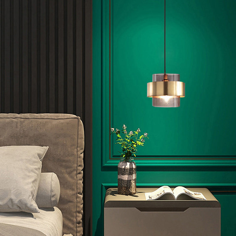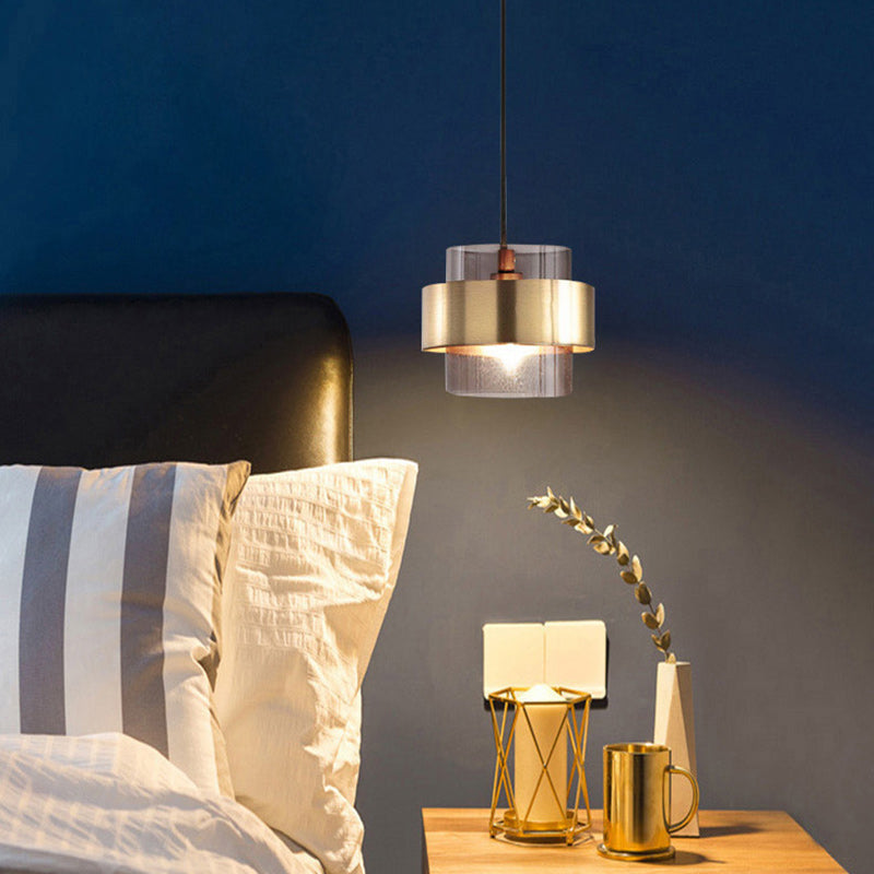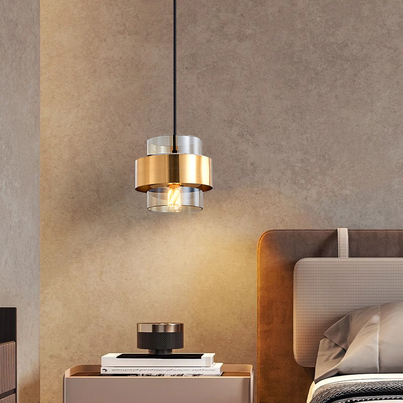寝室用 北欧風シリンダー型アイアンガラスペンダントライト 1灯