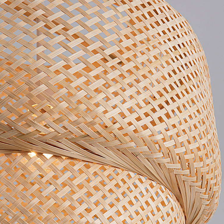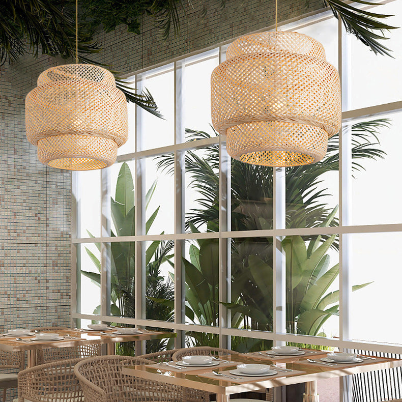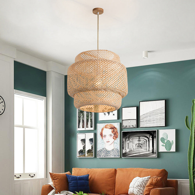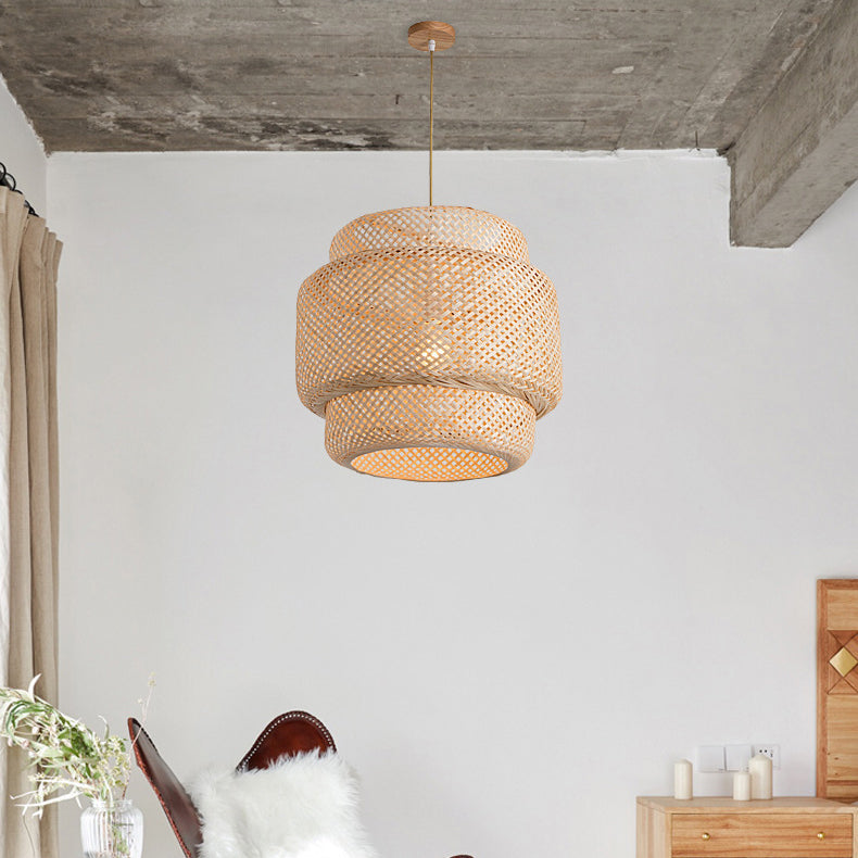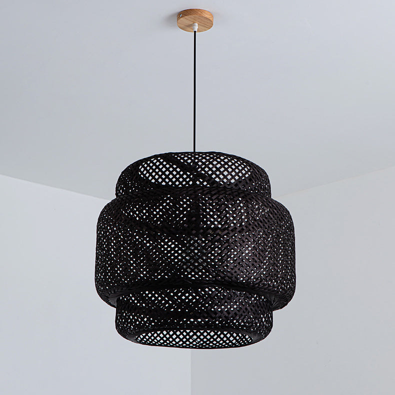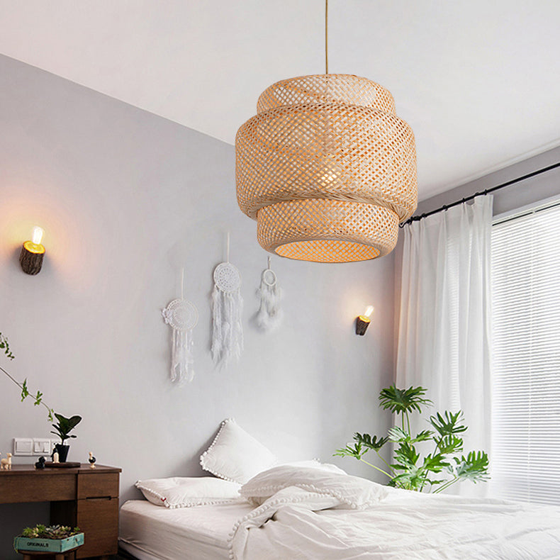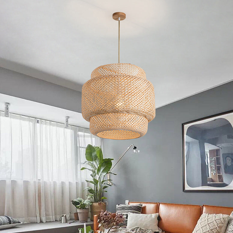 現代的なスカンジナビアシリンダー網目模様の竹製1灯ペンダントライト(リビングルーム用)