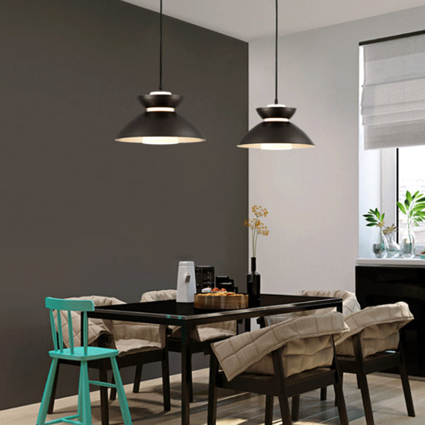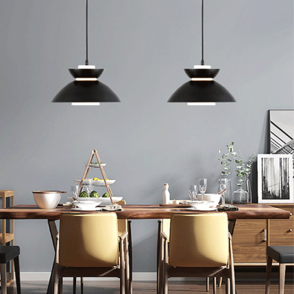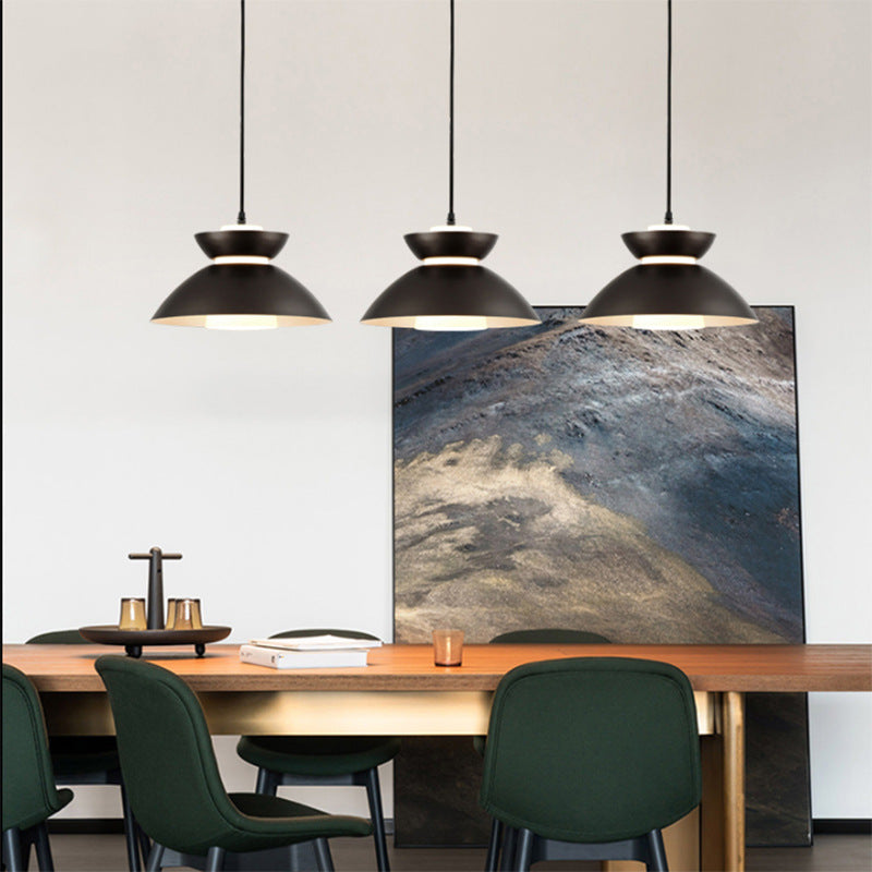 現代的なスカンジナビア風ディスクガラスアイアン1灯ペンダントライト(ダイニングルーム用)