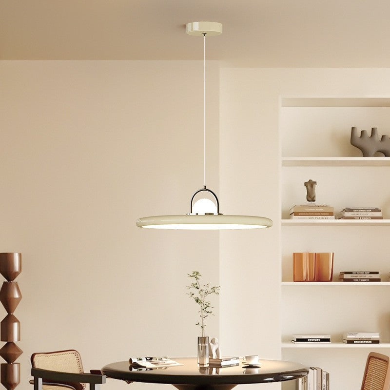 現代的なスカンジナビアドームラウンドディスクアイアンPEランプシェードLEDペンダントライトダイニングルーム用