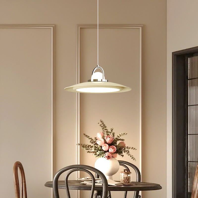 現代的なスカンジナビアドームUFO型アイアンPEランプシェードLEDペンダントライトダイニングルーム用