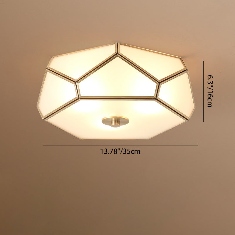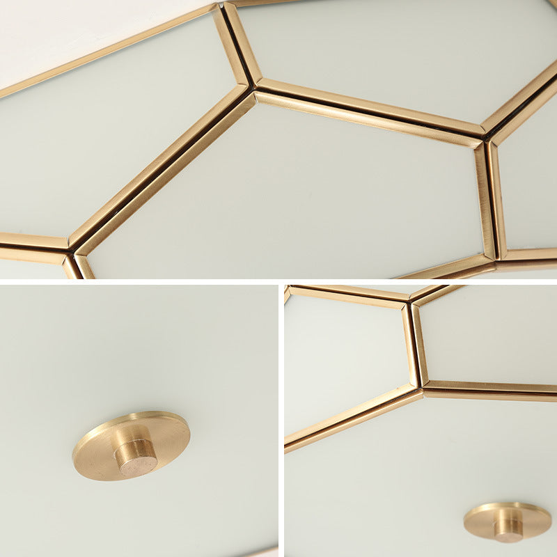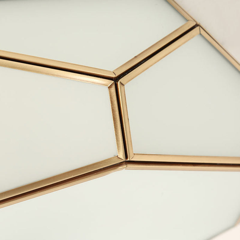 現代的なスカンジナビア六角形不規則多角形ガラス銅3/4ライトフラッシュマウント天井ライトリビングルーム用
