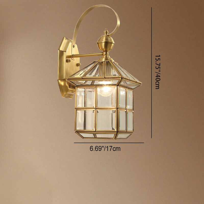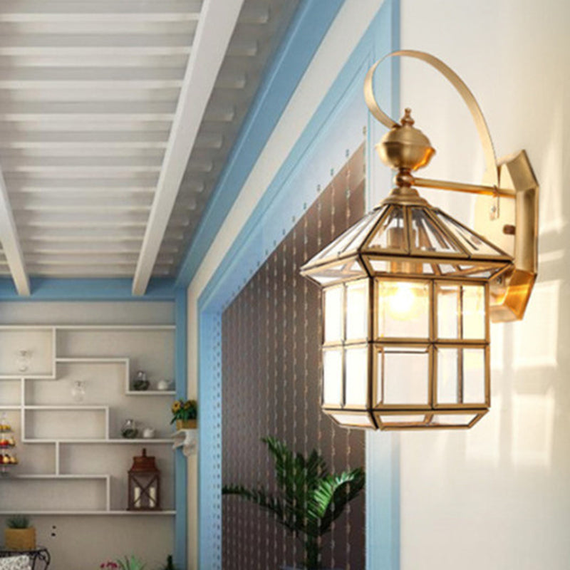現代的なスカンジナビアハウススクエアガラス銅1ライト壁取り付け用燭台ランプ屋外パティオ用