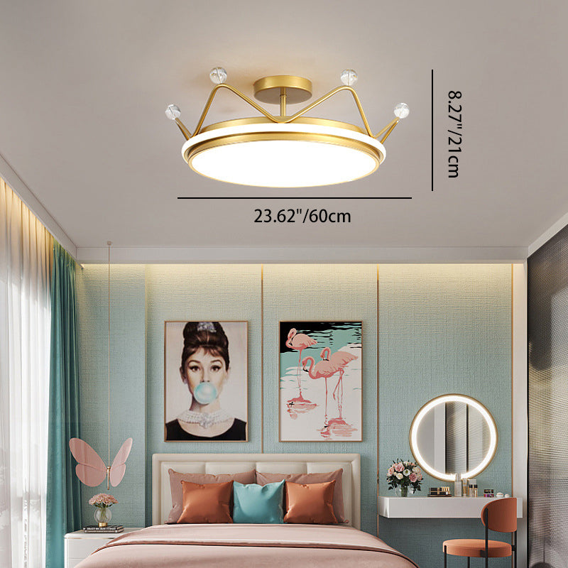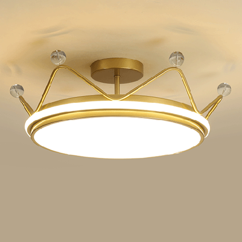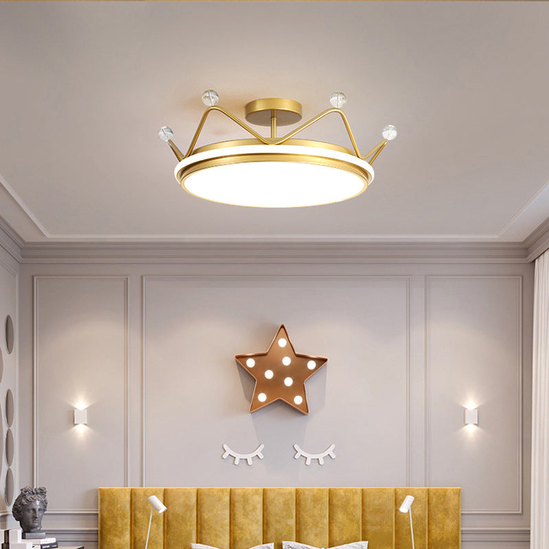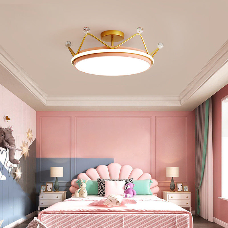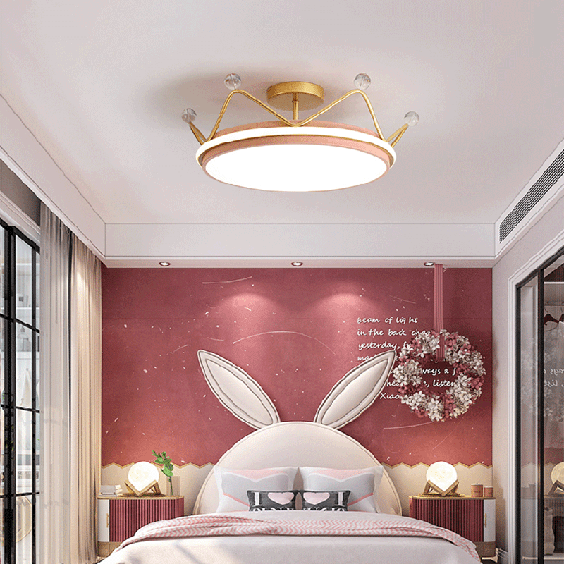 現代的なスカンジナビア風子供用ラウンドクラウンアイアンアクリルLEDセミフラッシュマウントシーリングライト寝室用