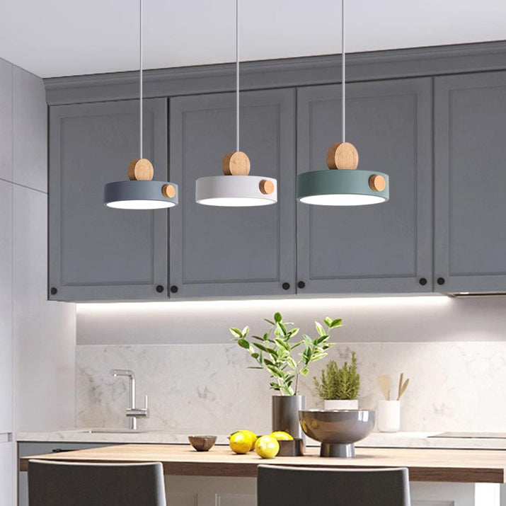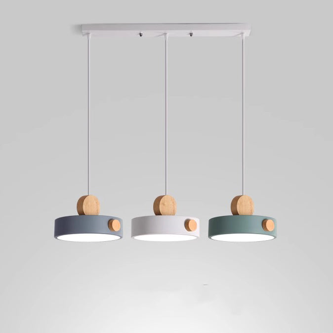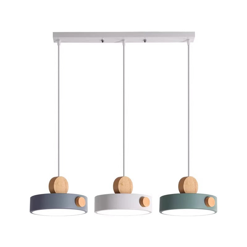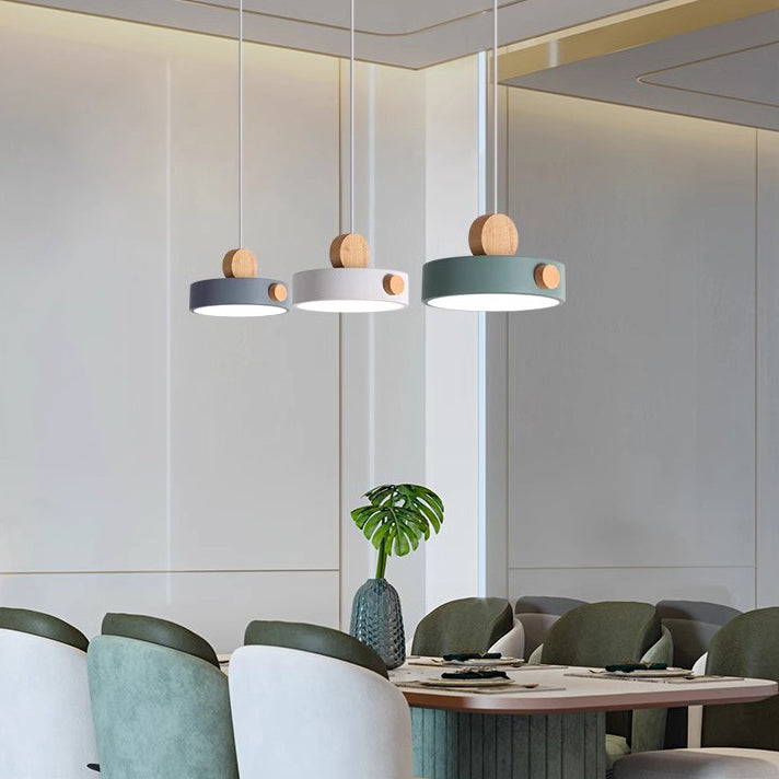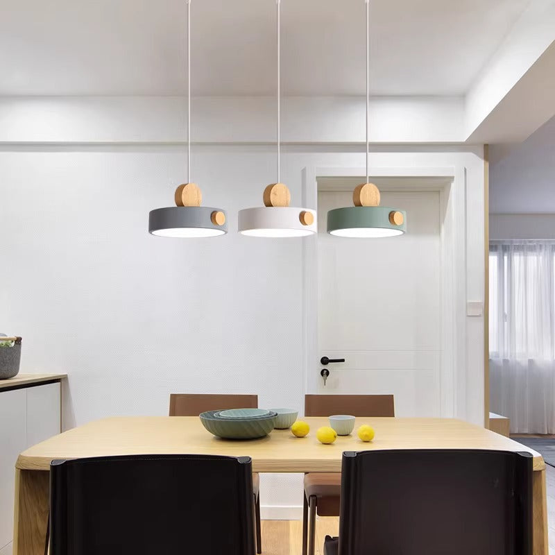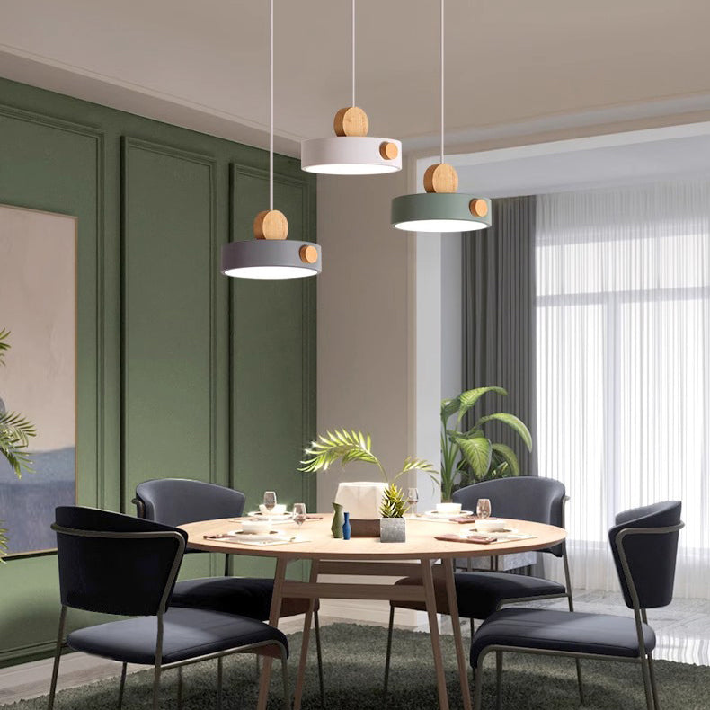 ダイニングルームに最適な、現代的なスカンジナビア風メタルラバーウッドアクリルラウンドLEDペンダントライト