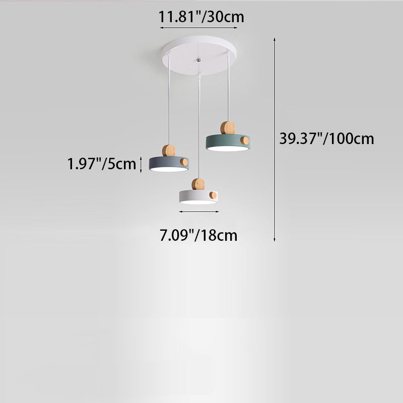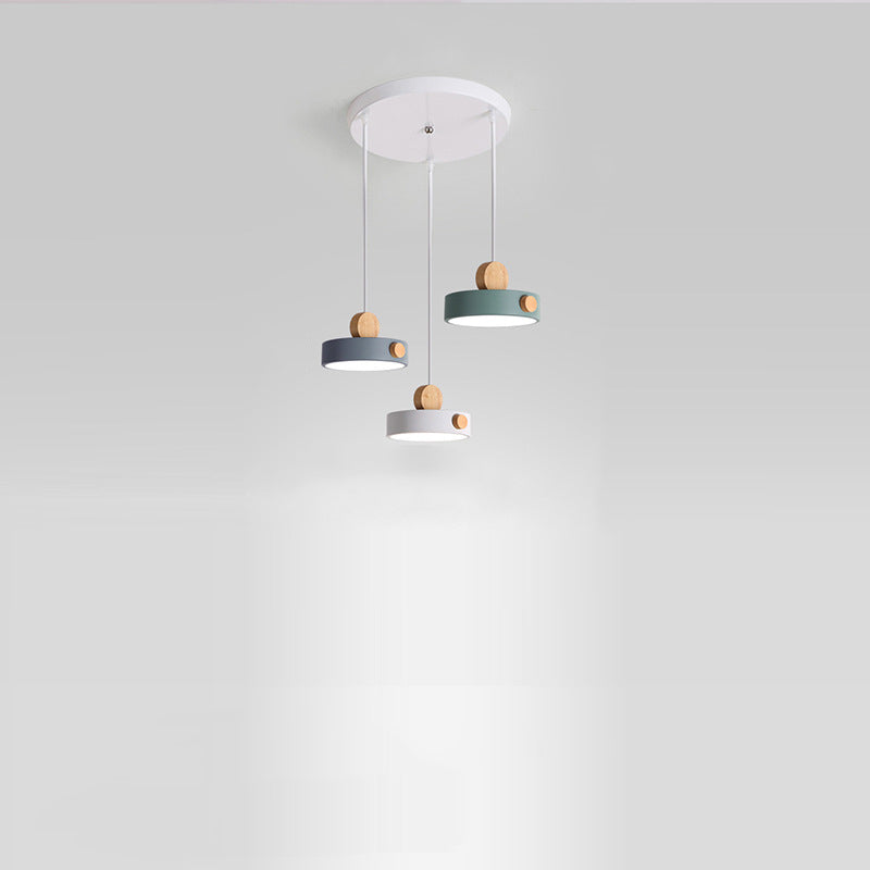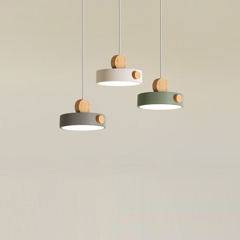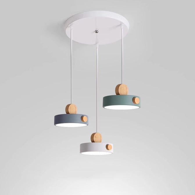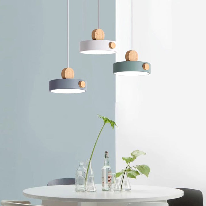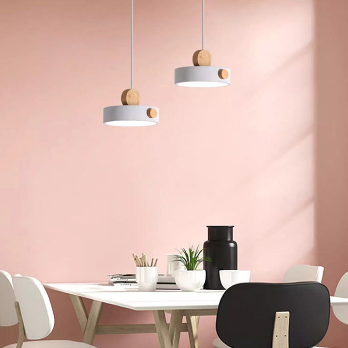 ダイニングルームに最適な、現代的なスカンジナビア風メタルラバーウッドアクリルラウンドLEDペンダントライト