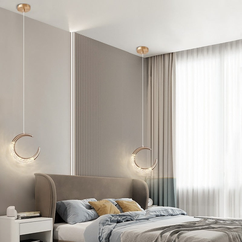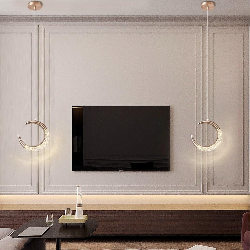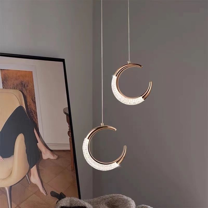 現代的なスカンジナビア風ムーンアークアルミハードウェアアクリルLEDペンダントライト寝室用
