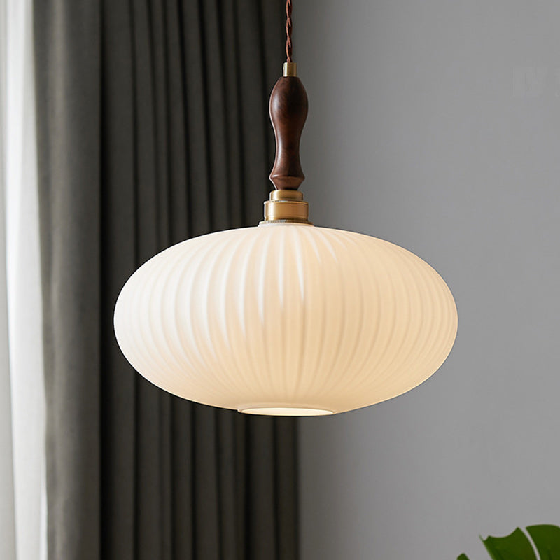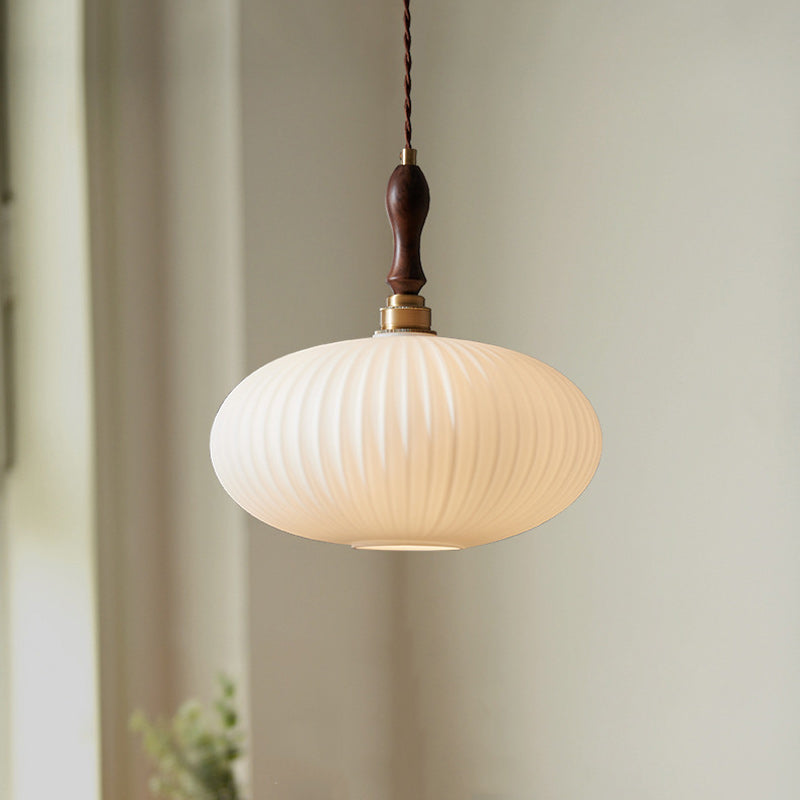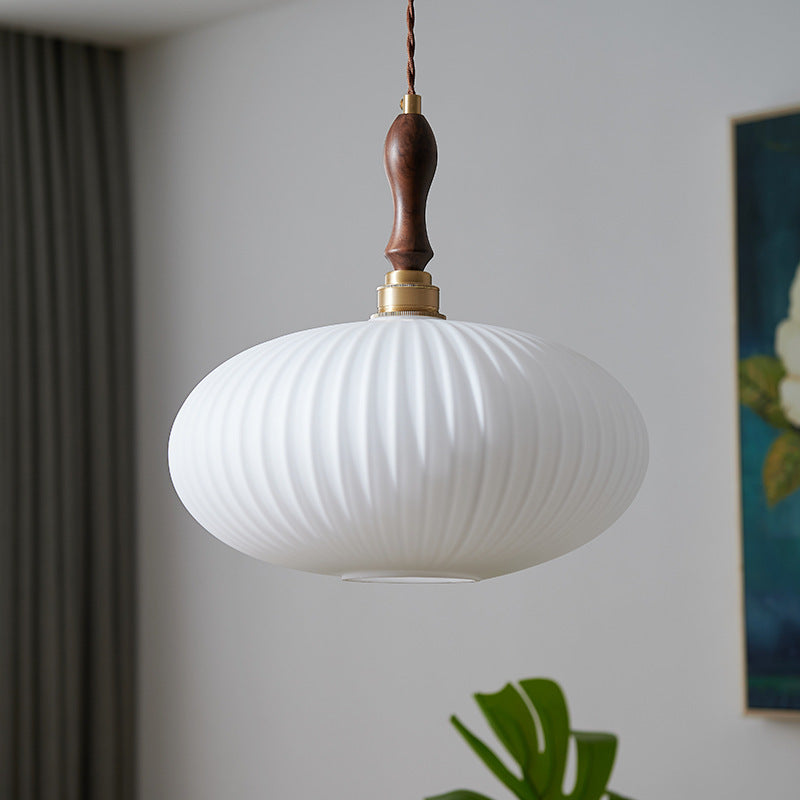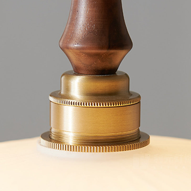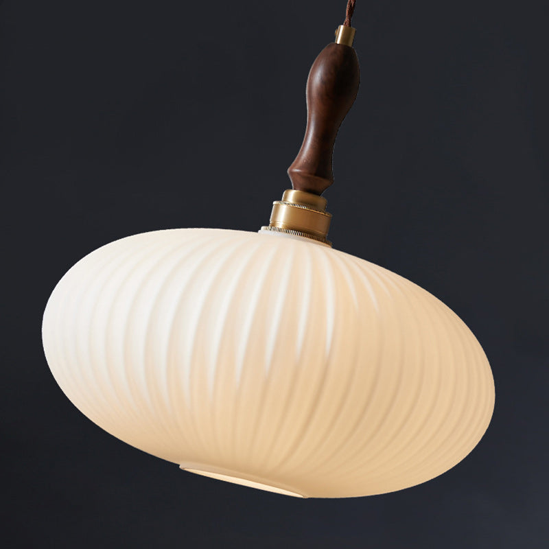 現代的なスカンジナビアの楕円形の銅と木材ガラスの1灯ペンダントライト、リビングルーム用